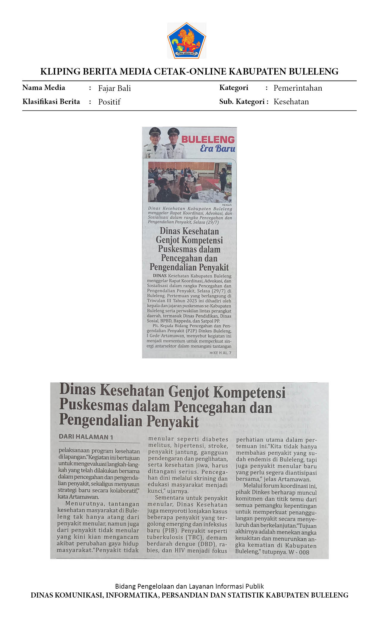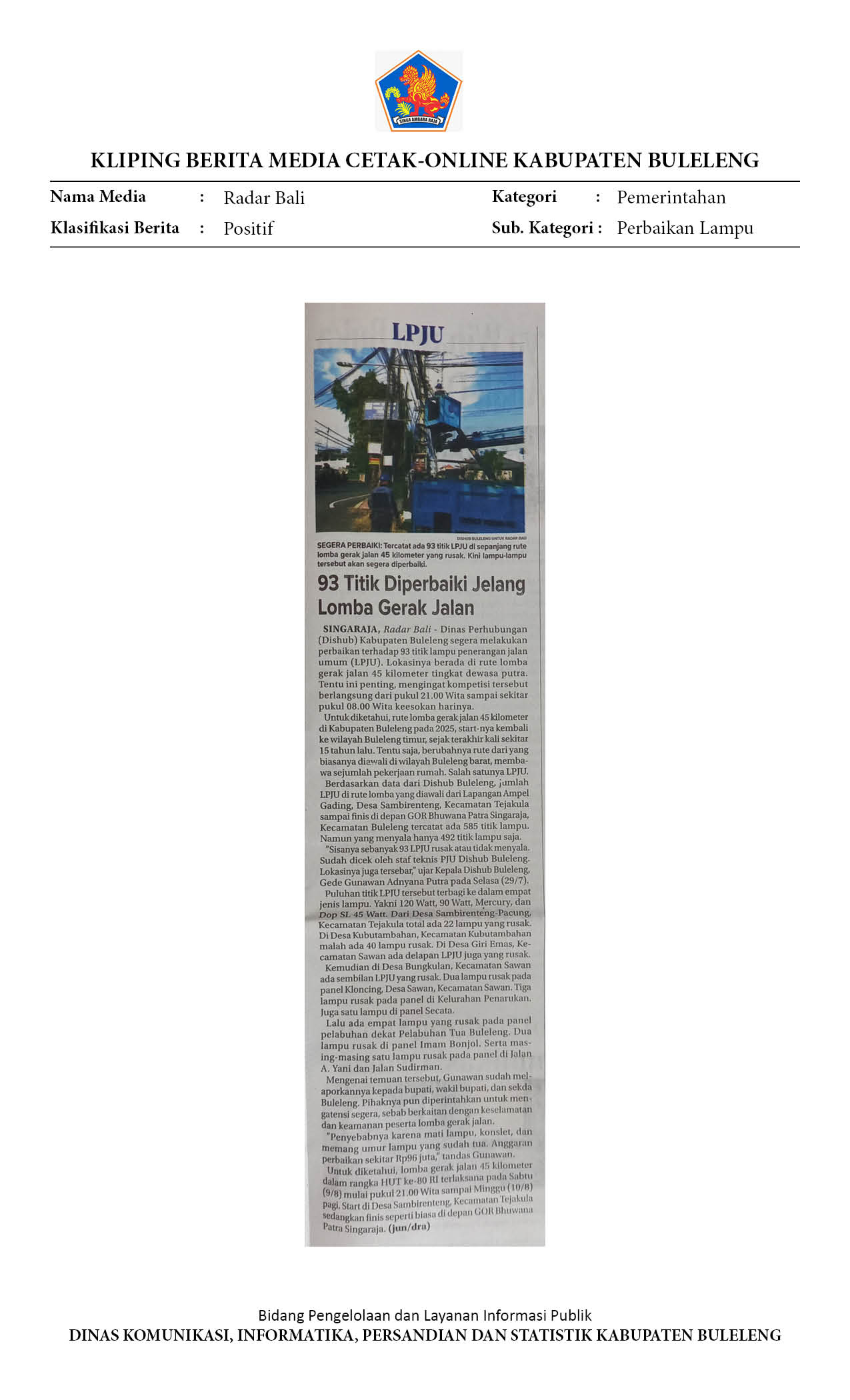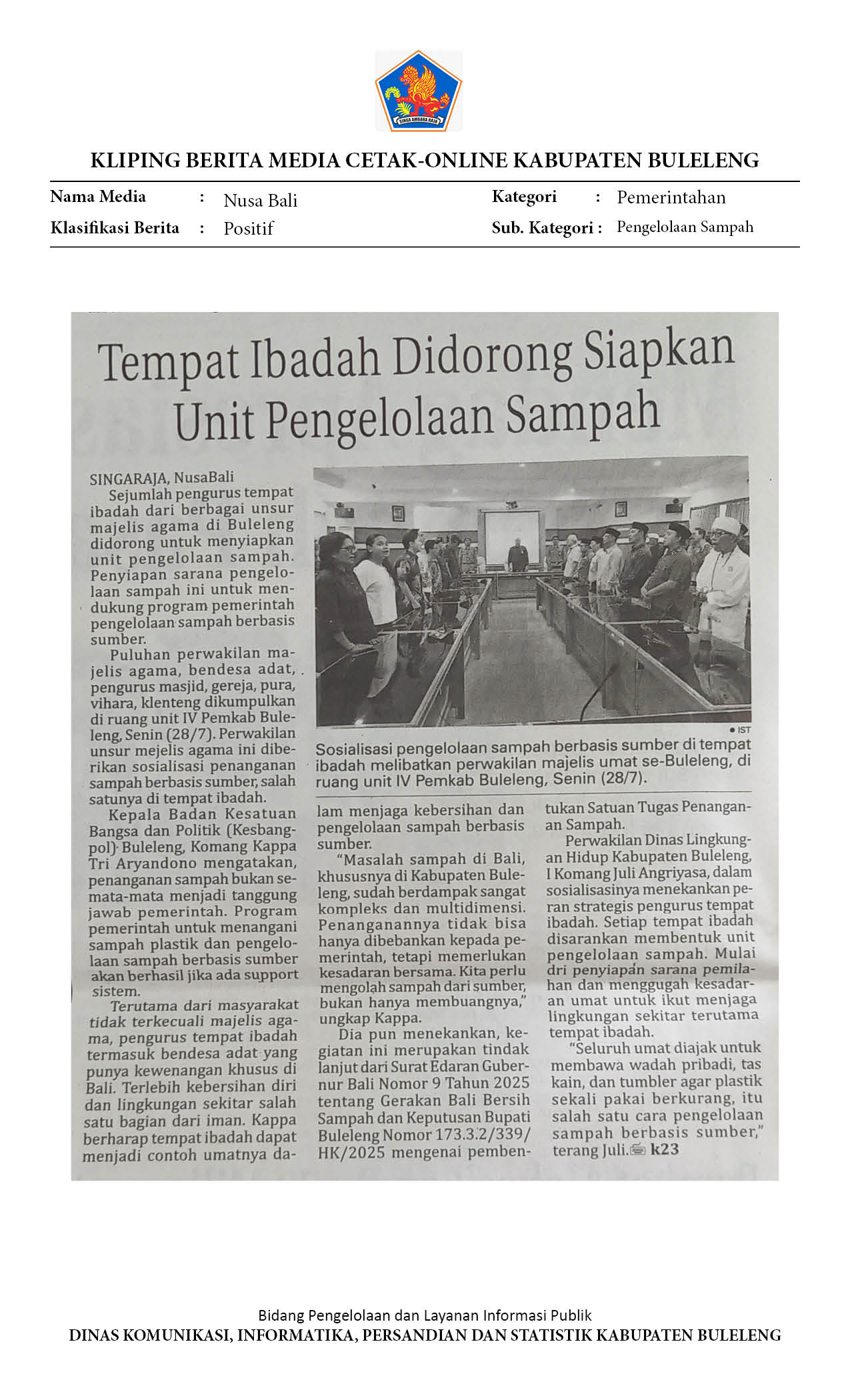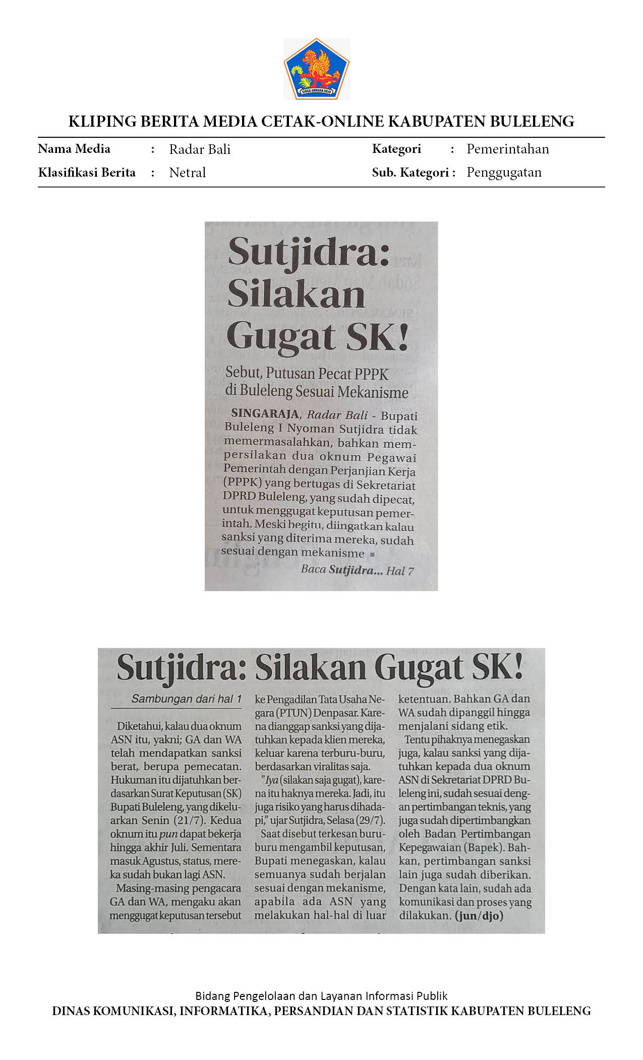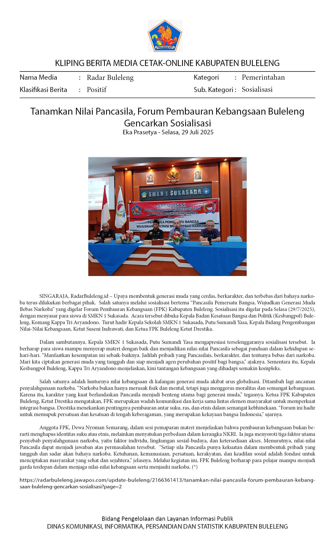Kliping Kategori Pemerintahan Edisi 30 Juli 2025