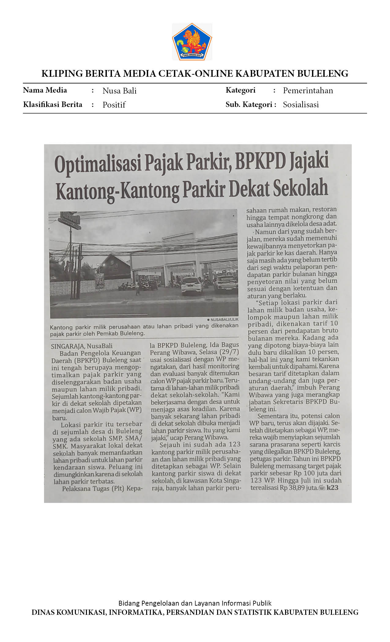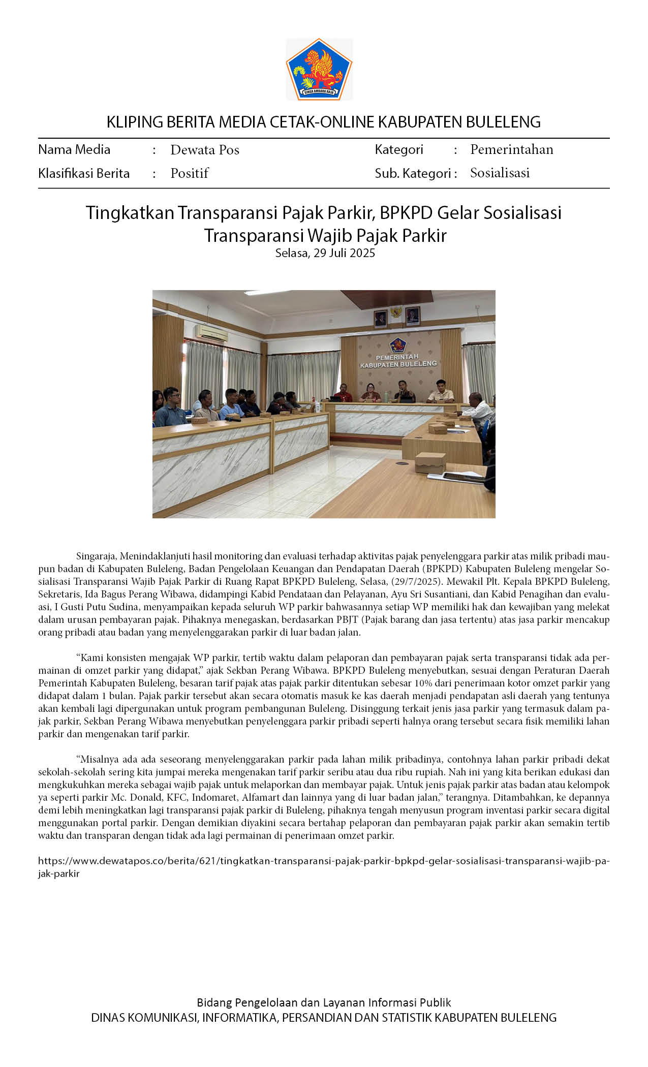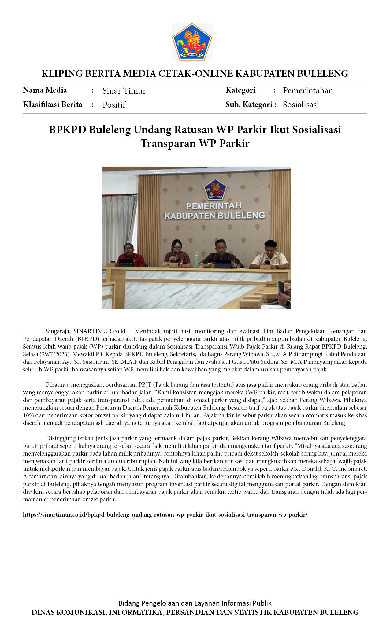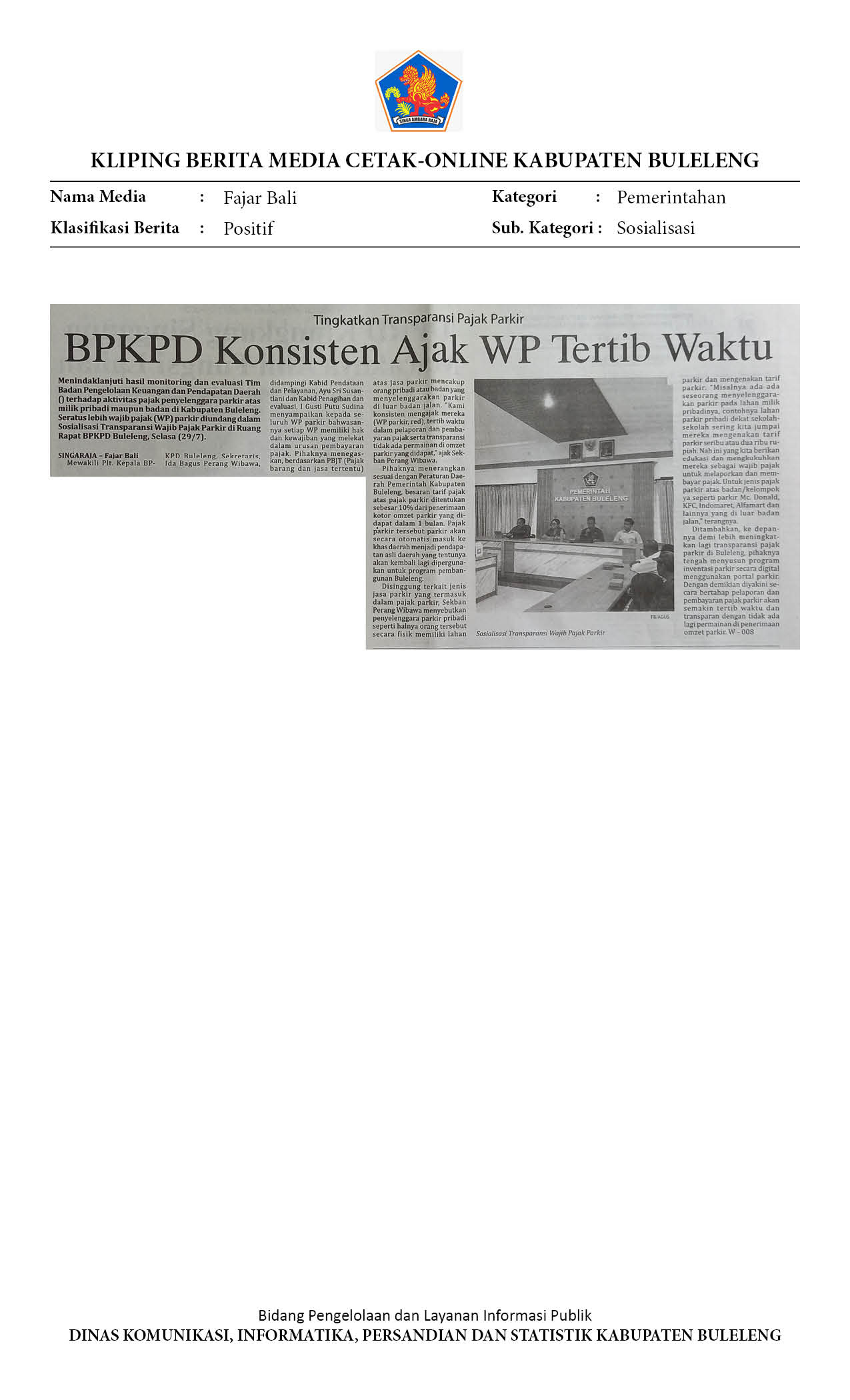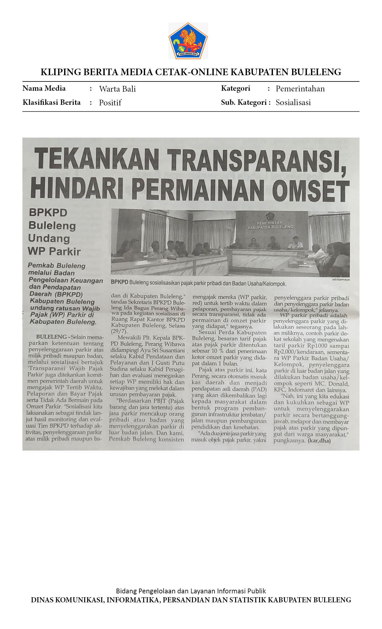 BPKPD BULELENG UNDANG RATUSAN WP PARKIR IKUT SOSIALISASI TRANSPARAN WP PARKIR