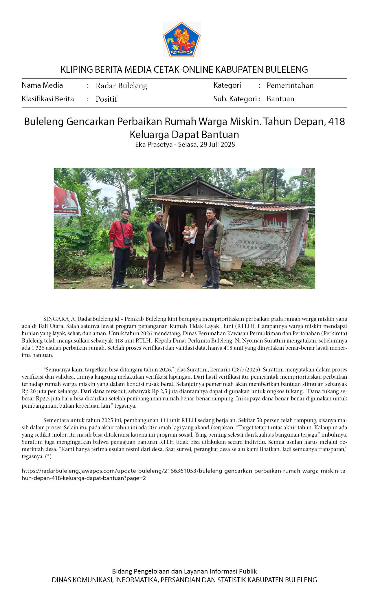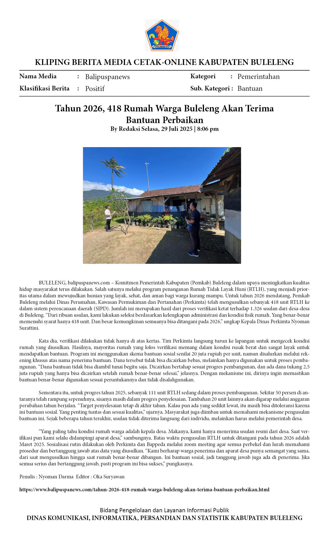 TAHUN 2026, 418 RUMAH WARGA BULELENG AKAN TERIMA BANTUAN PERBAIKAN
