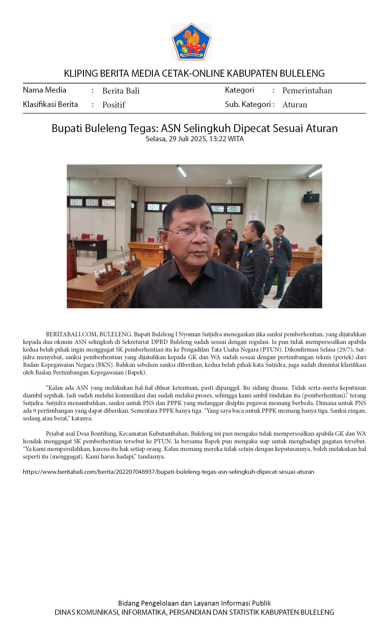 BUPATI BULELENG TEGAS: ASN SELINGKUH DIPECAT SESUAI ATURAN