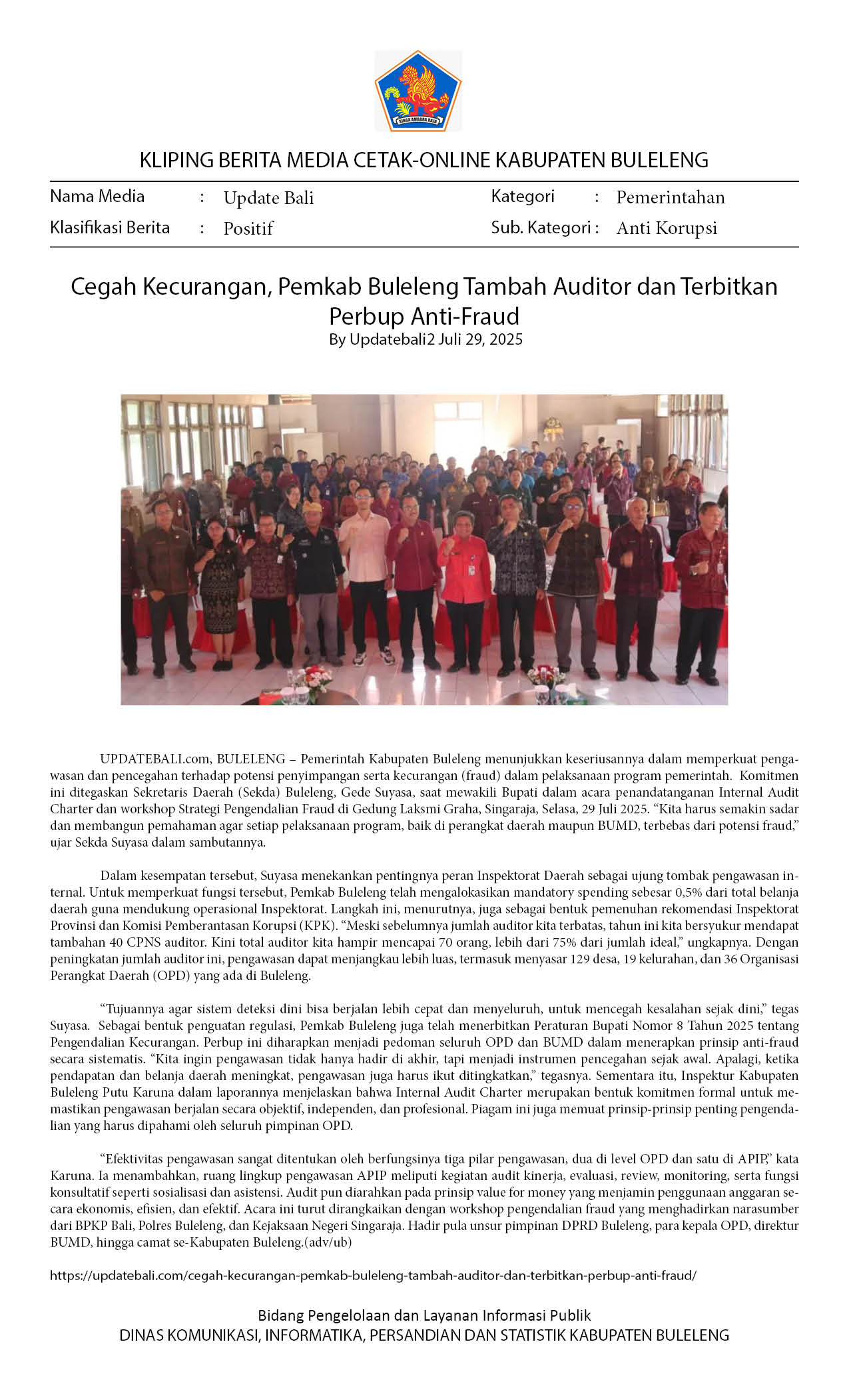 CEGAH KECURANGAN, PEMKAB BULELENG TAMBAH AUDITOR DAN TERBITKAN PERBUP ANTI-FRAUD