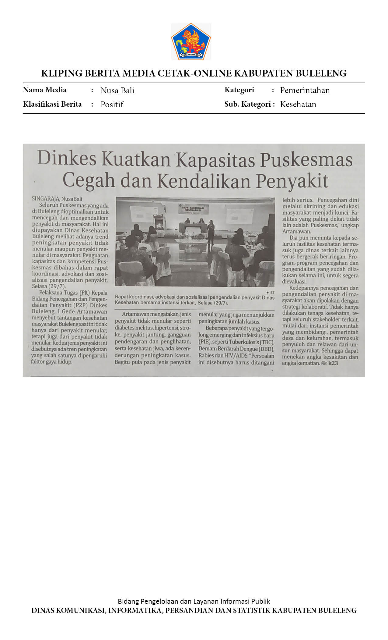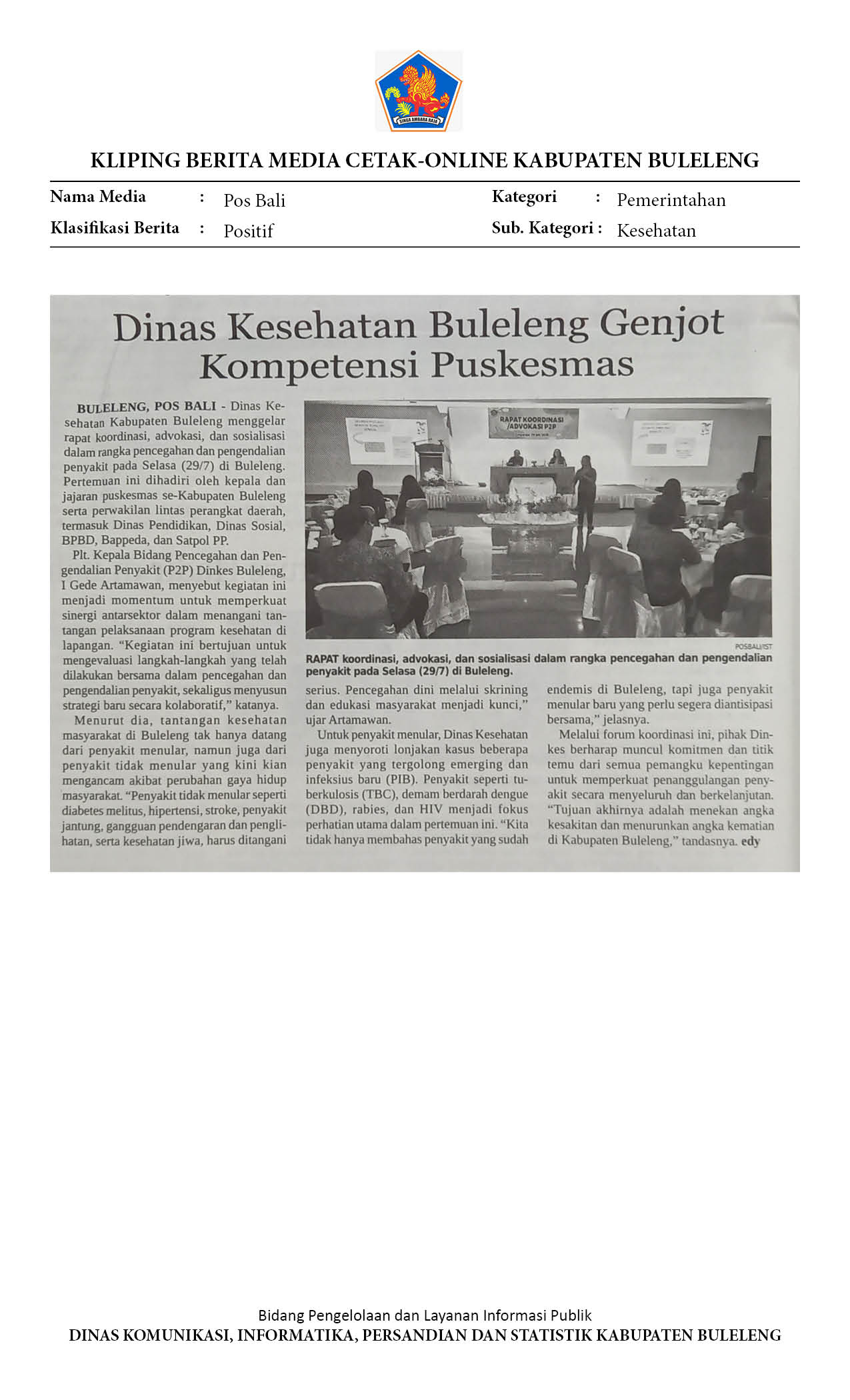 DINAS KESEHATAN BULELENG GENJOT KOMPETENSI PUSKESMAS DALAM PENCEGAHAN DAN PENGENDALIAN PENYAKIT