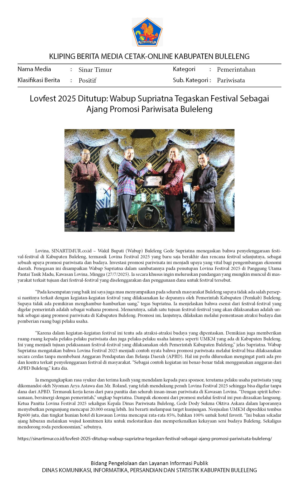 LOVFEST 2025 DITUTUP: WABUP SUPRIATNA TEGASKAN FESTIVAL SEBAGAI AJANG PROMOSI PARIWISATA BULELENG