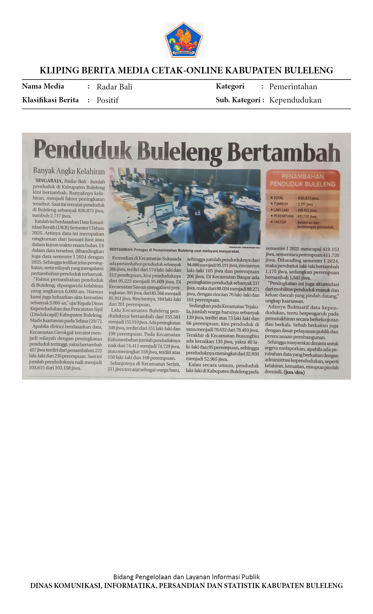 PENDUDUK BULELENG BERTAMBAH