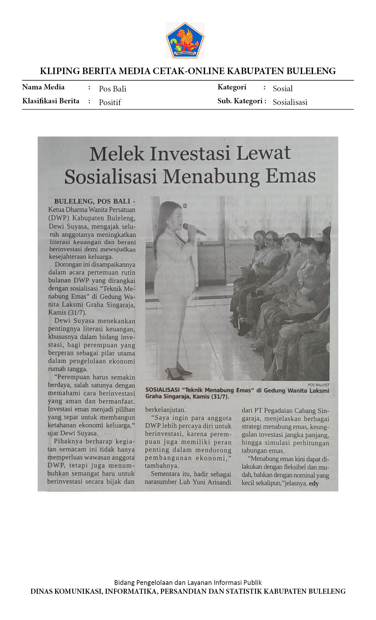 KETUA DWP BULELENG DORONG PEREMPUAN MELEK INVESTASI LEWAT SOSIALISASI MENABUNG EMAS