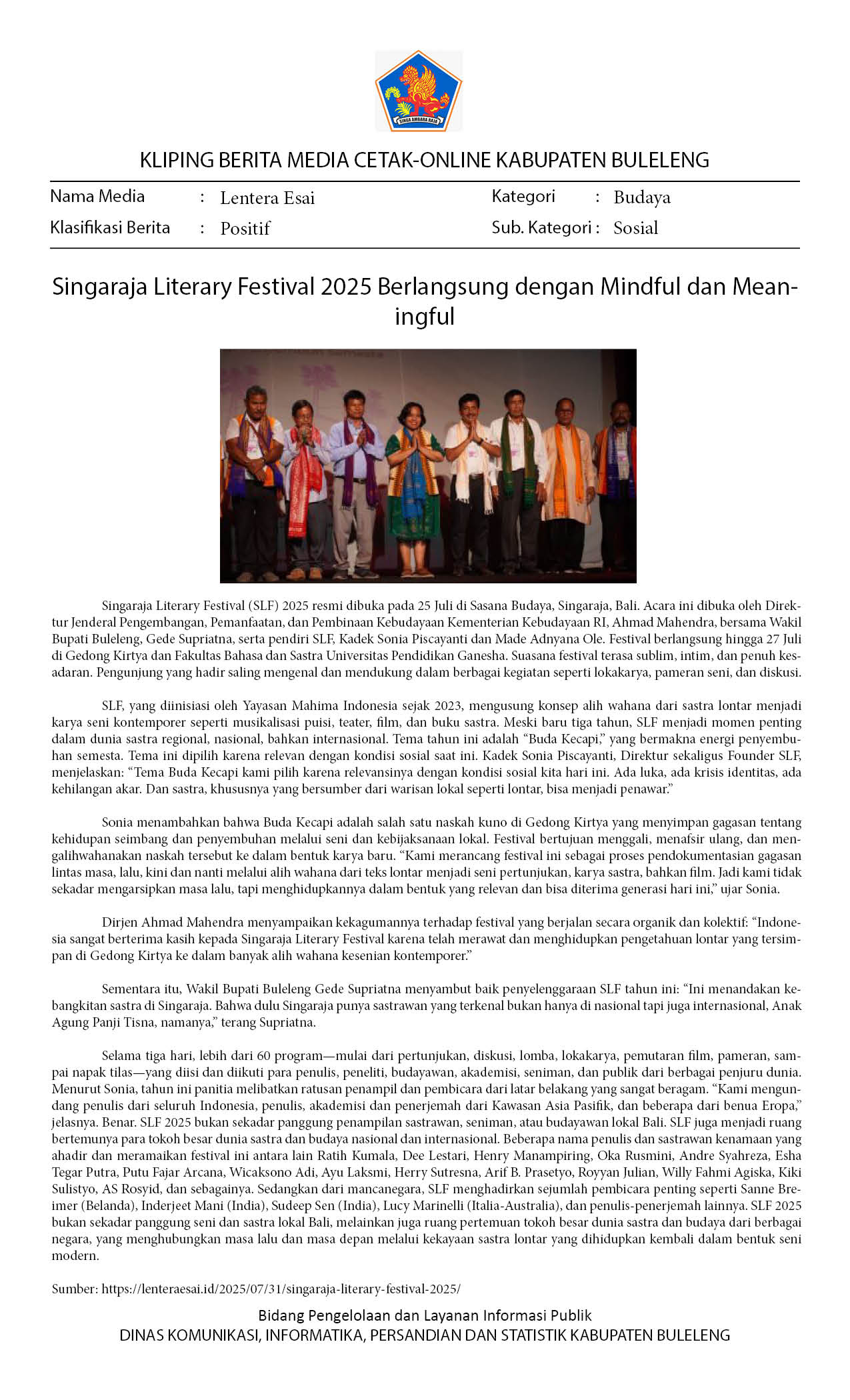 SINGARAJA LITERARY FESTIVAL 2025 BERLANGSUNG DENGAN MINDFUL DAN MEANINGFUL
