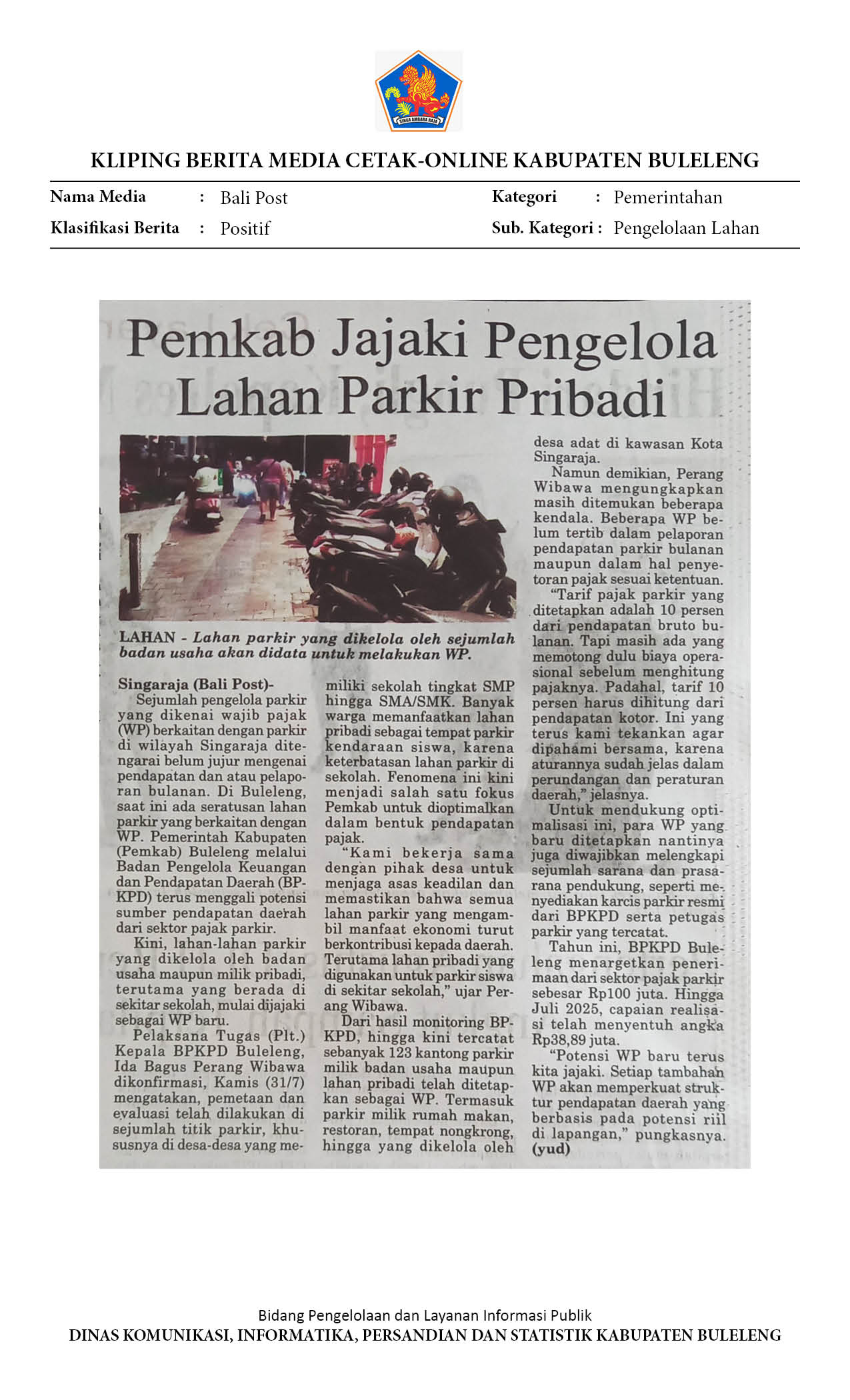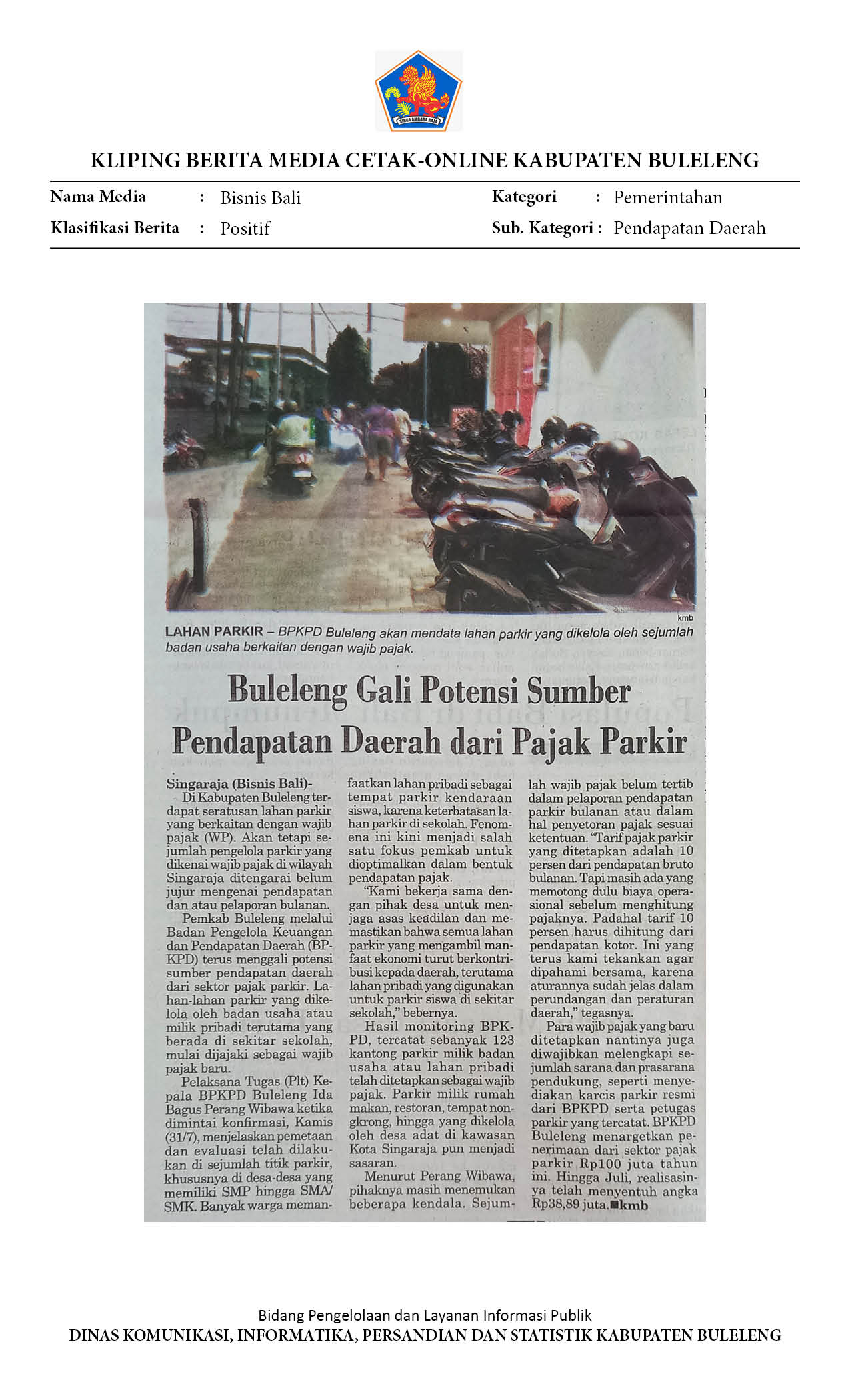 BULELENG GALI POTENSI SUMBER PENDAPATAN DAERAH DARI PAJAK PARKIR