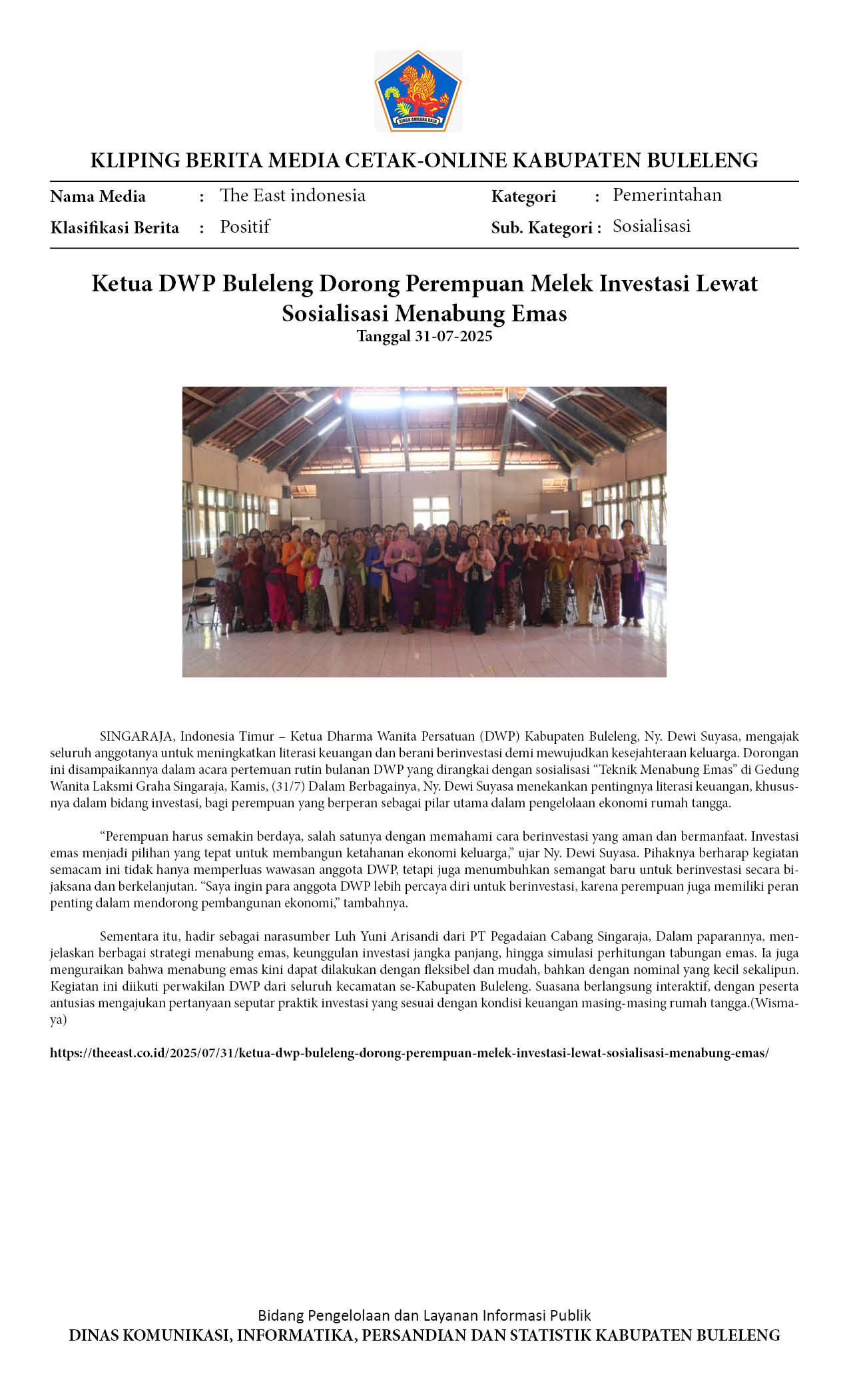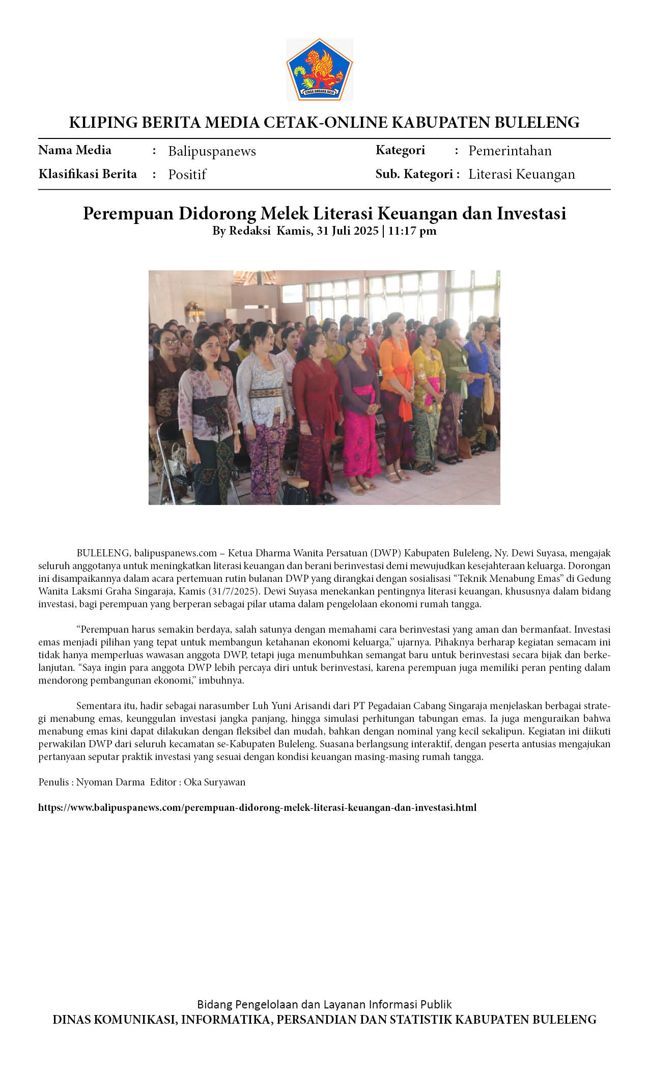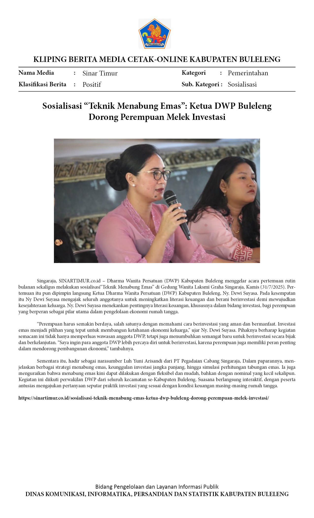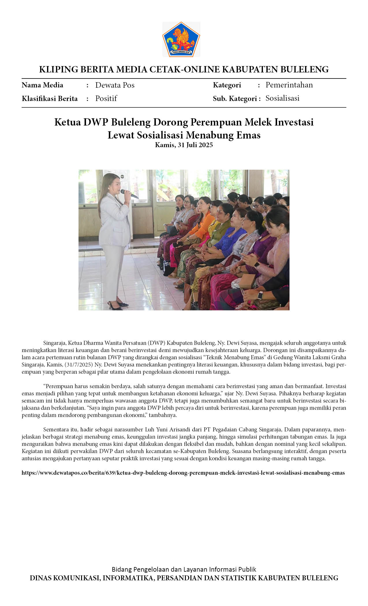 KETUA DWP BULELENG DORONG PEREMPUAN MELEK INVESTASI LEWAT SOSIALISASI MENABUNG EMAS