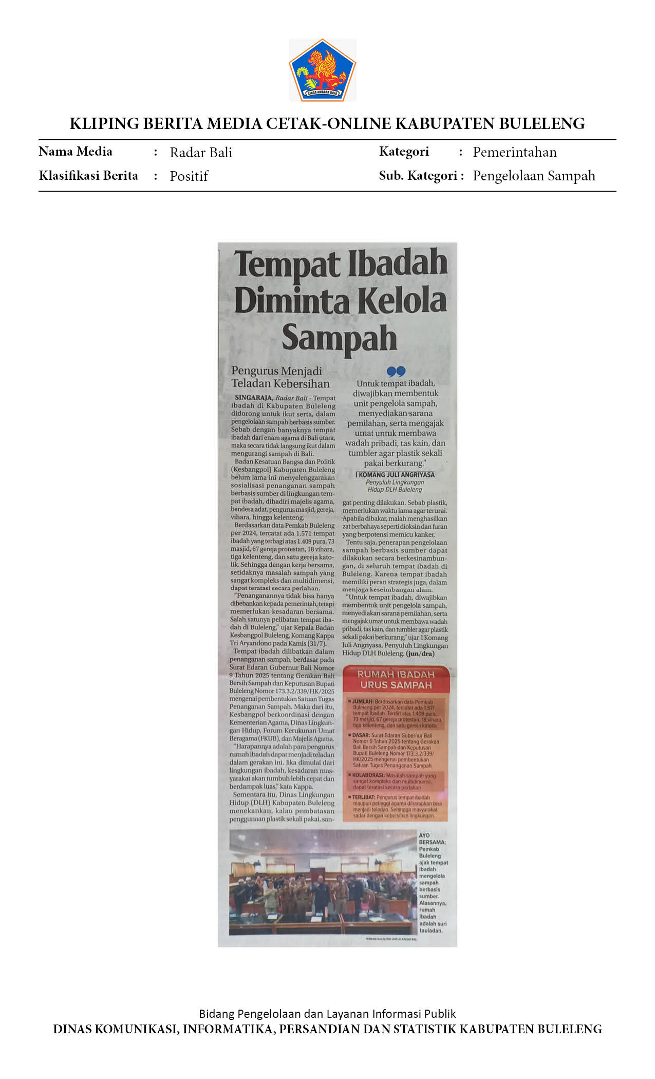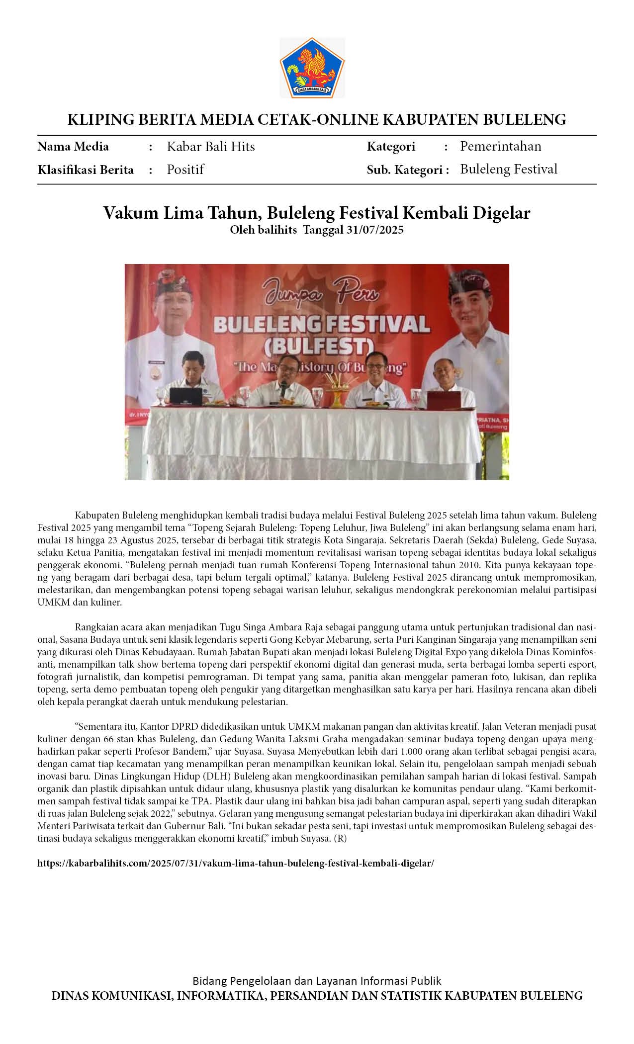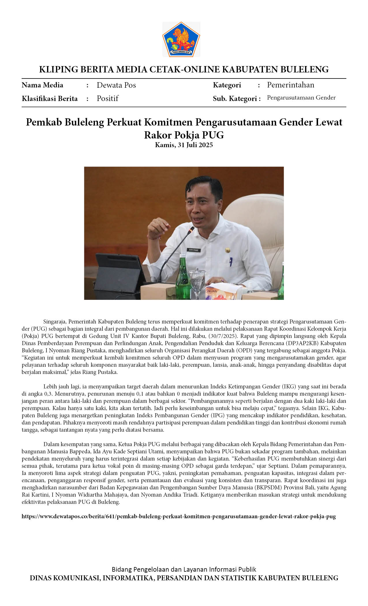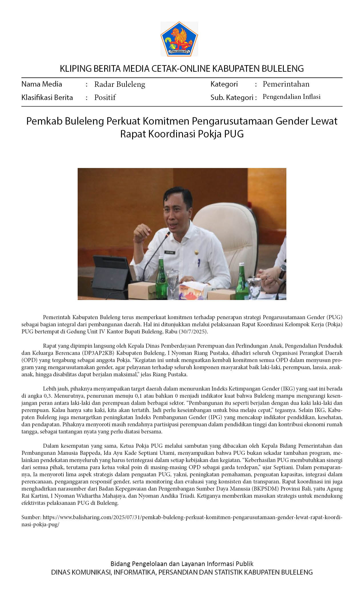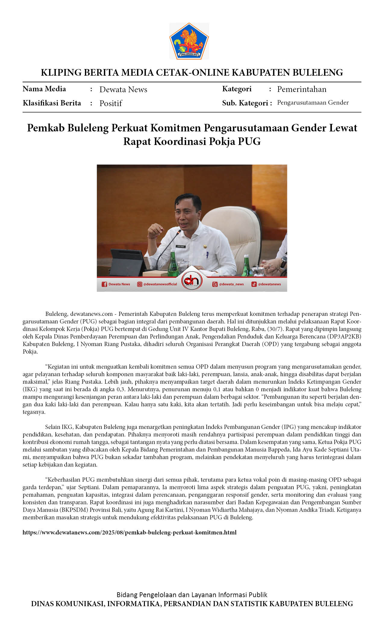 Kliping Kategori Pemerintahan Edisi 01 Agustus 2025