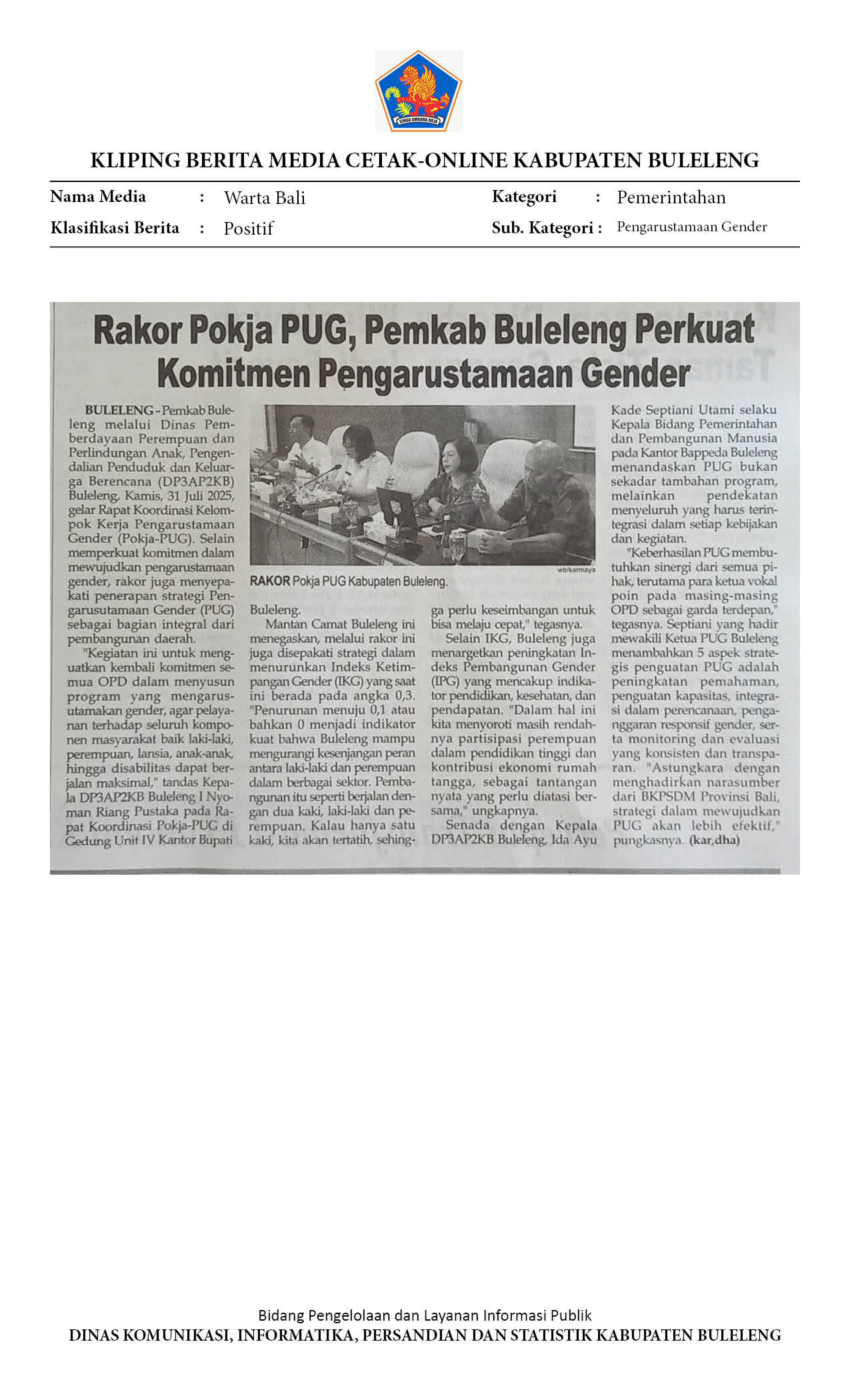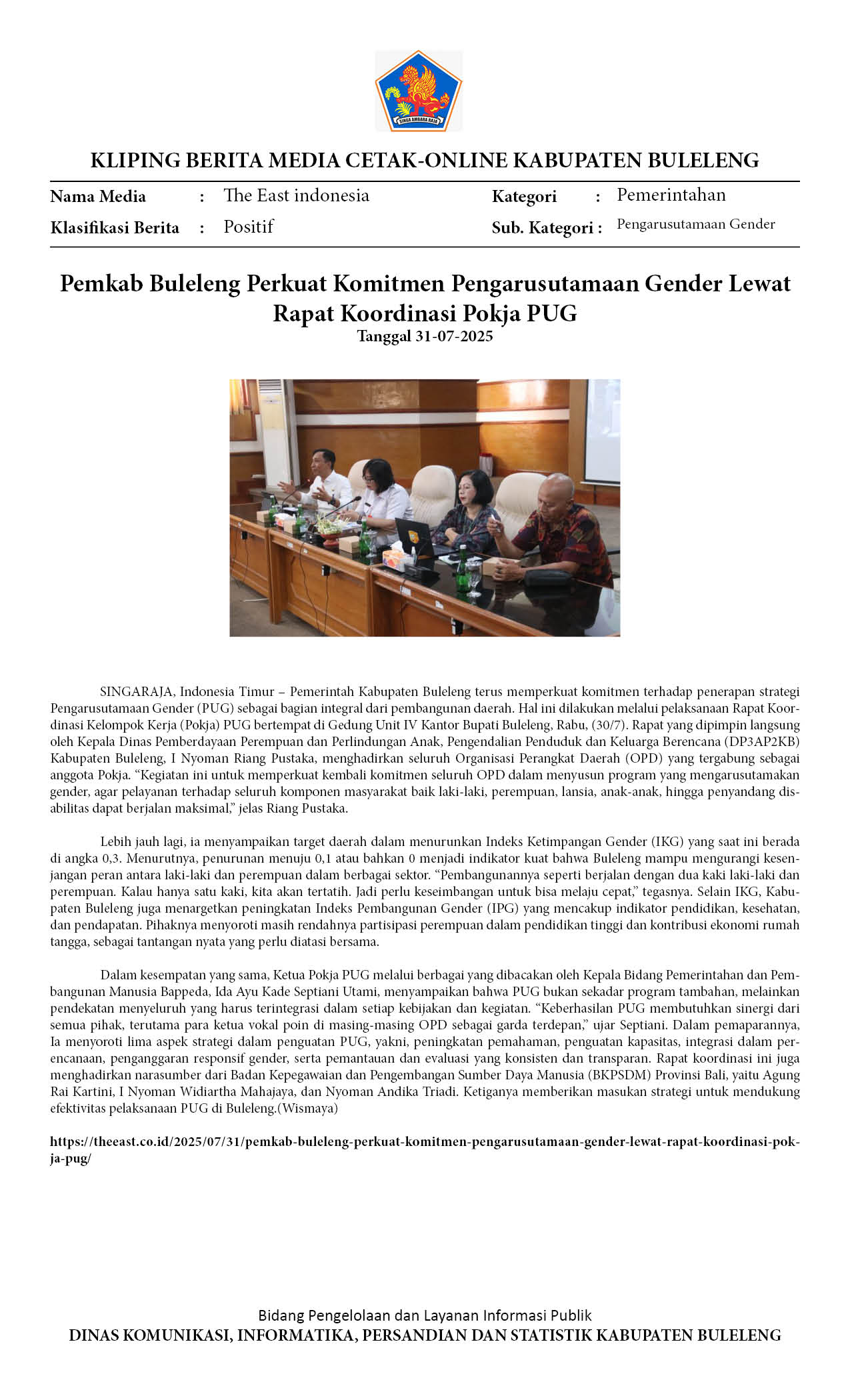 PEMKAB BULELENG PERKUAT KOMITMEN PENGARUSUTAMAAN GENDER LEWAT RAPAT KOORDINASI POKJA PUG