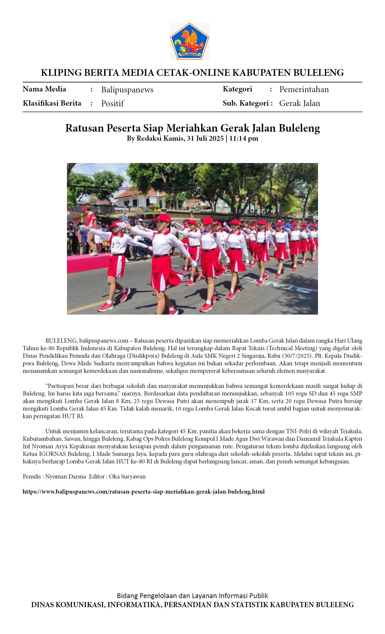 RATUSAN PESERTA SIAP MERIAHKAN GERAK JALAN BULELENG