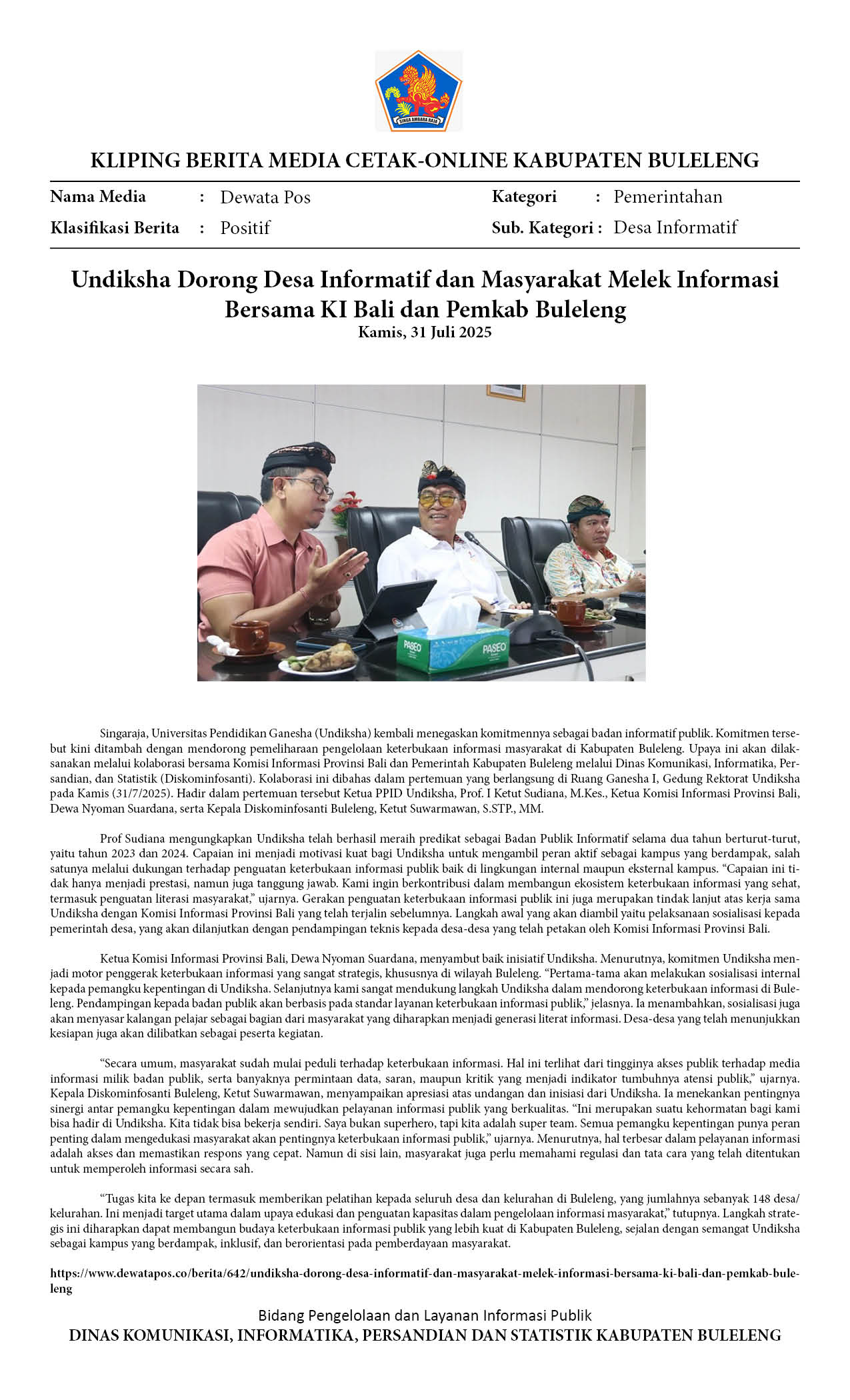 UNDIKSHA DORONG DESA INFORMATIF DAN MASYARAKAT MELEK INFORMASI BERSAMA KI BALI DAN PEMKAB BULELENG