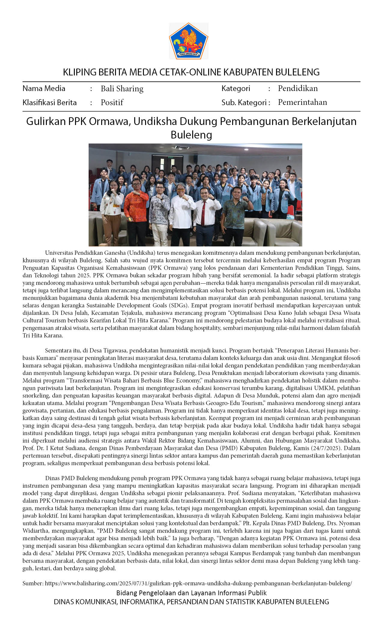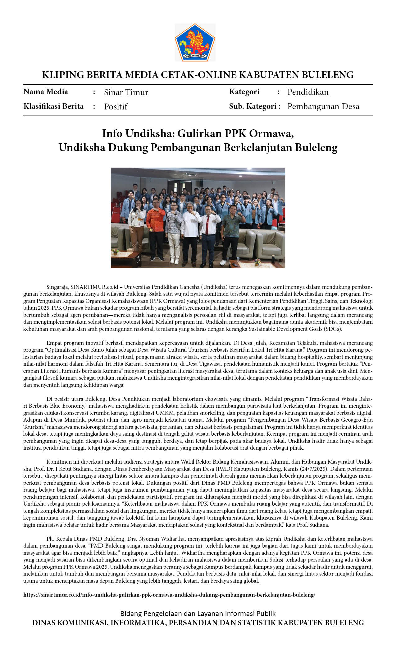 INFO UNDIKSHA: GULIRKAN PPK ORMAWA, UNDIKSHA DUKUNG PEMBANGUNAN BERKELANJUTAN BULELENG