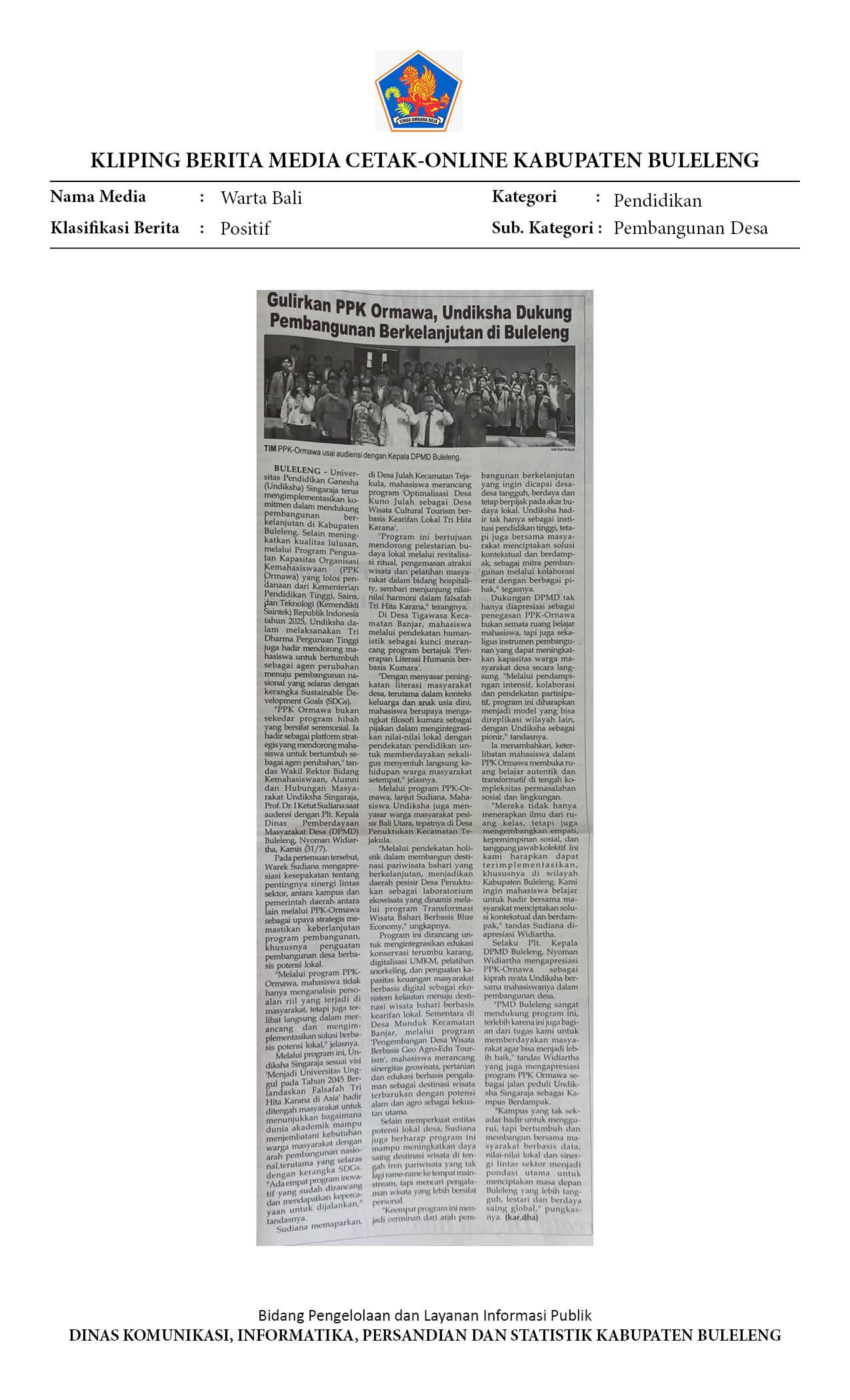 GULIRKAN PPK ORMAWA, UNDIKSHA DUKUNG PEMBANGUNAN BERKELANJUTAN DI DESA-DESA BULELENG