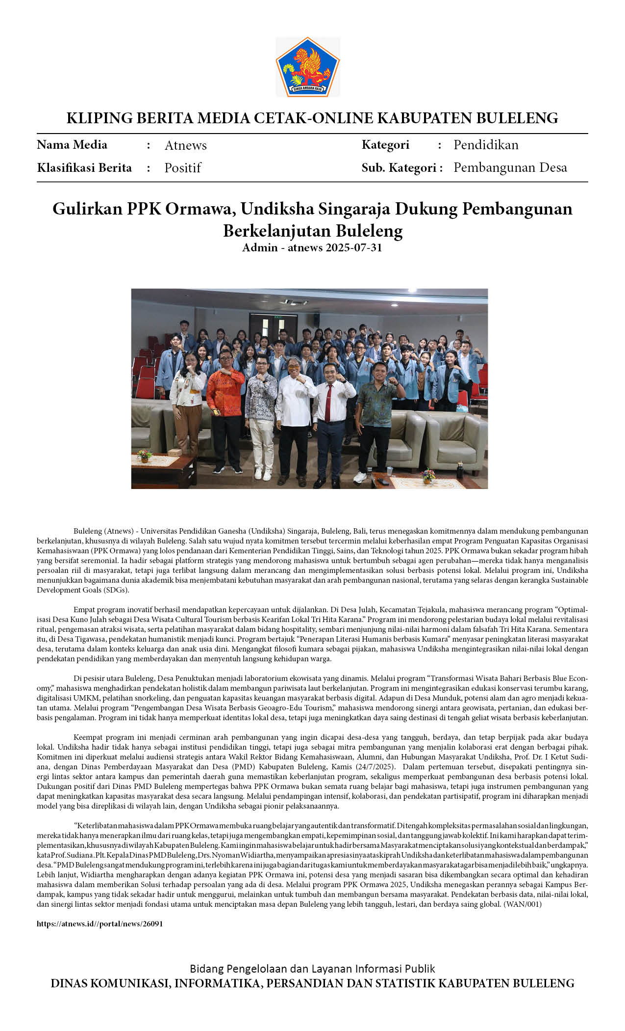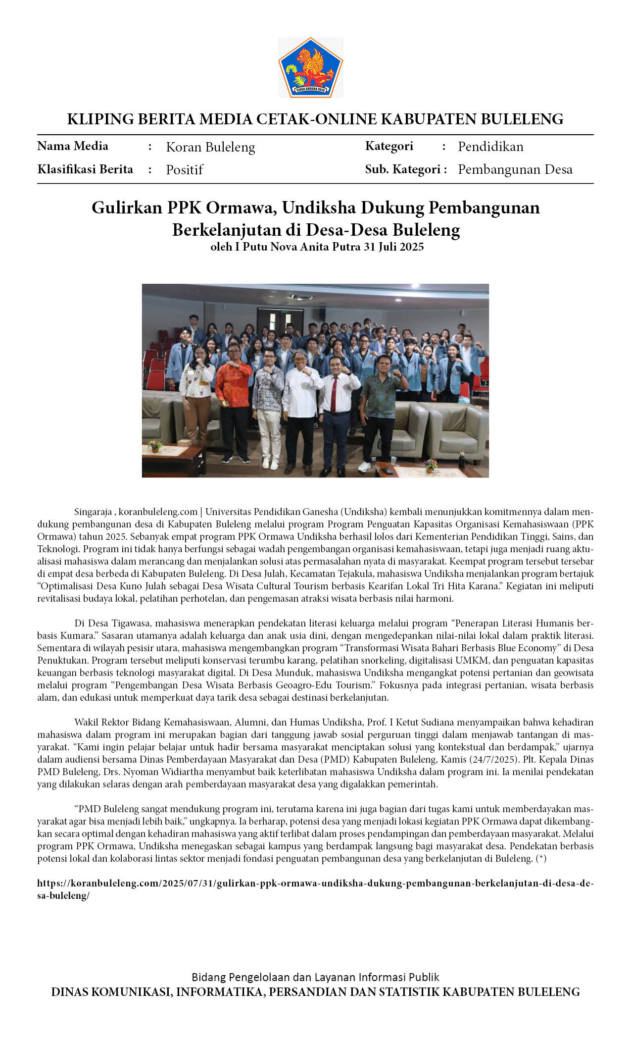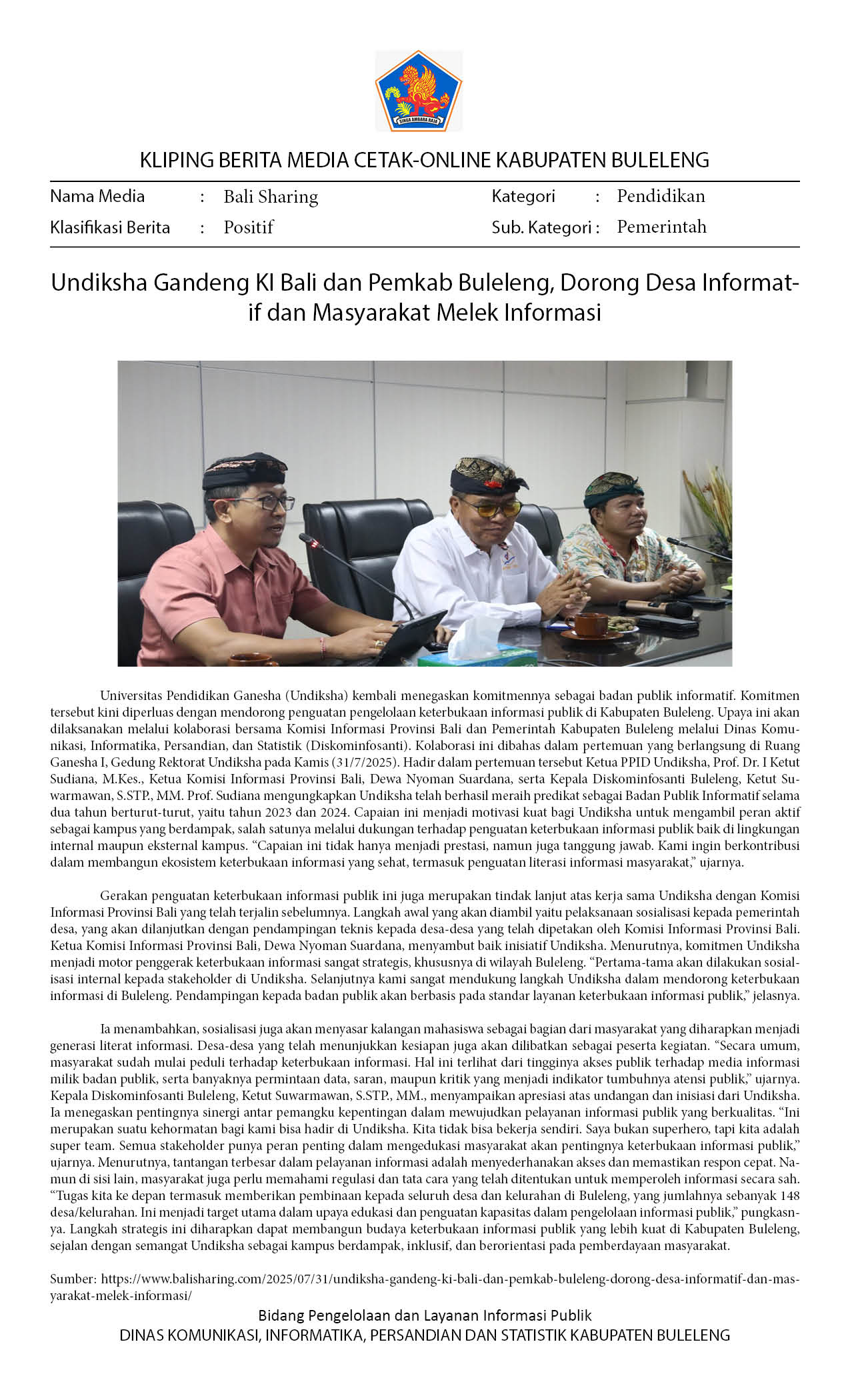 UNDIKSHA GANDENG KI BALI DAN PEMKAB BULELENG, DORONG DESA INFORMATIF DAN MASYARAKAT MELEK INFORMASI