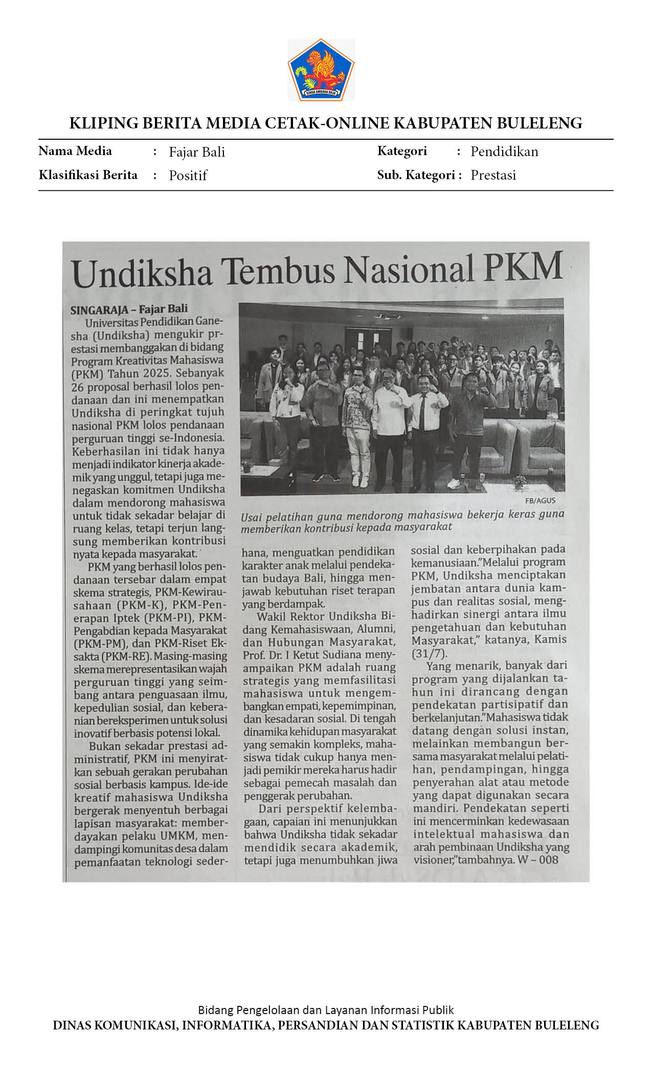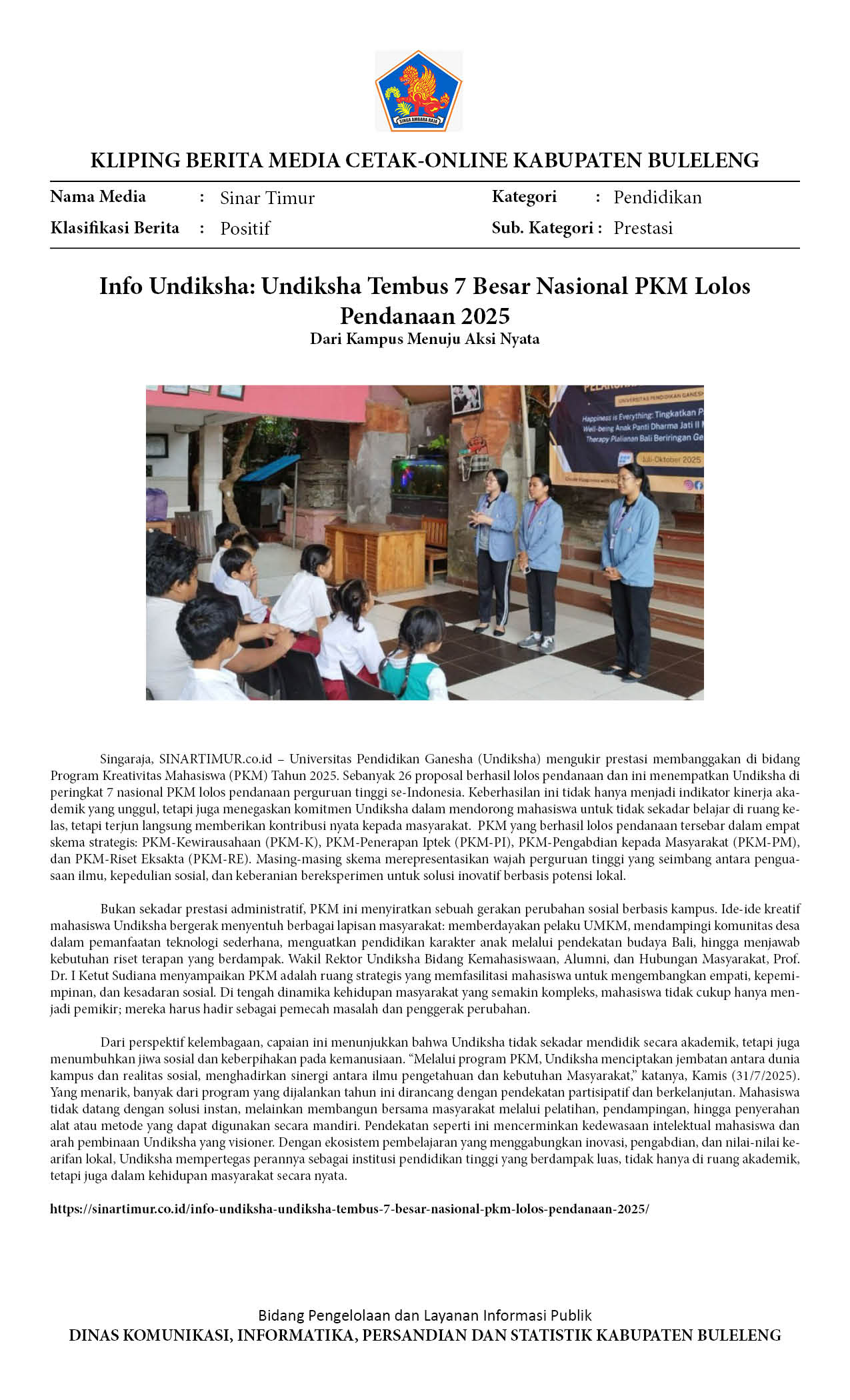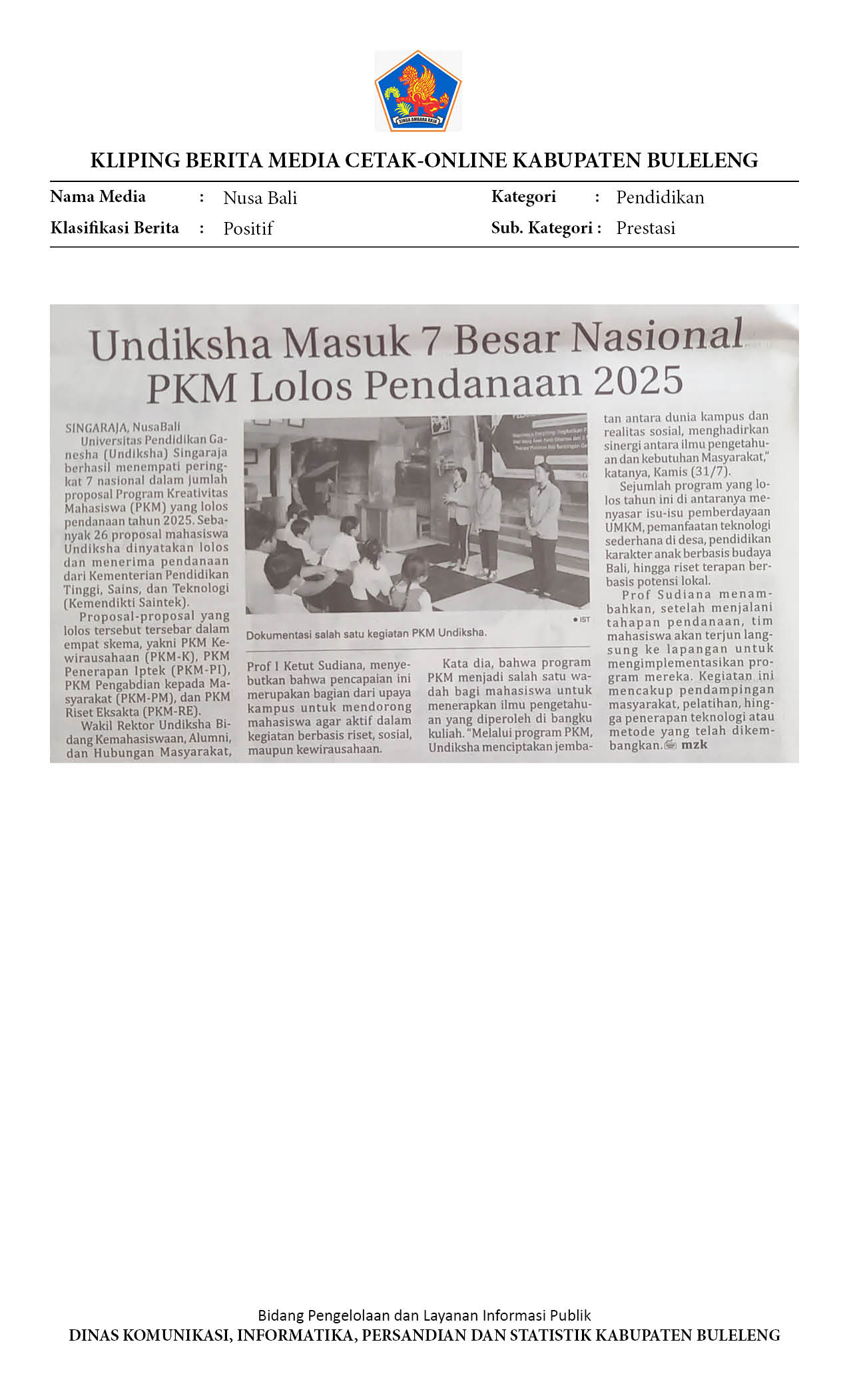 INFO UNDIKSHA: UNDIKSHA TEMBUS 7 BESAR NASIONAL PKM LOLOS PENDANAAN 2025