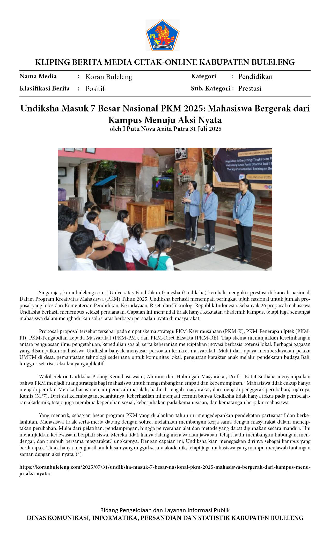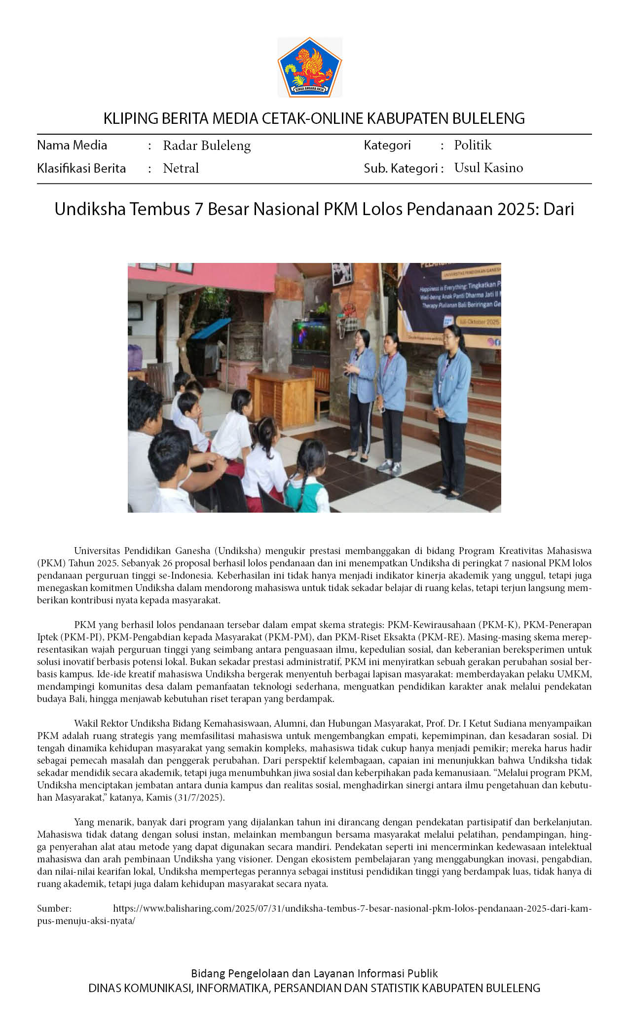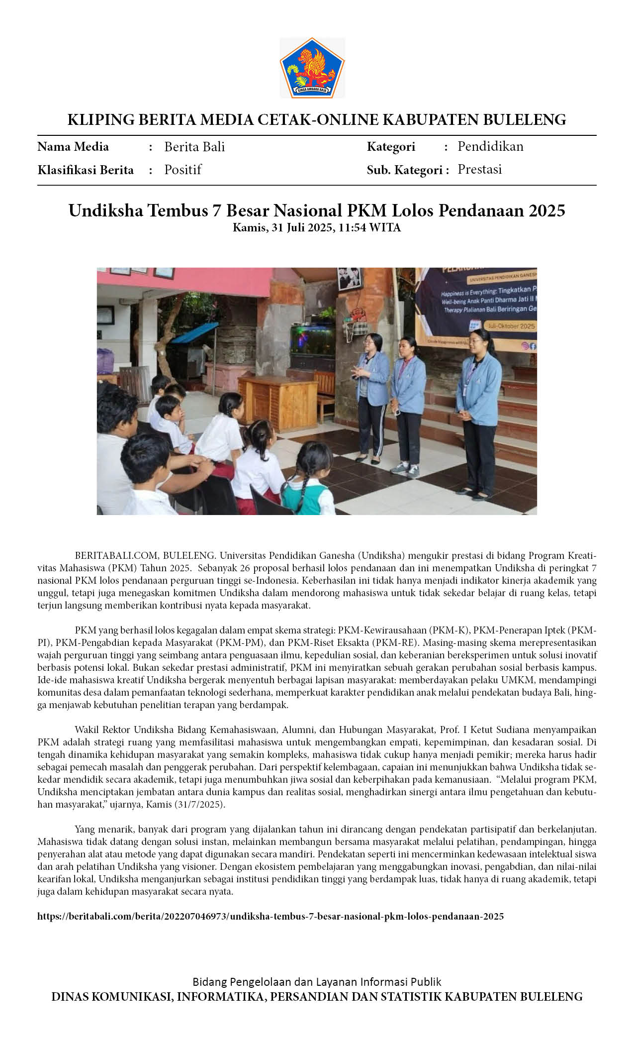 INFO UNDIKSHA: UNDIKSHA TEMBUS 7 BESAR NASIONAL PKM LOLOS PENDANAAN 2025