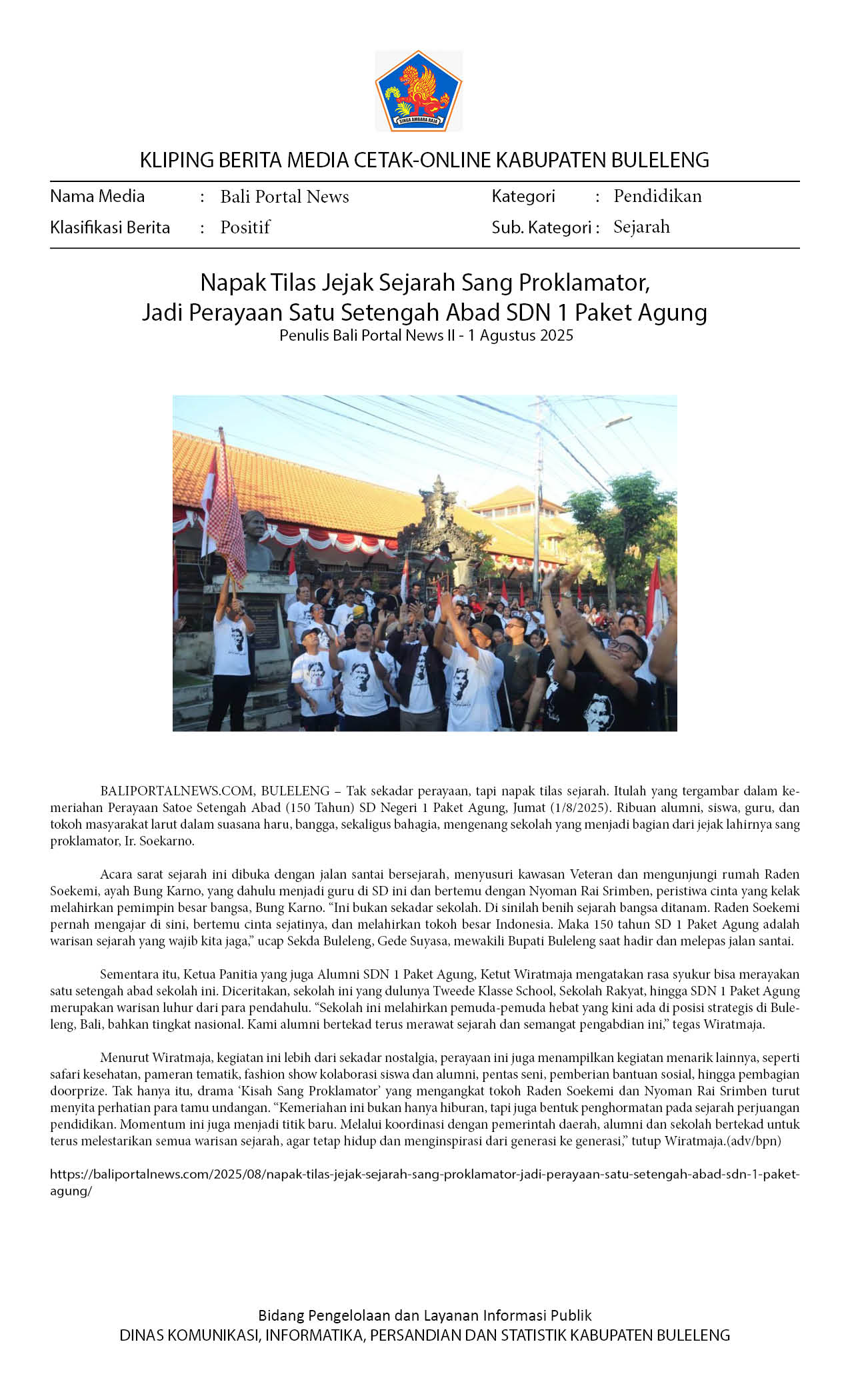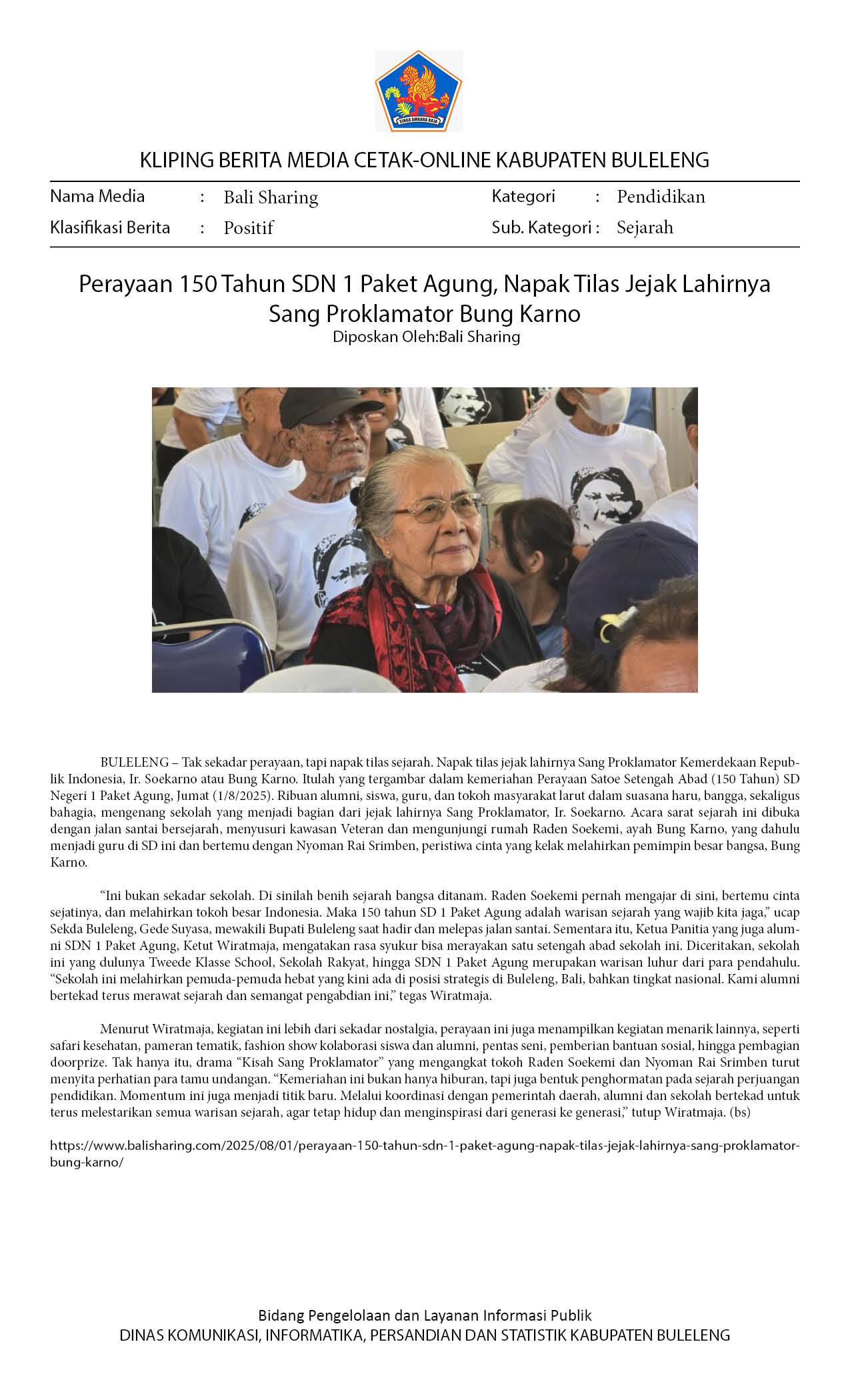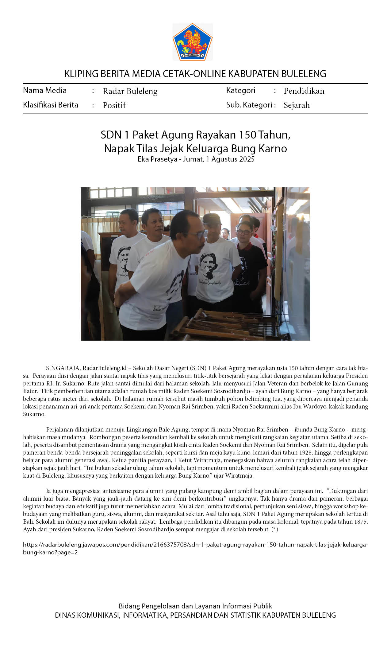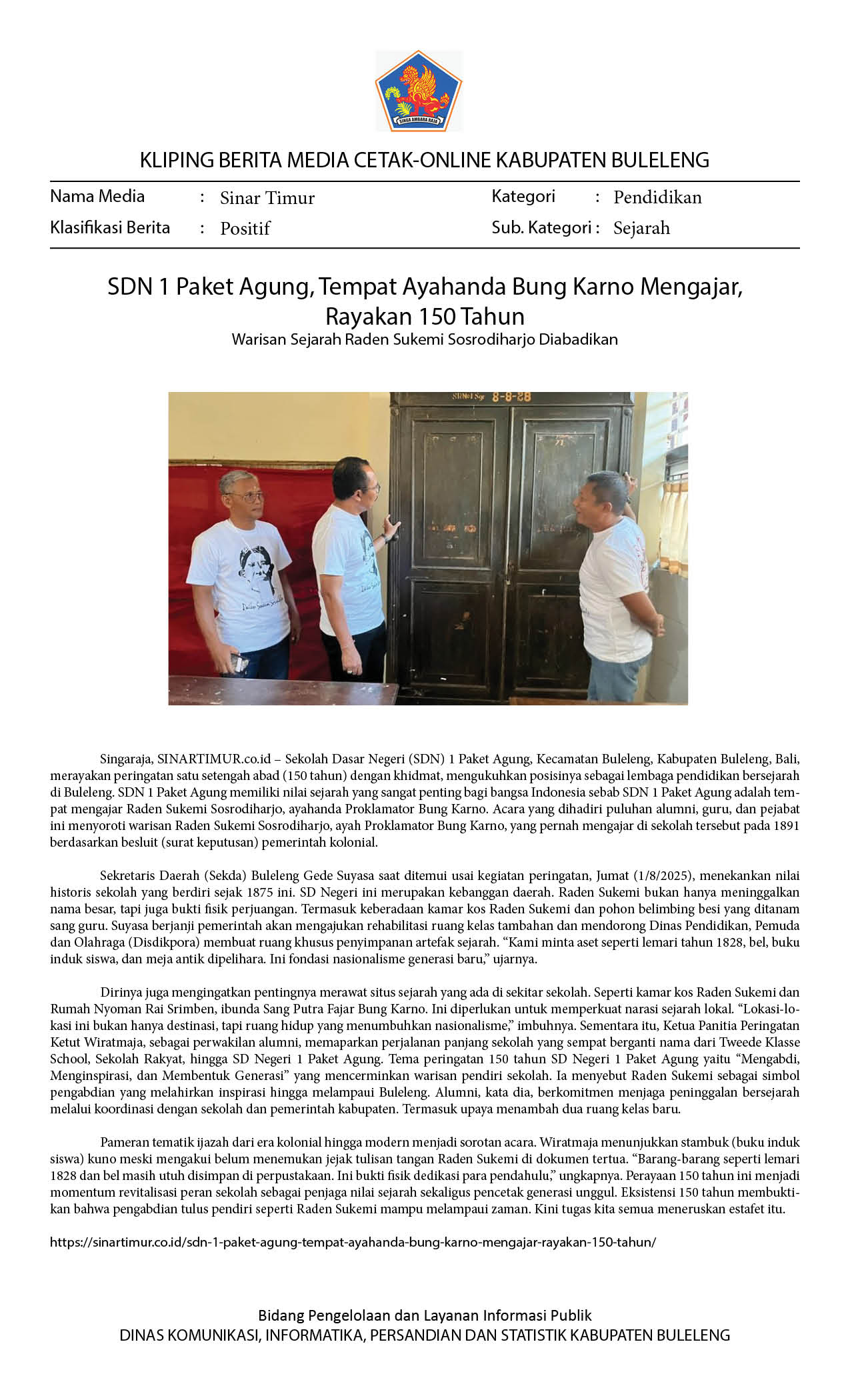 150 TAHUN SDN 1 PAKET AGUNG, SEJARAH PENDIDIKAN BULELENG DAN JEJAK AYAH BUNG KARNO