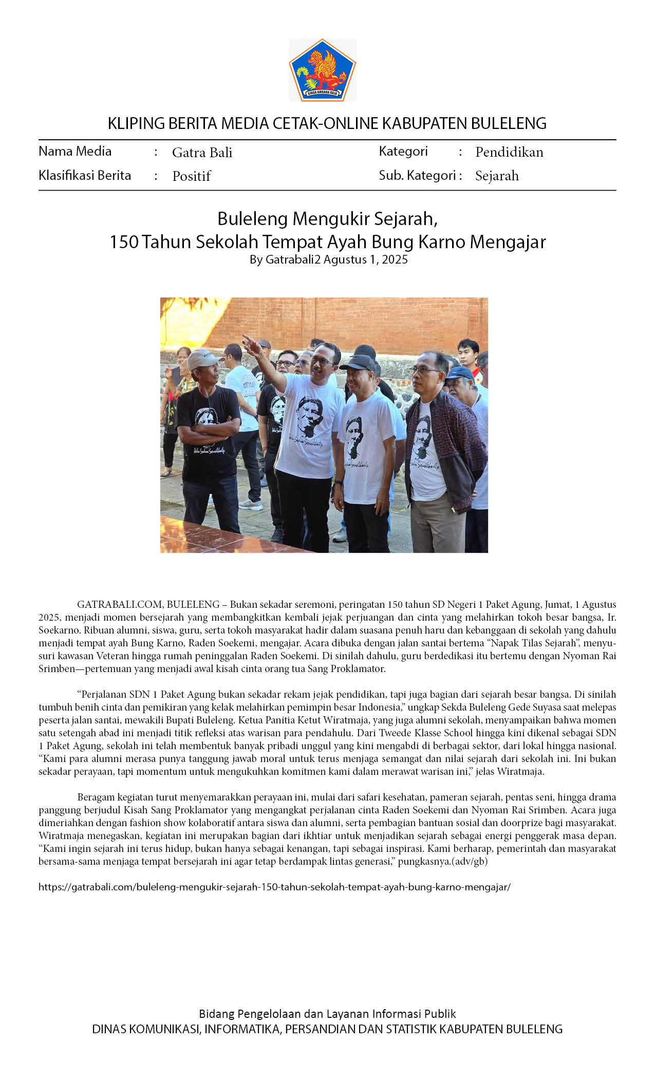 BULELENG MENGUKIR SEJARAH, 150 TAHUN SEKOLAH TEMPAT AYAH BUNG KARNO MENGAJAR
