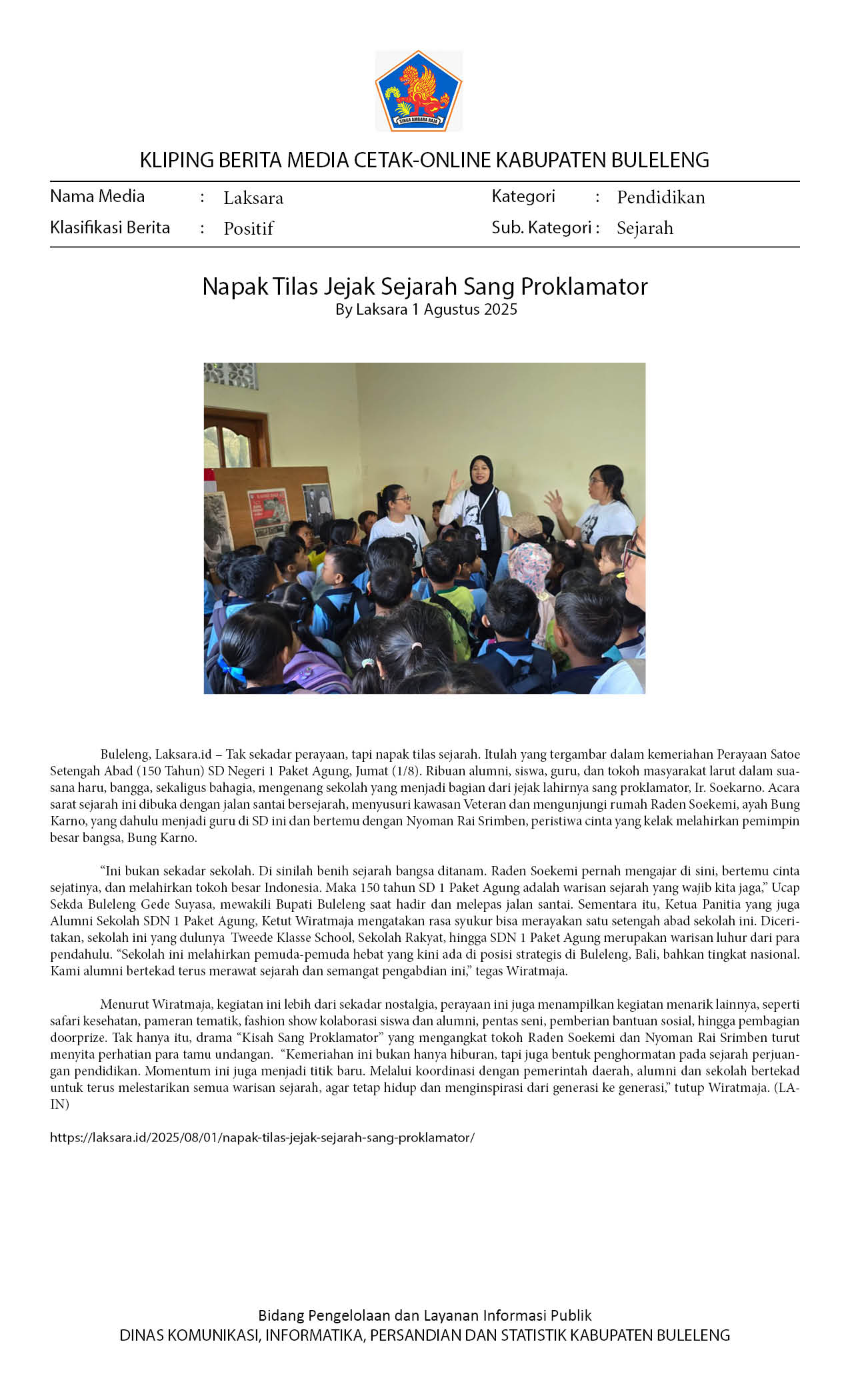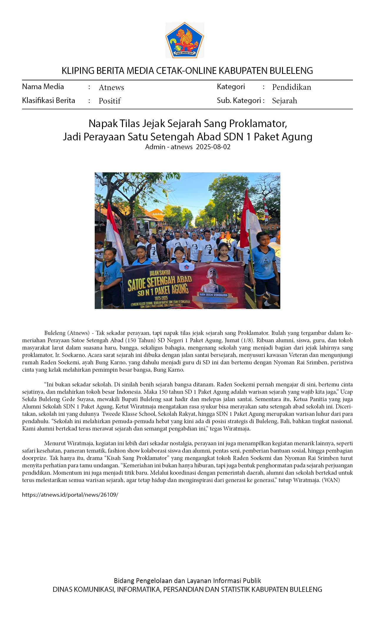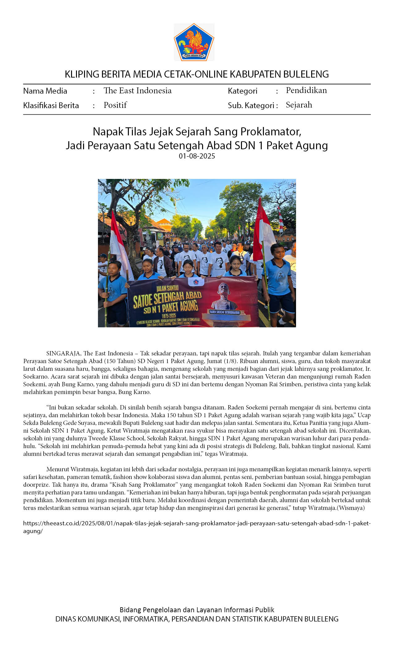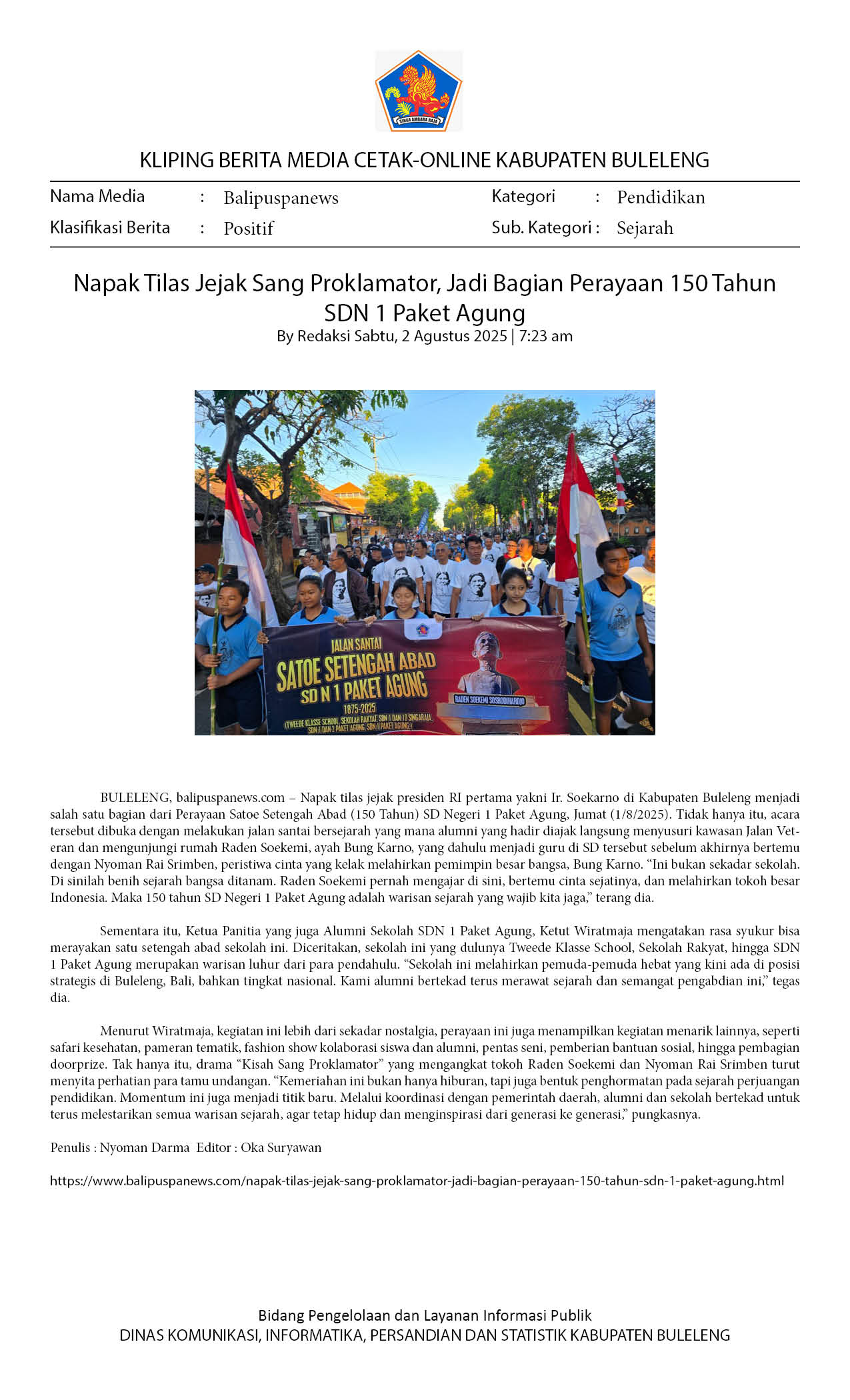 NAPAK TILAS JEJAK SANG PROKLAMATOR, JADI BAGIAN PERAYAAN 150 TAHUN SDN 1 PAKET AGUNG