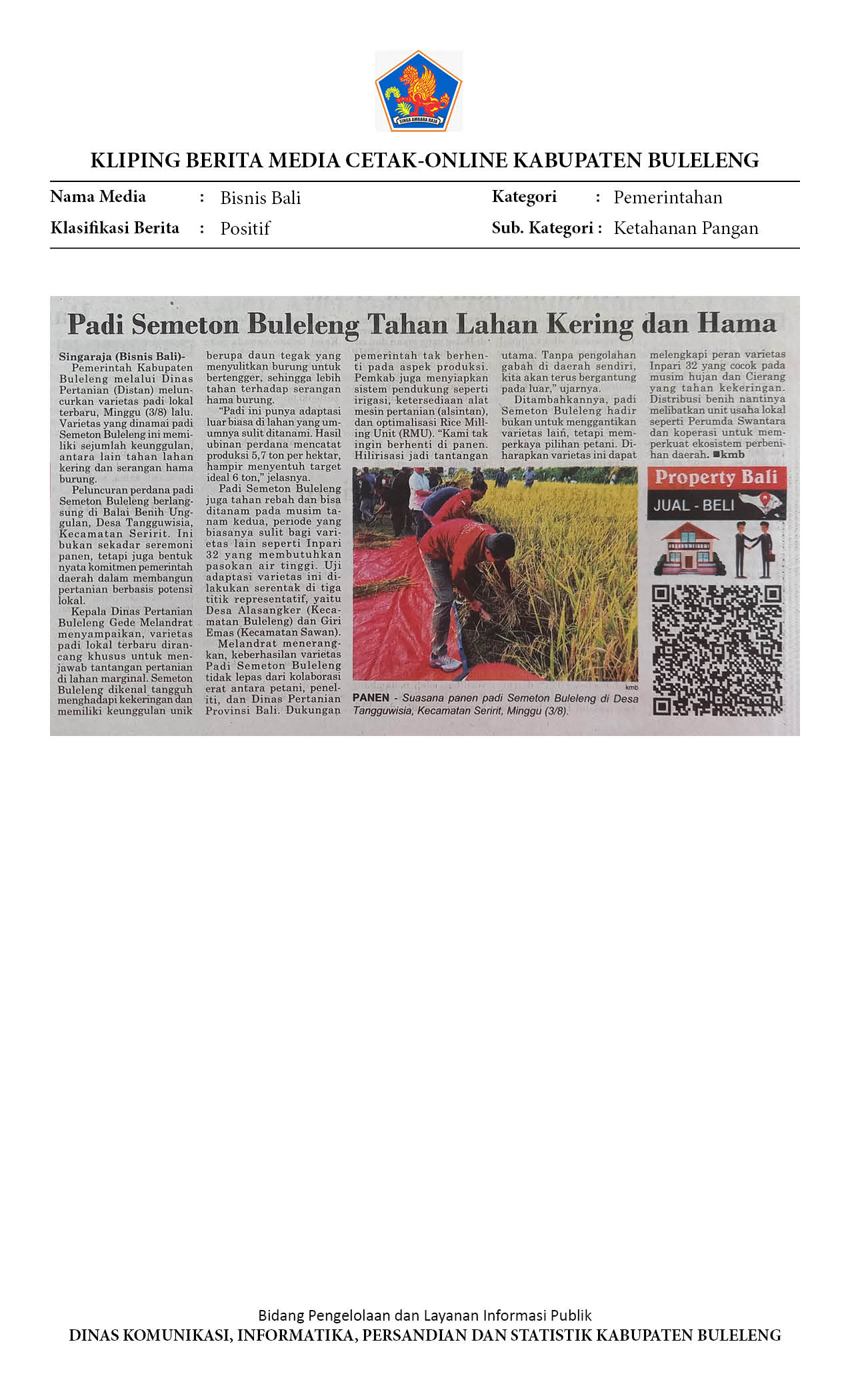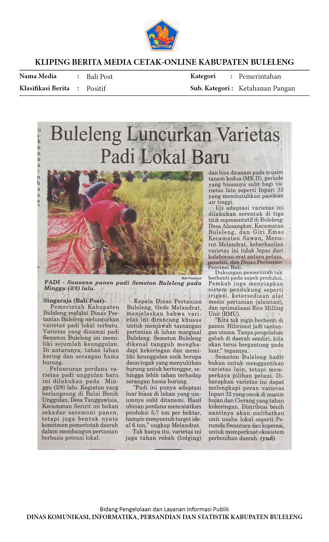 BULELENG LUNCURKAN VARIETAS PADI LOKAL BARU