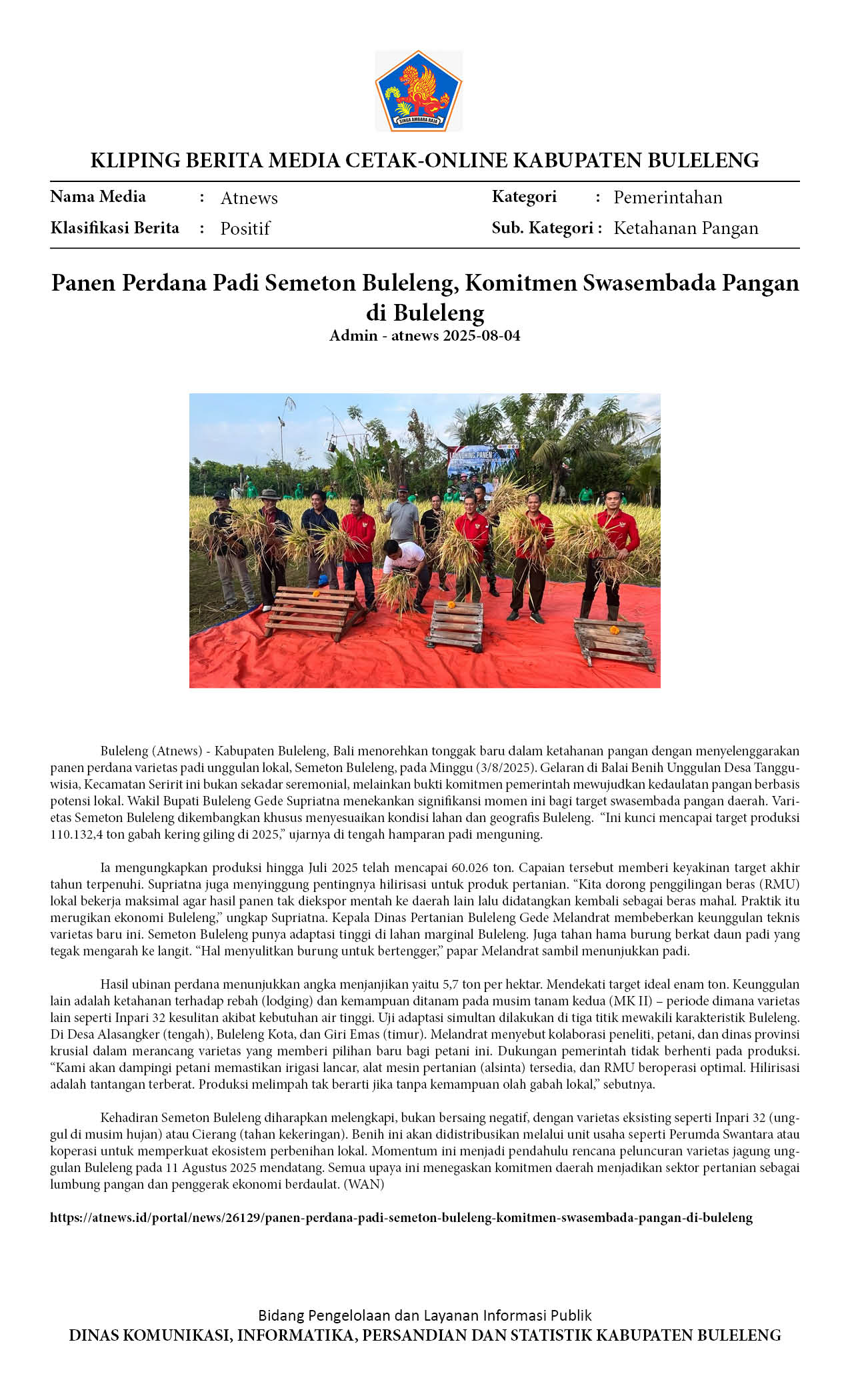 Kliping Kategori Pemerintahan Edisi 05 Agustus 2025