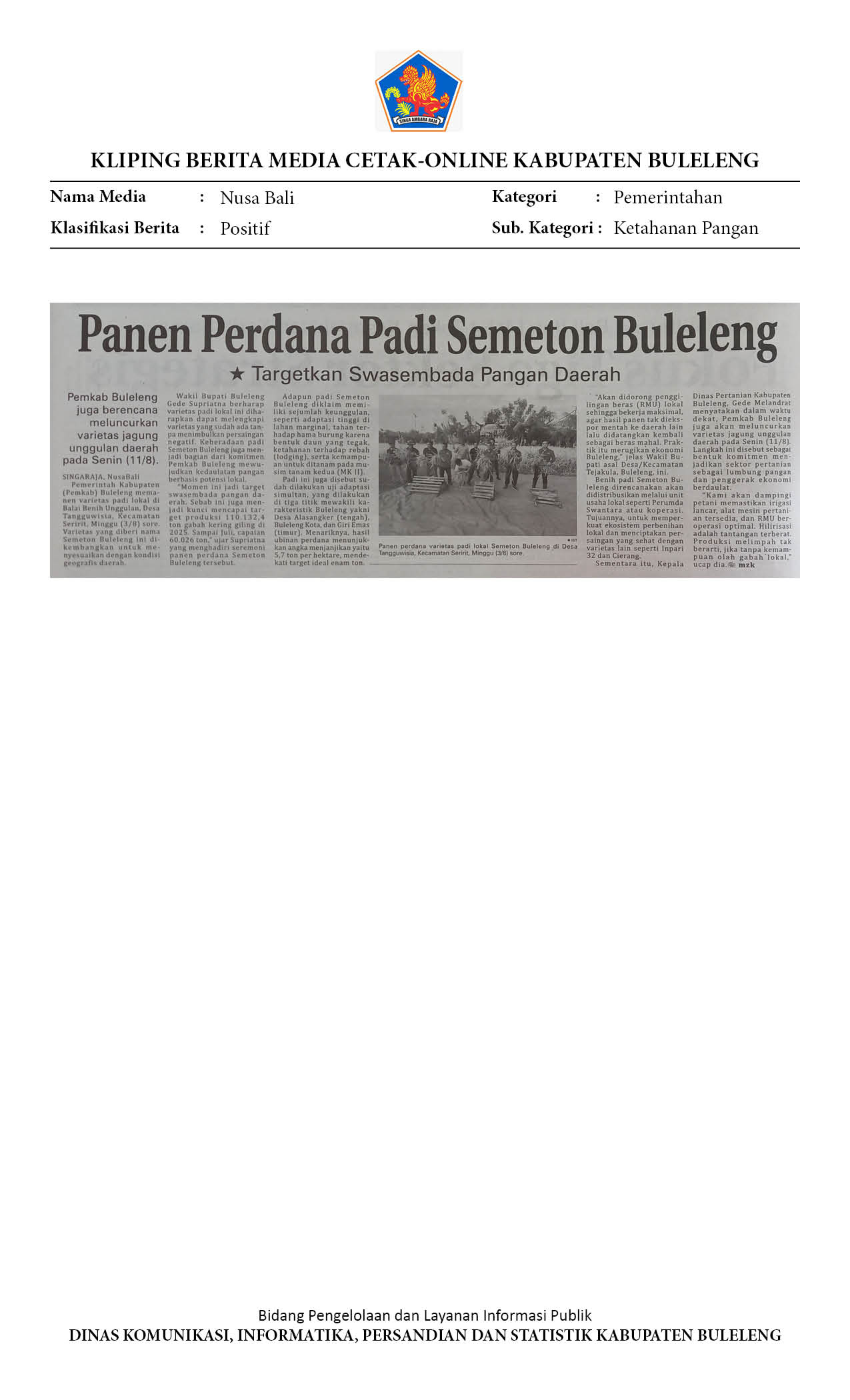 PANEN PERDANA VARIETAS PADI SEMETON BULELENG