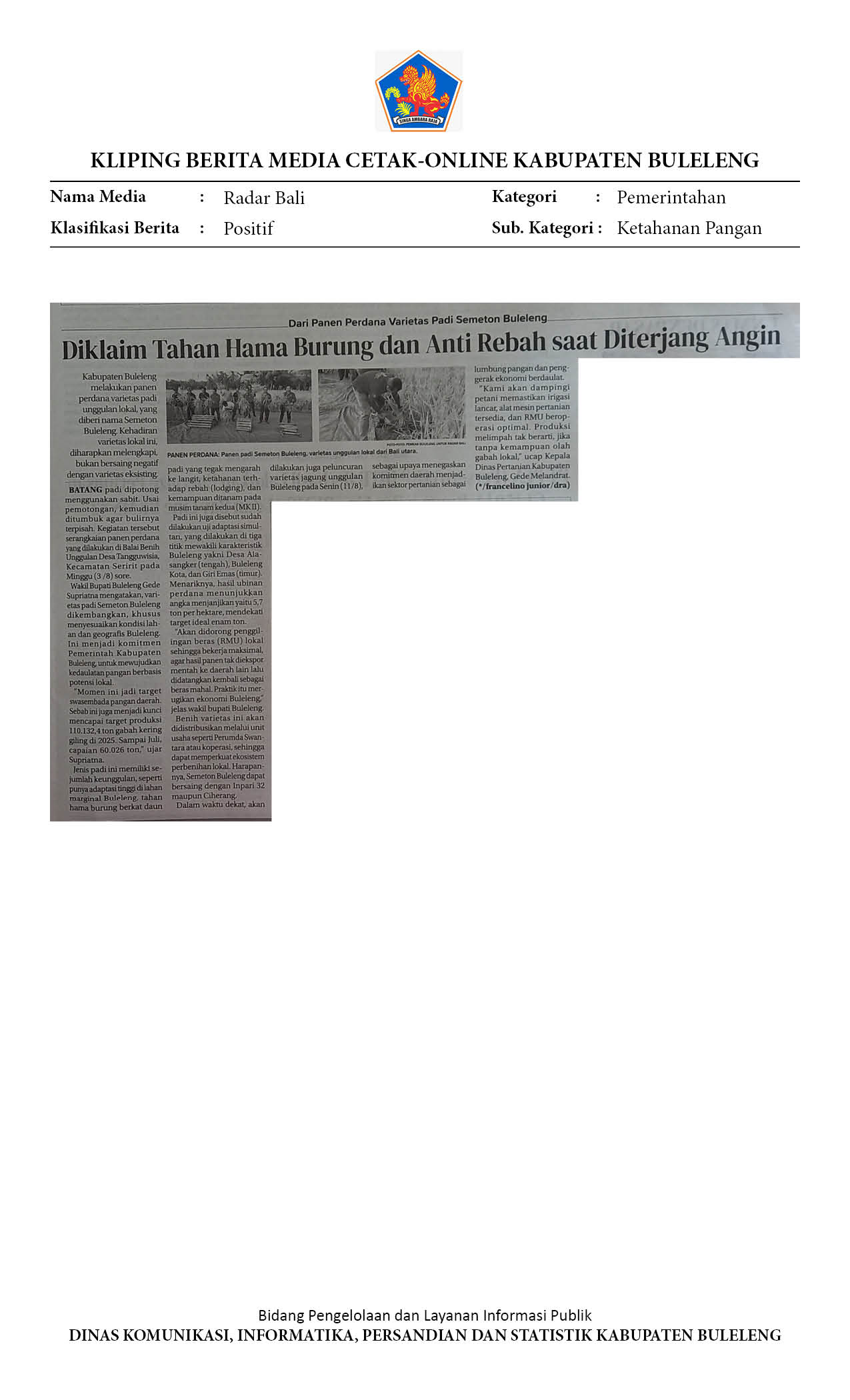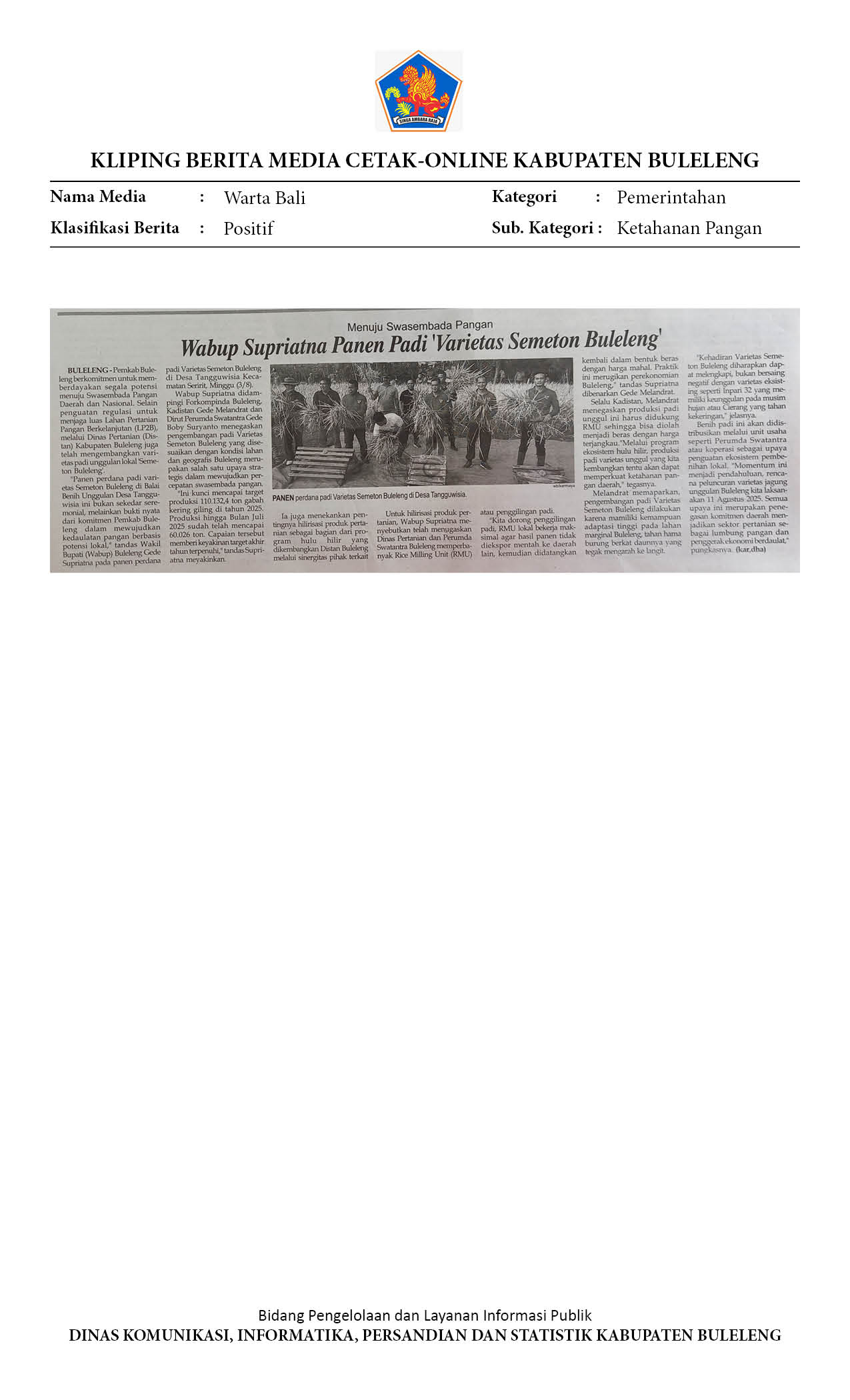 WABUP SUPRIATNA PANEN PADI VARIETAS SEMETON BULELENG