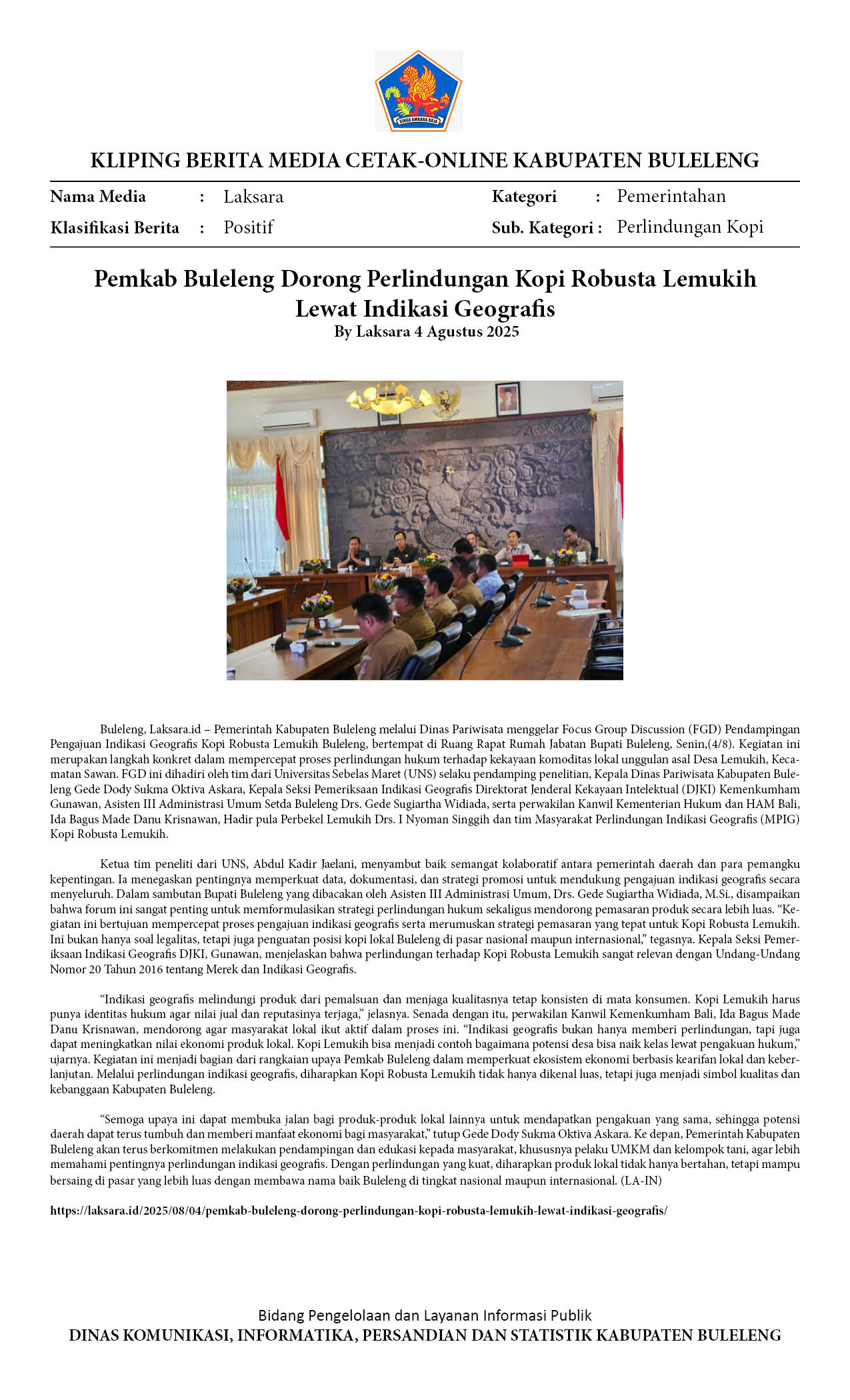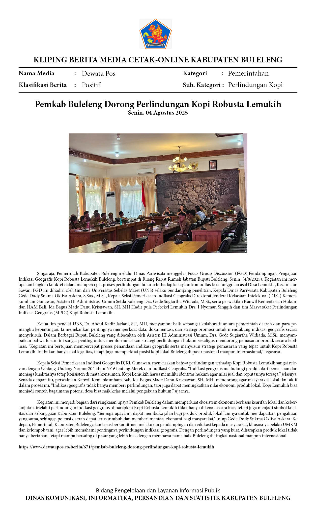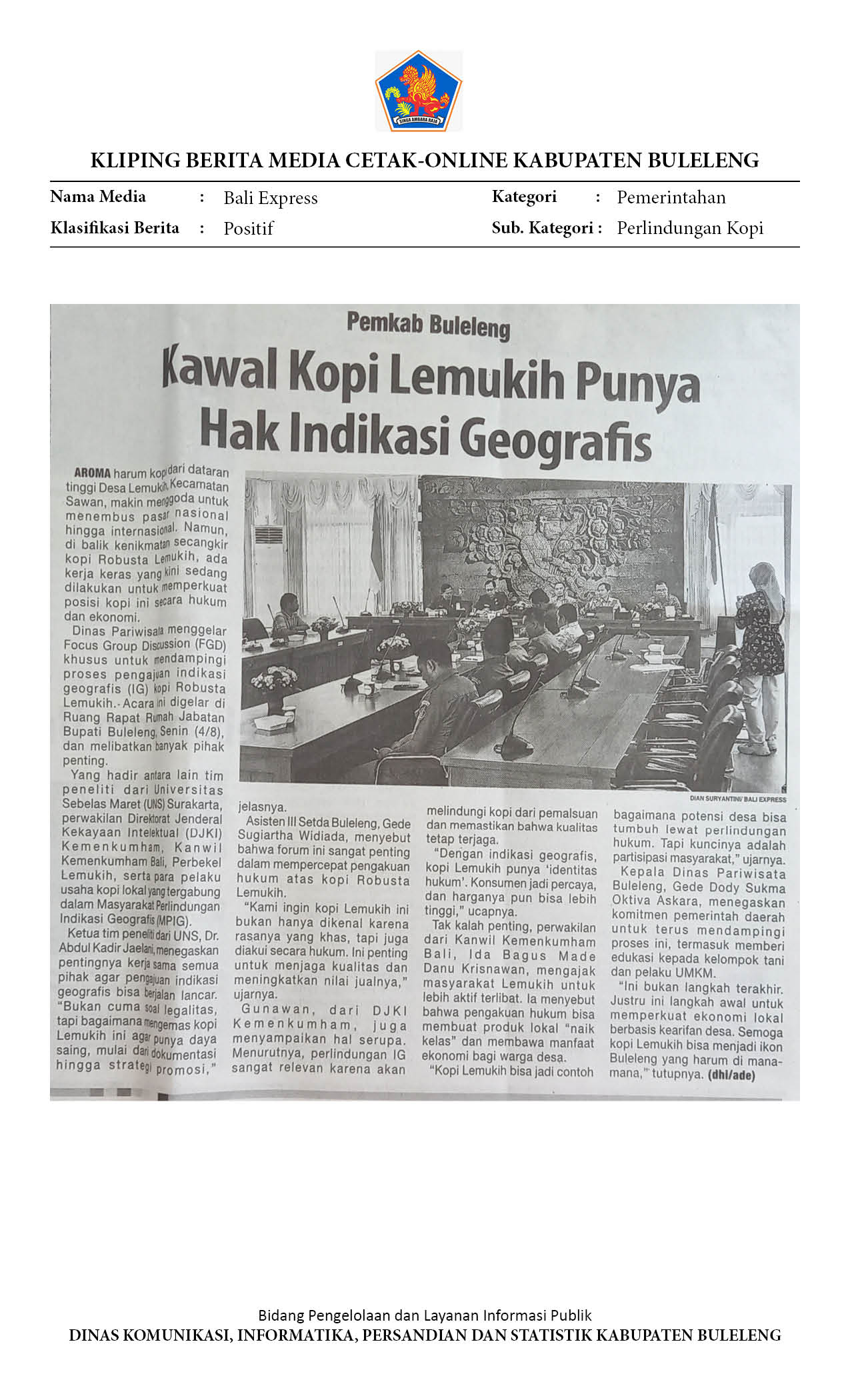 PEMKAB BULELENG DORONG PERLINDUNGAN KOPI ROBUSTA LEWAT INDIKASI GEOGRAFIS