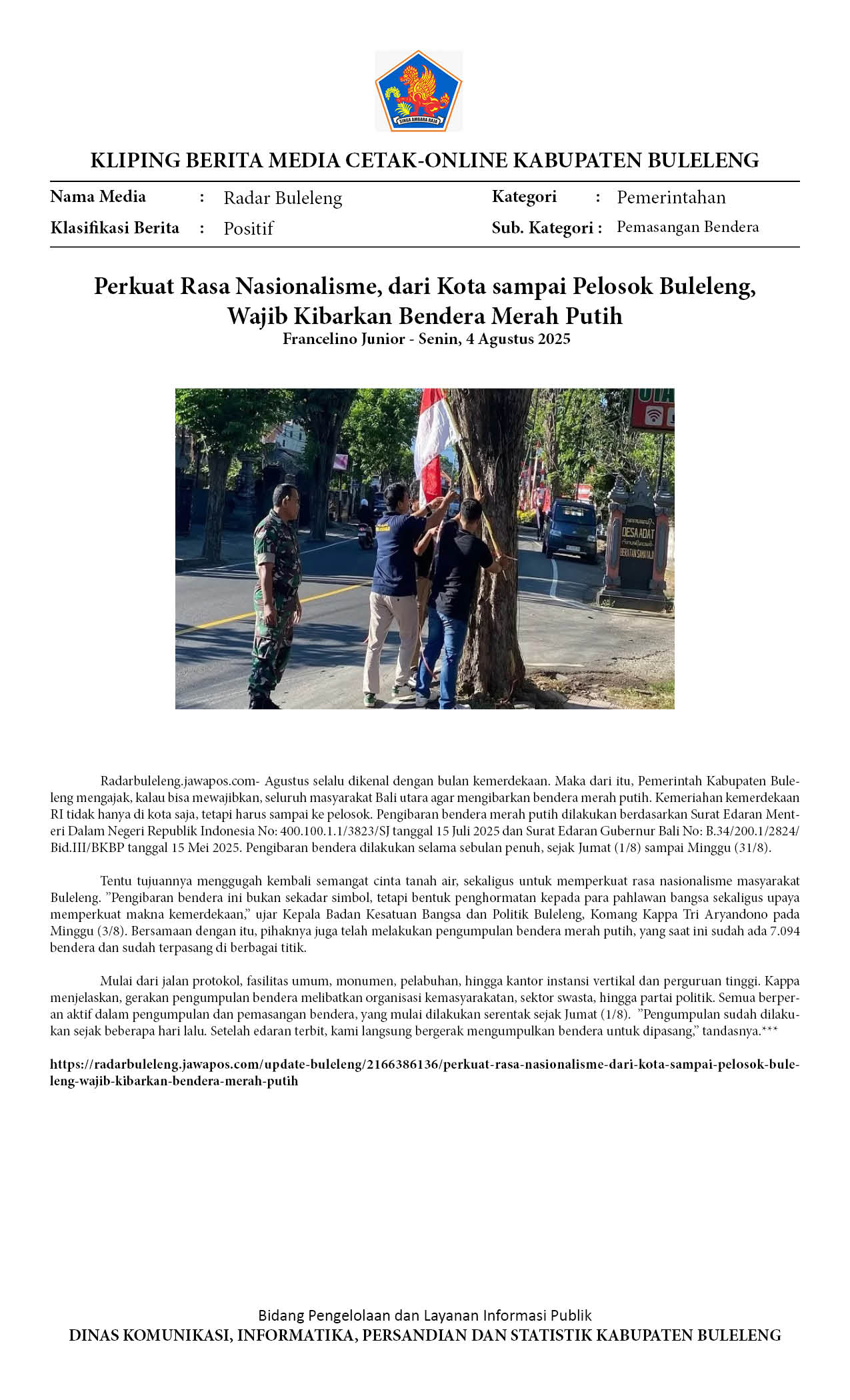 PERKUAT RASA NASIONALISME, DARI KOTA SAMPAI PELOSOK BULELENG, WAJIB KIBARKAN BENDERA MERAH PUTIH