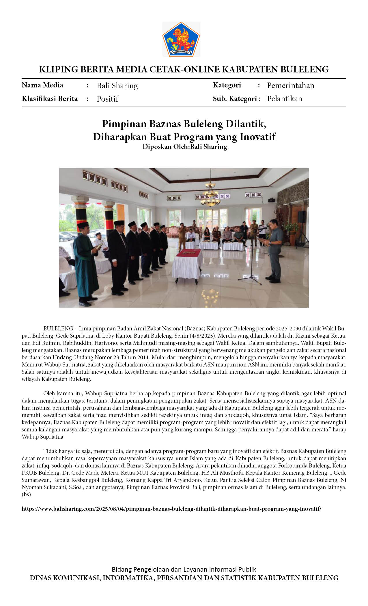PIMPINAN BAZNAS BULELENG DILANTIK, DIHARAPKAN BUAT PROGRAM YANG INOVATIF