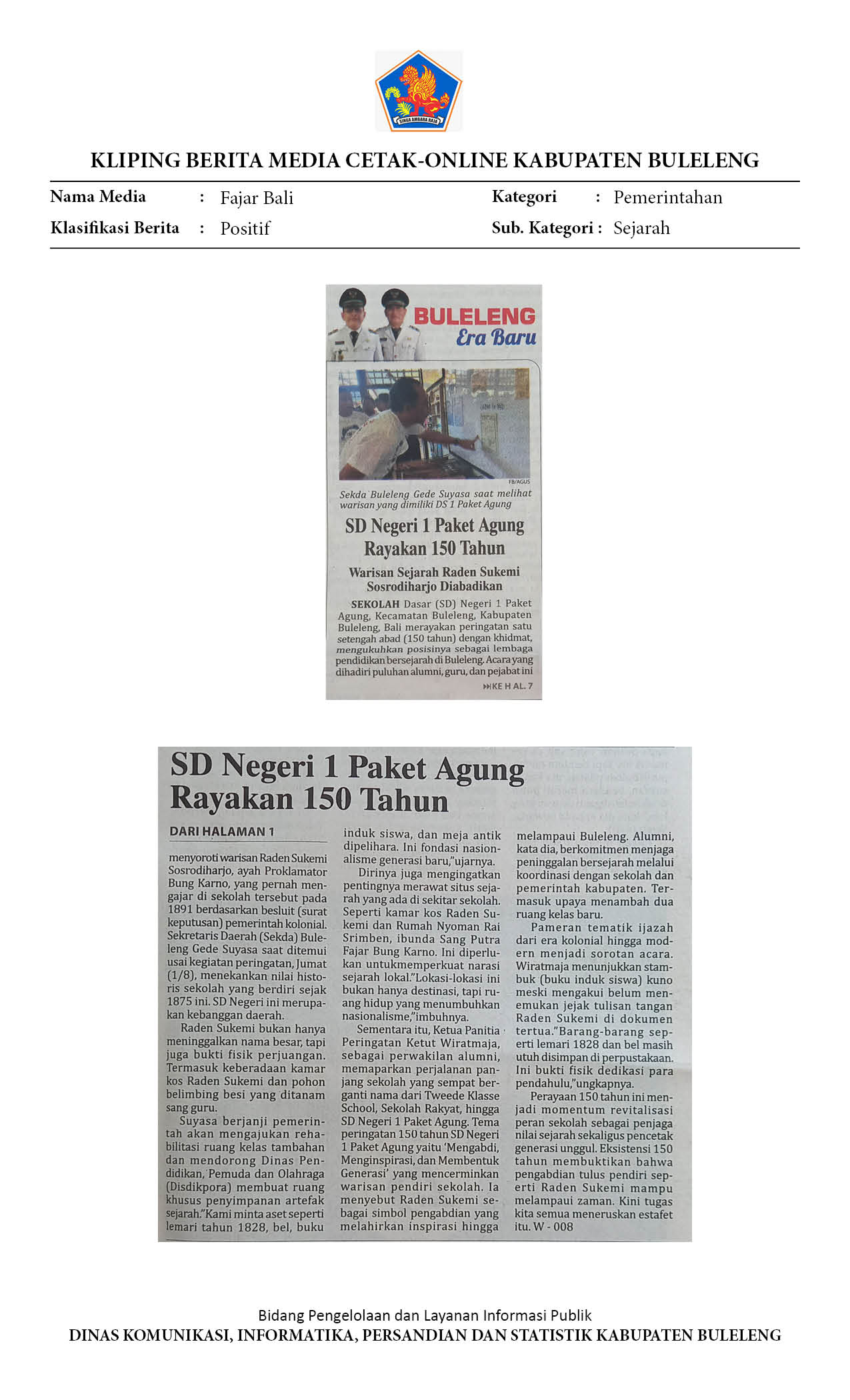SD NEGERI 1 PAKET AGUNG RAYAKAN 150 TAHUN