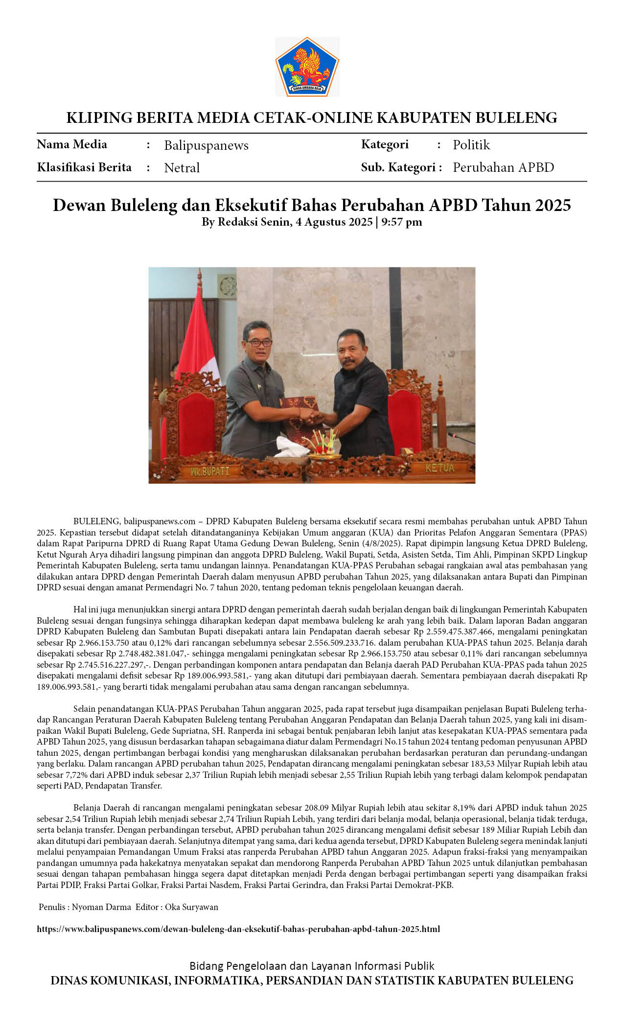 Kliping Kategori Politik Edisi 05 Agustus 2025