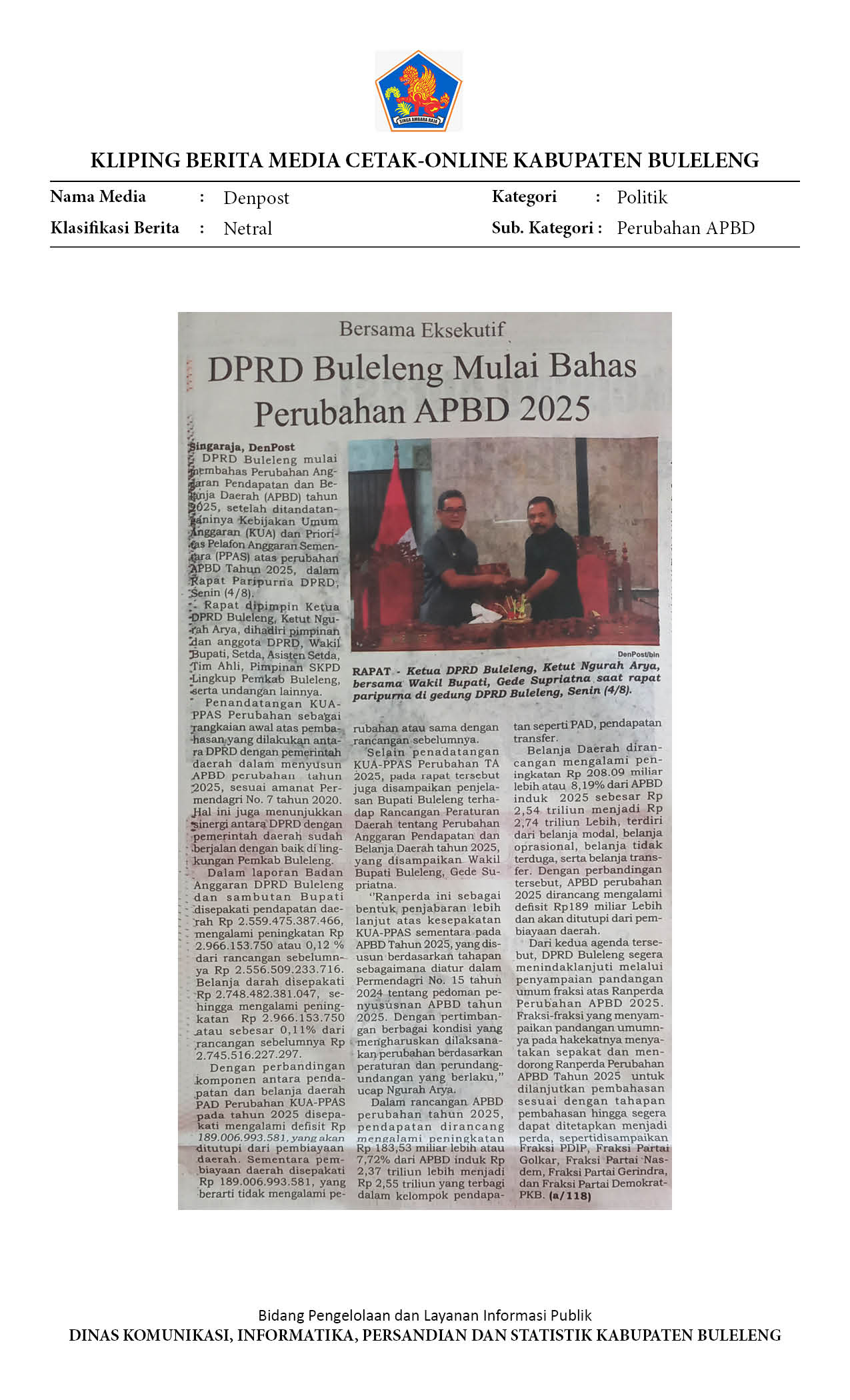 DEWAN BULELENG DAN EKSEKUTIF BAHAS PERUBAHAN APBD TAHUN 2025