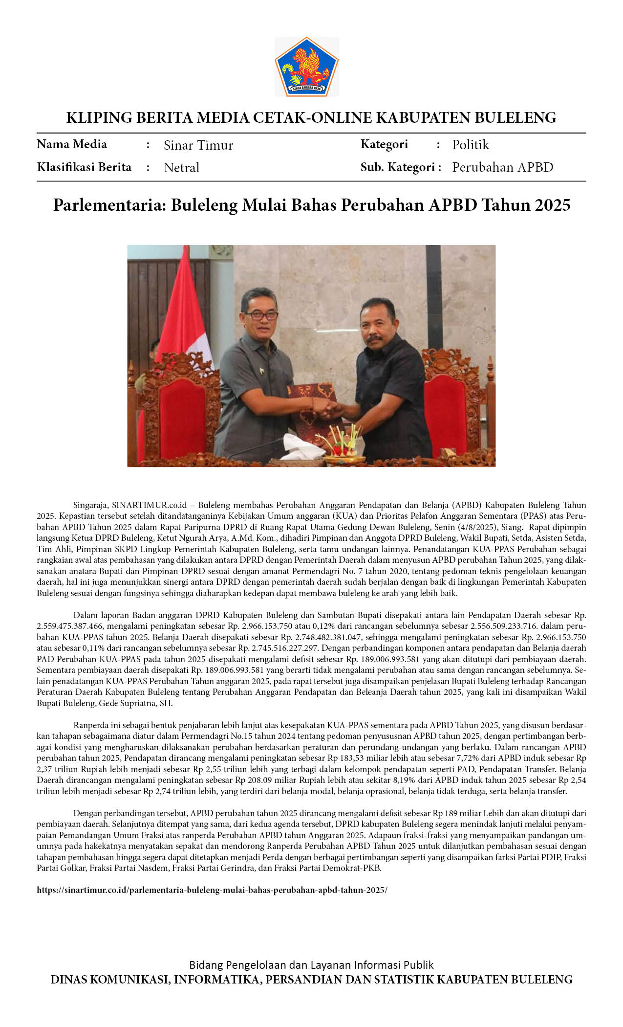 PARLEMENTARIA: BULELENG MULAI BAHAS PERUBAHAN APBD TAHUN 2025
