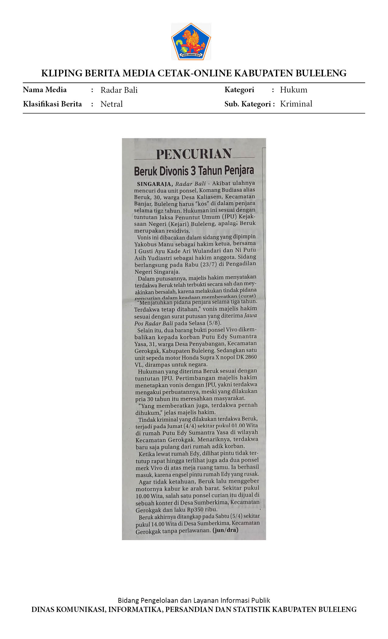 Kliping Kategori Hukum Edisi 06 Agustus 2025