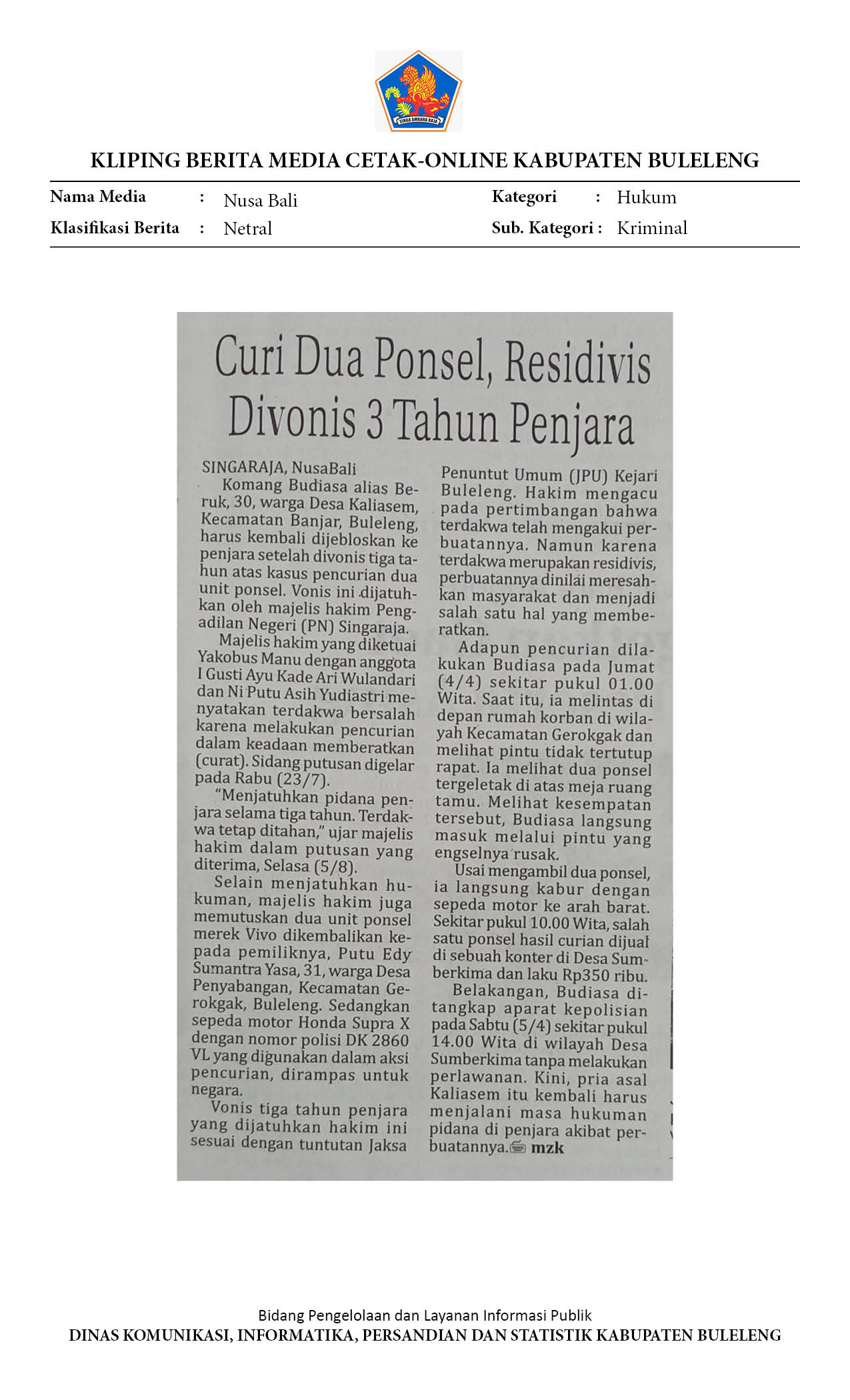 CURI DUA PONSEL, RESIDIVIS DIVONIS 3 TAHUN PENJARA