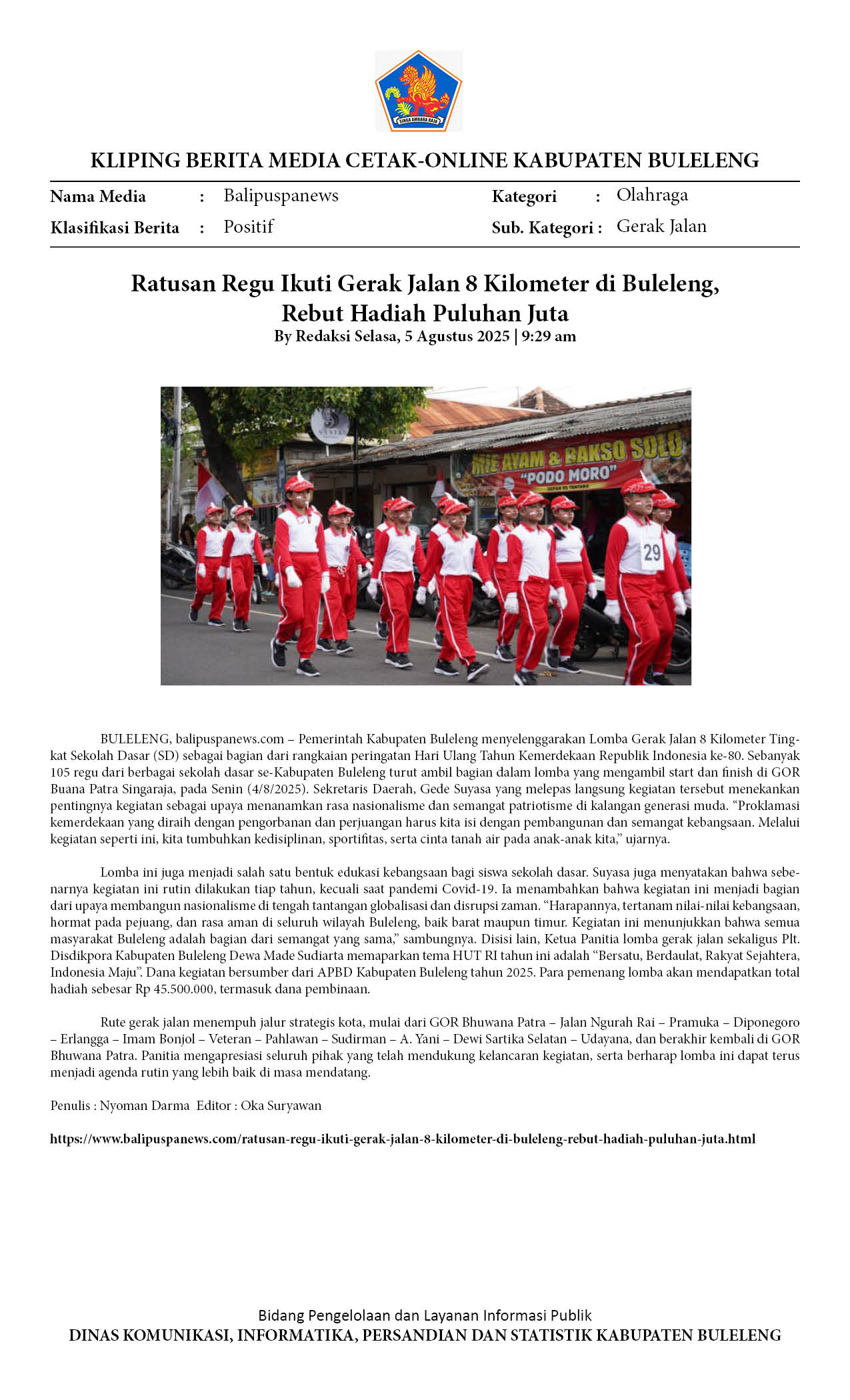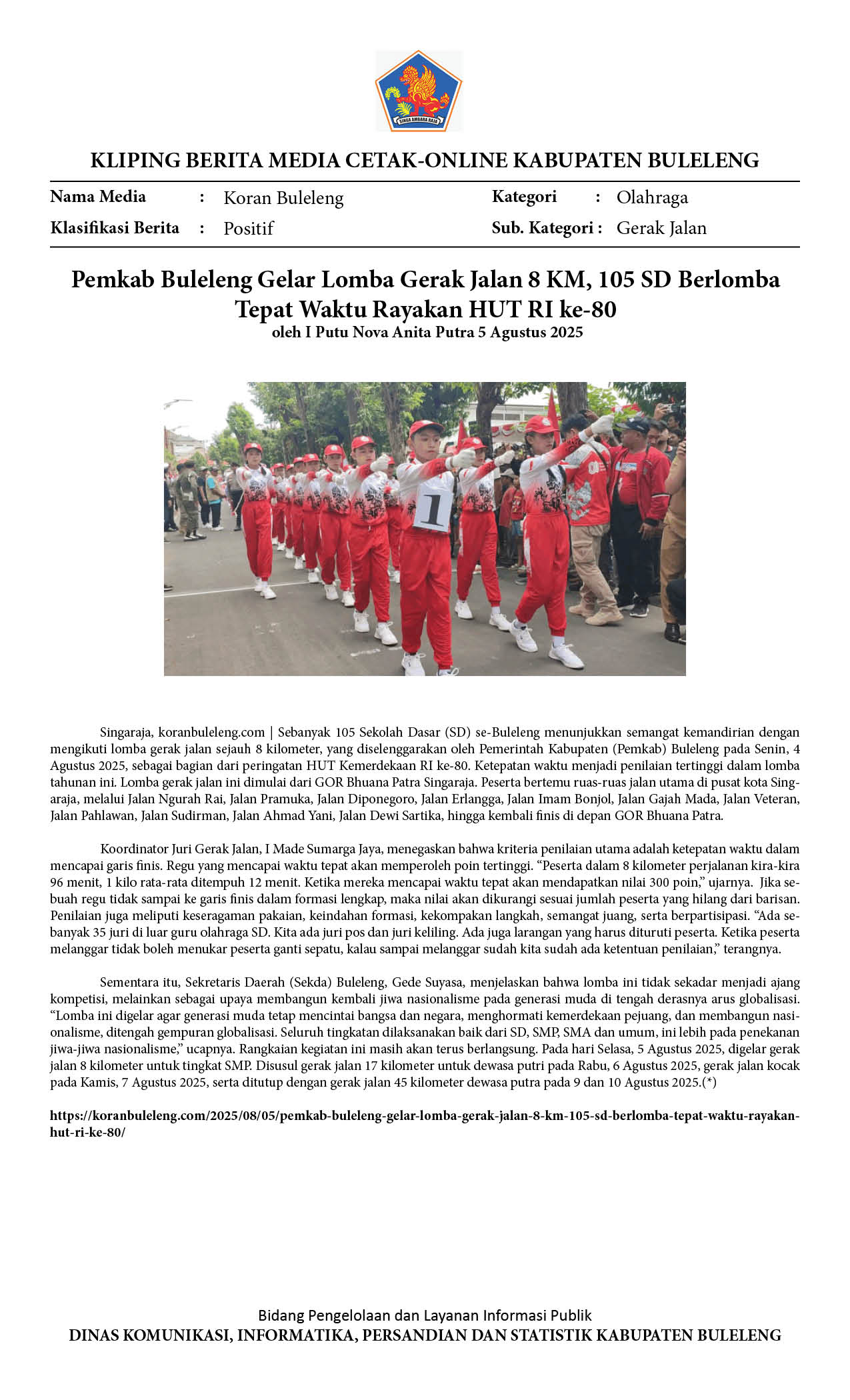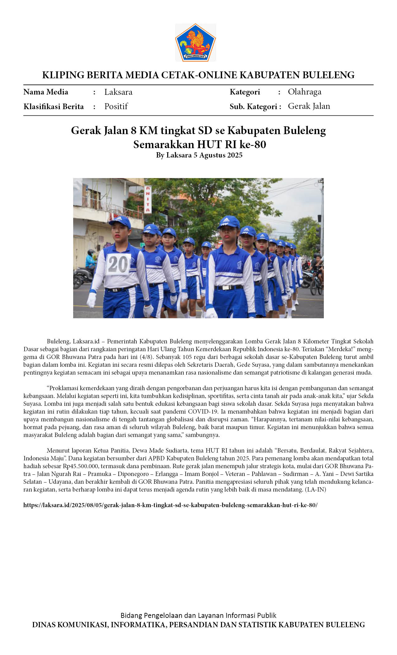 GERAK JALAN 8 KM TINGKAT SD SE-KABUPATEN BULELENG SEMARAKKAN HUT RI KE-80, DIIKUTI 105 REGU