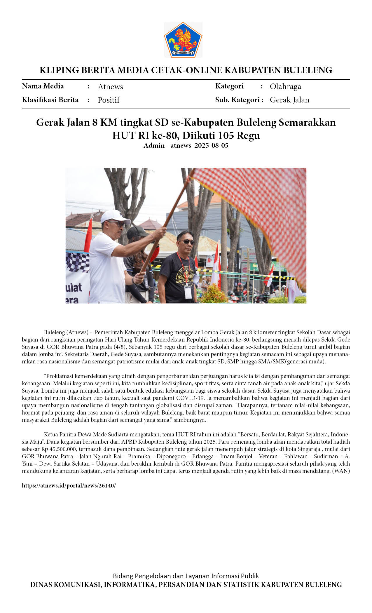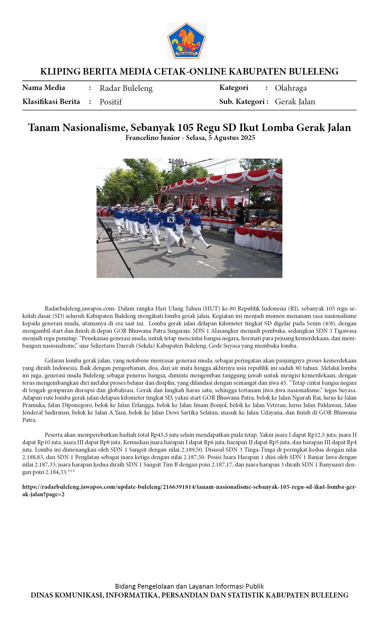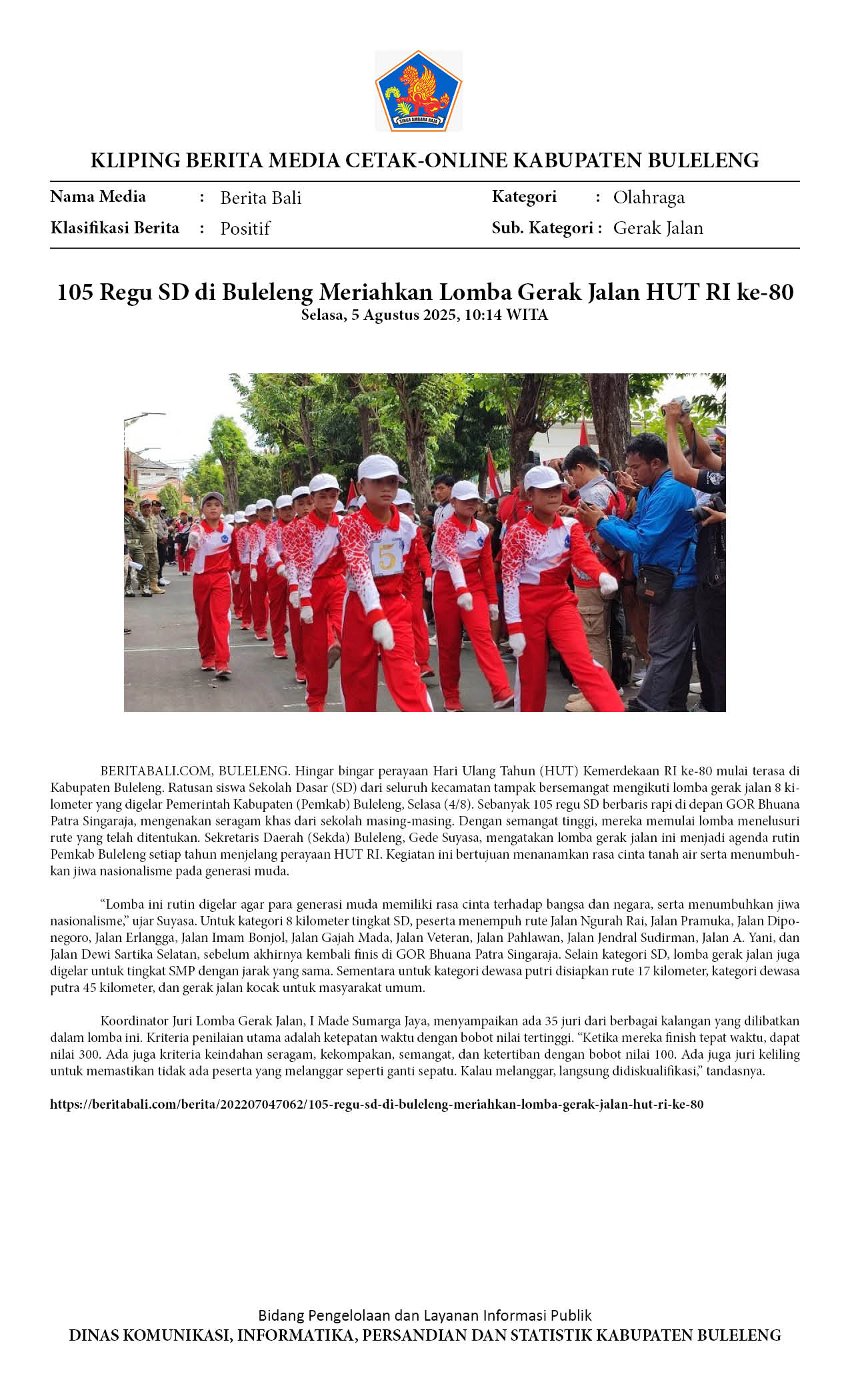GERAK JALAN 8 KM TINGKAT SD SE-KABUPATEN BULELENG SEMARAKKAN HUT RI KE-80, DIIKUTI 105 REGU