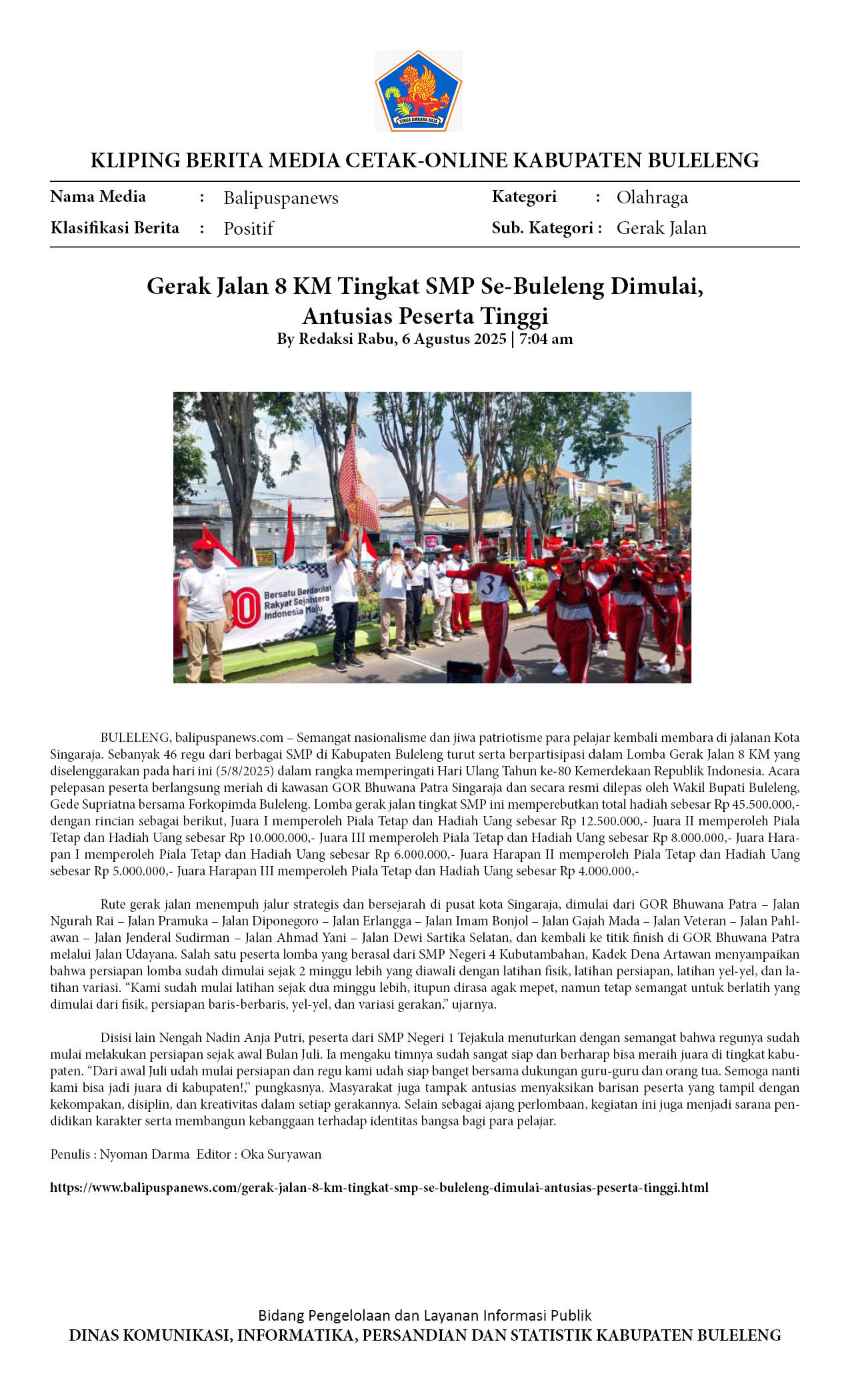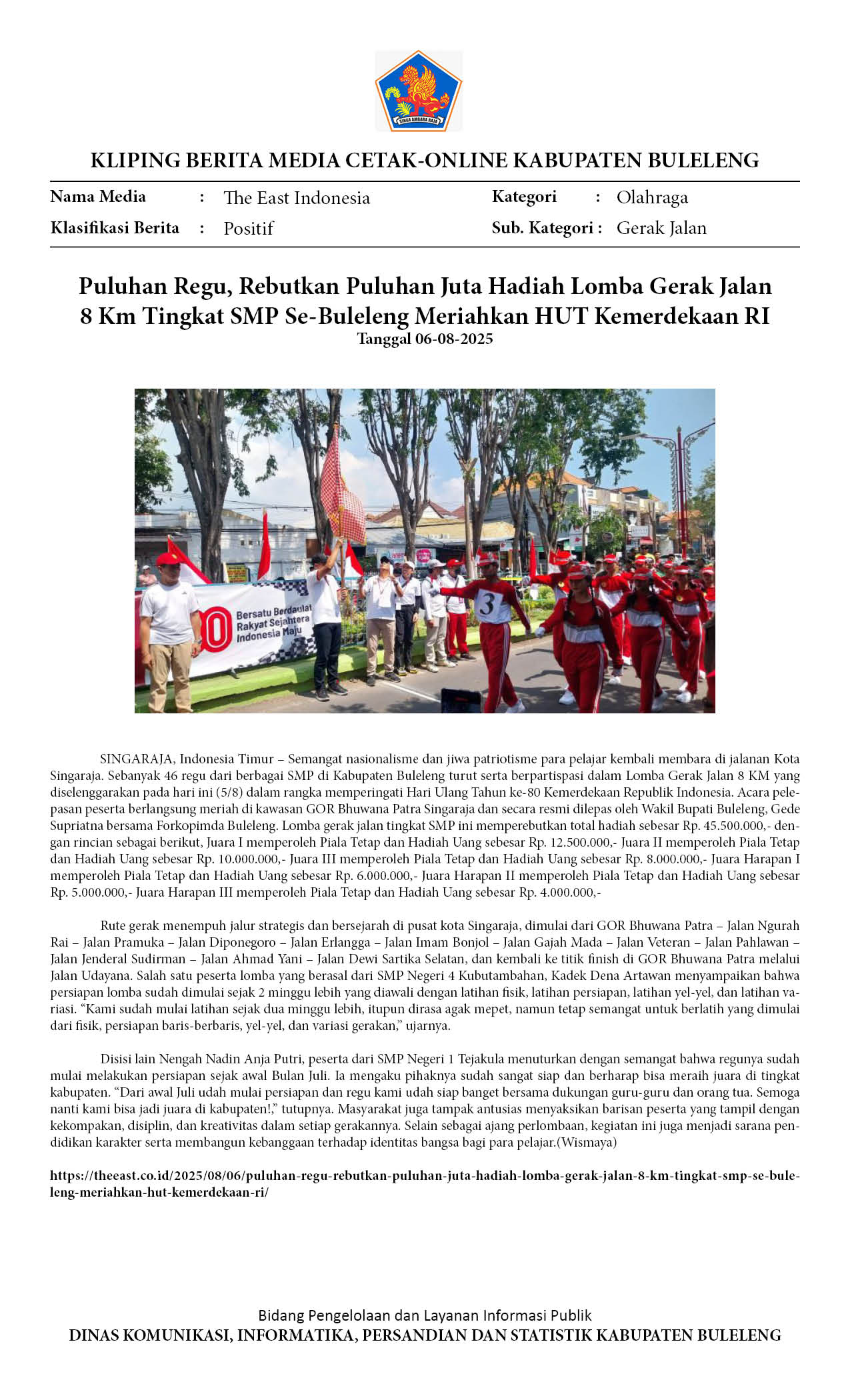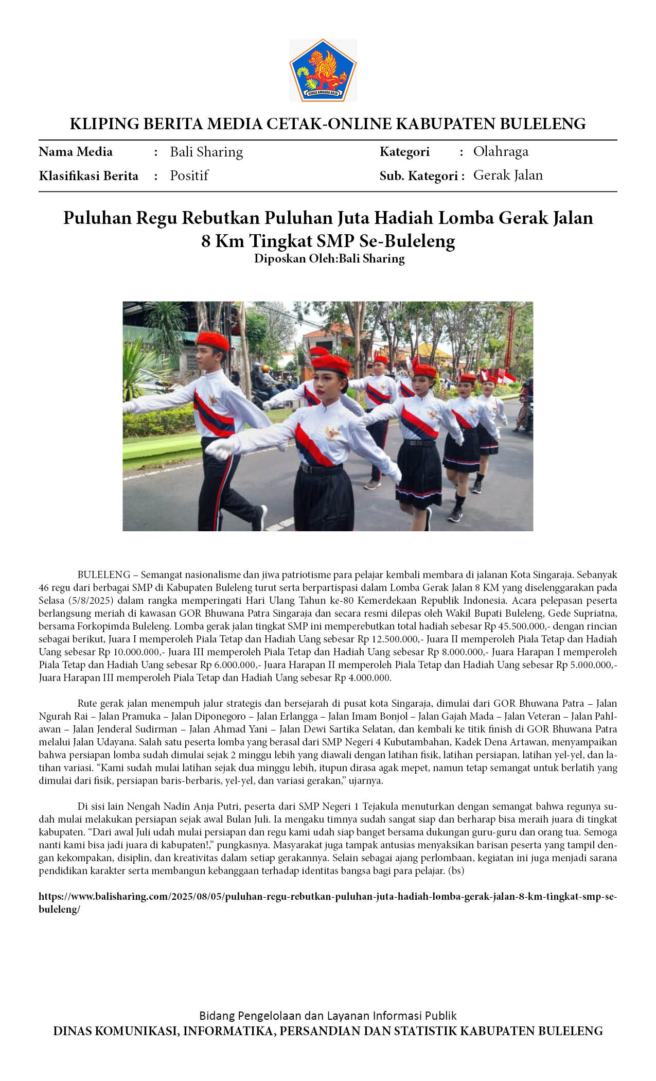 PULUHAN REGU, REBUTKAN PULUHAN JUTA HADIAH LOMBA GERAK JALAN 8 KM TINGKAT SMP SE-BULELENG MERIAHKAN HUT KEMERDEKAAN RI