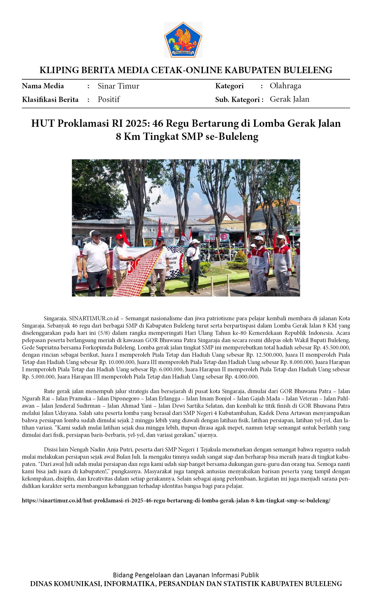 HUT PROKLAMASI RI 2025: 46 REGU BERTARUNG DI LOMBA GERAK JALAN 8 KM TINGKAT SMP SE-BULELENG