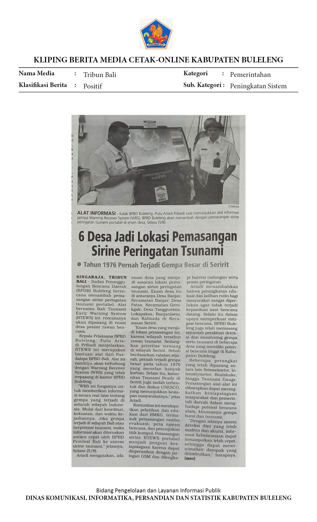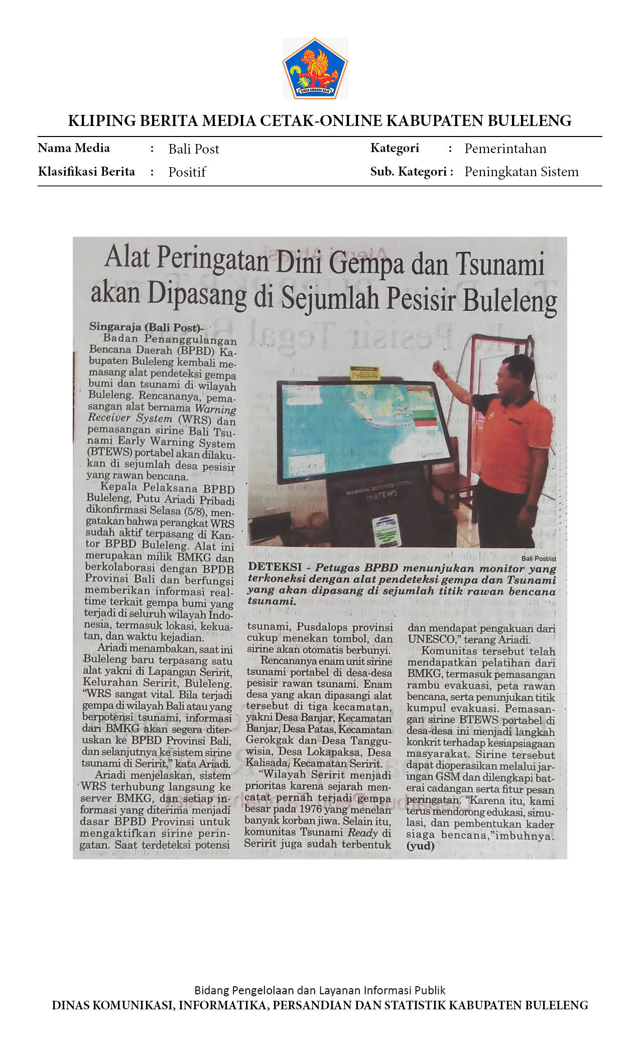 ALAT PERINGATAN DINI GEMPA DAN TSUNAMI AKAN DIPASANG DI SEJUMLAH PESISIR BULELENG