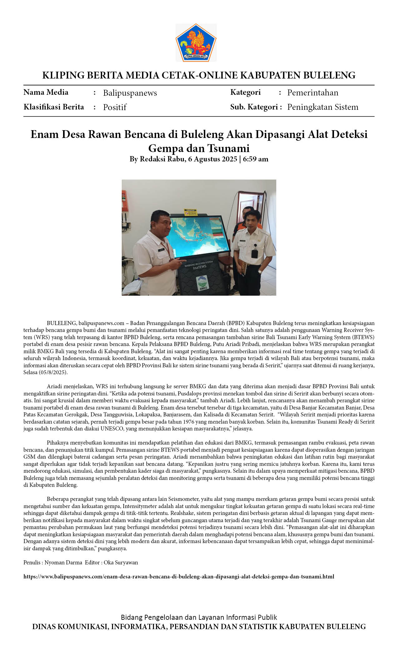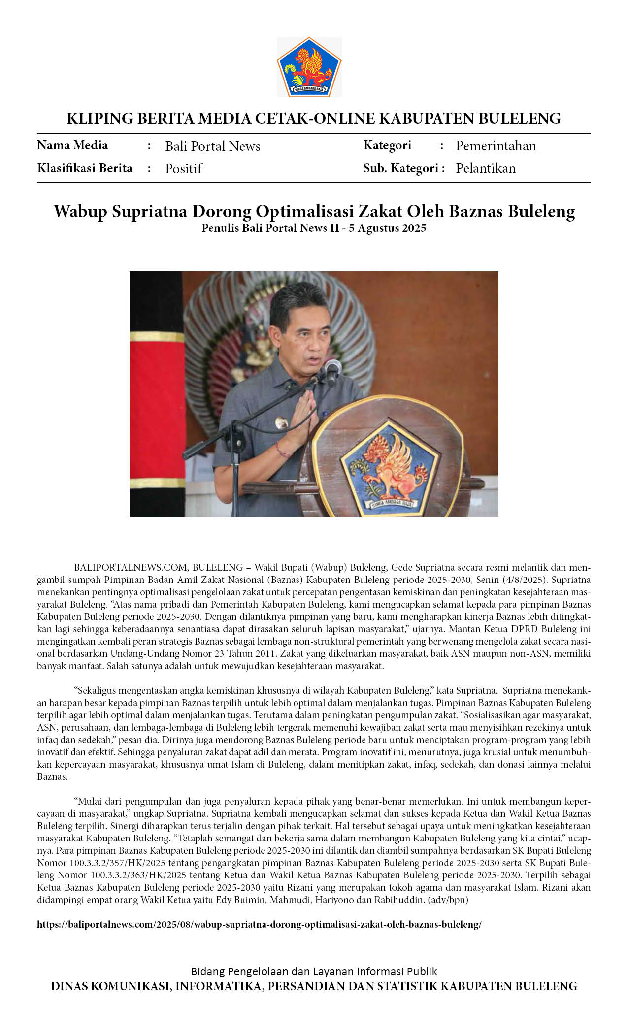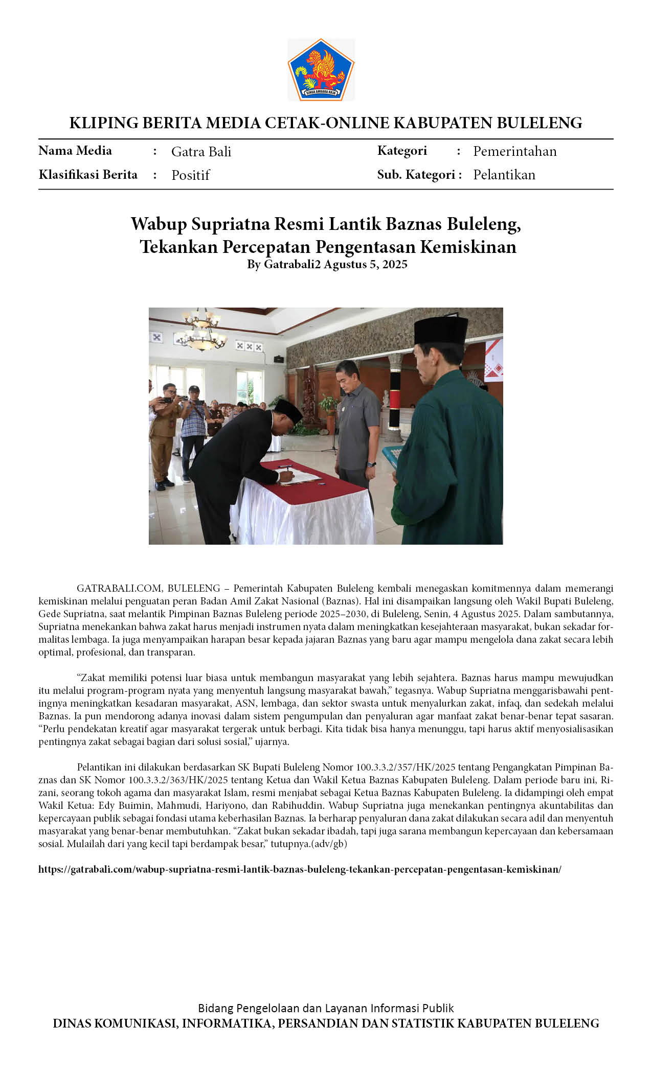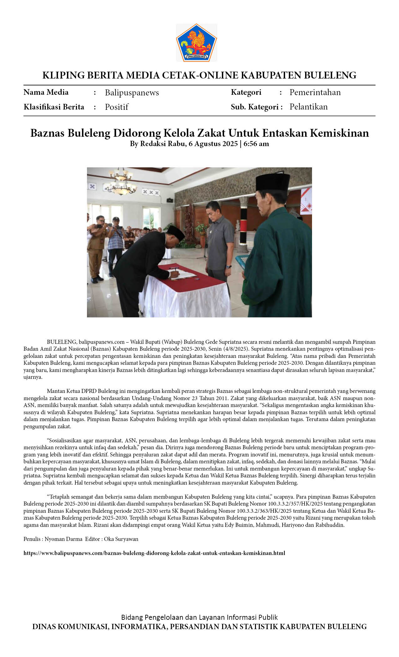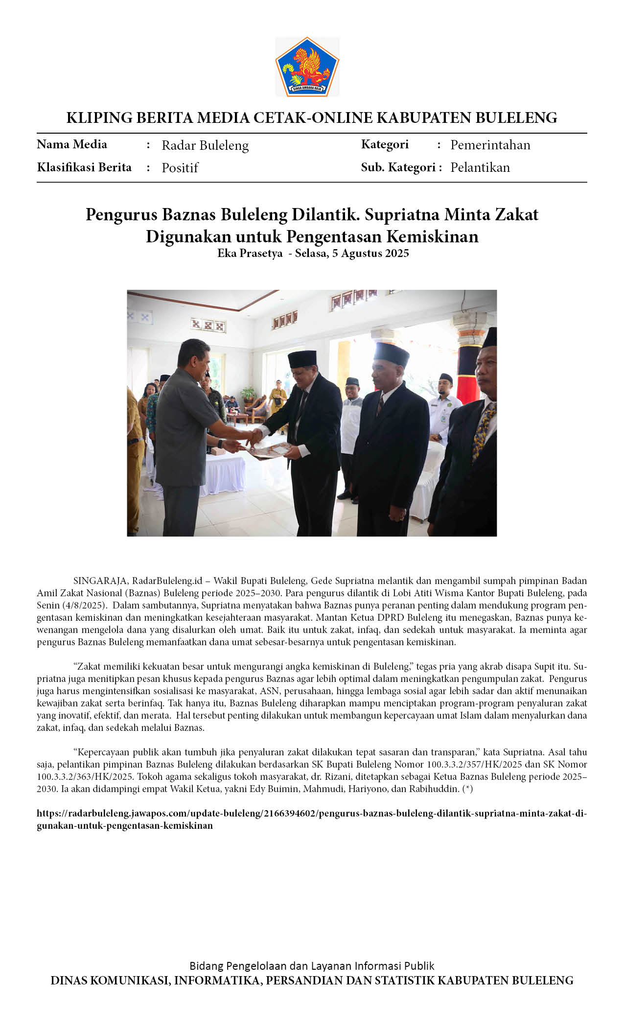 Kliping Kategori Pemerintahan Edisi 06 Agustus 2025