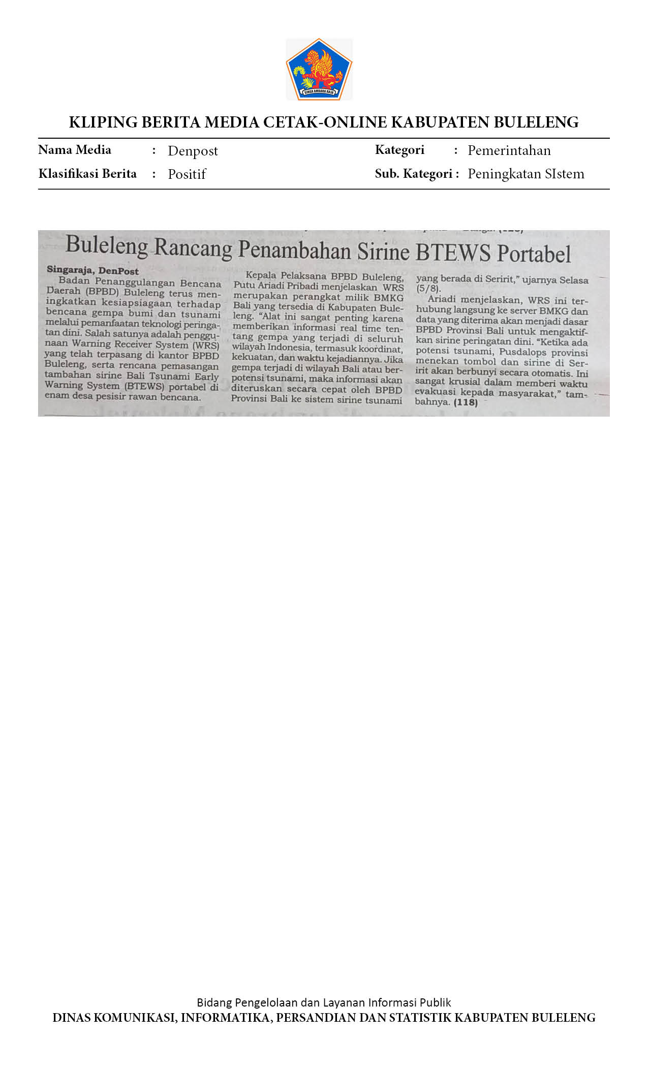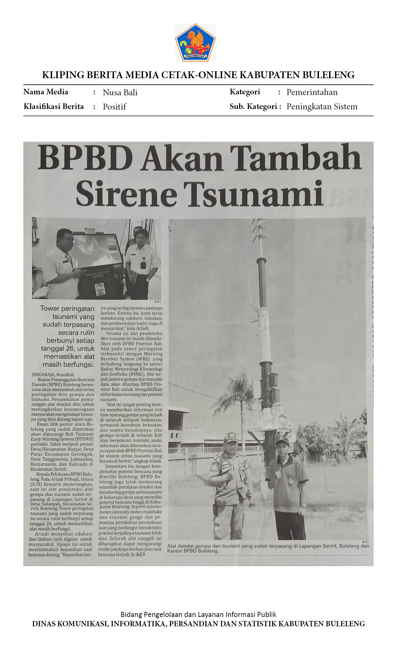 BULELENG RANCANG PENAMBAHAN SIRINE BTEWS PORTABEL