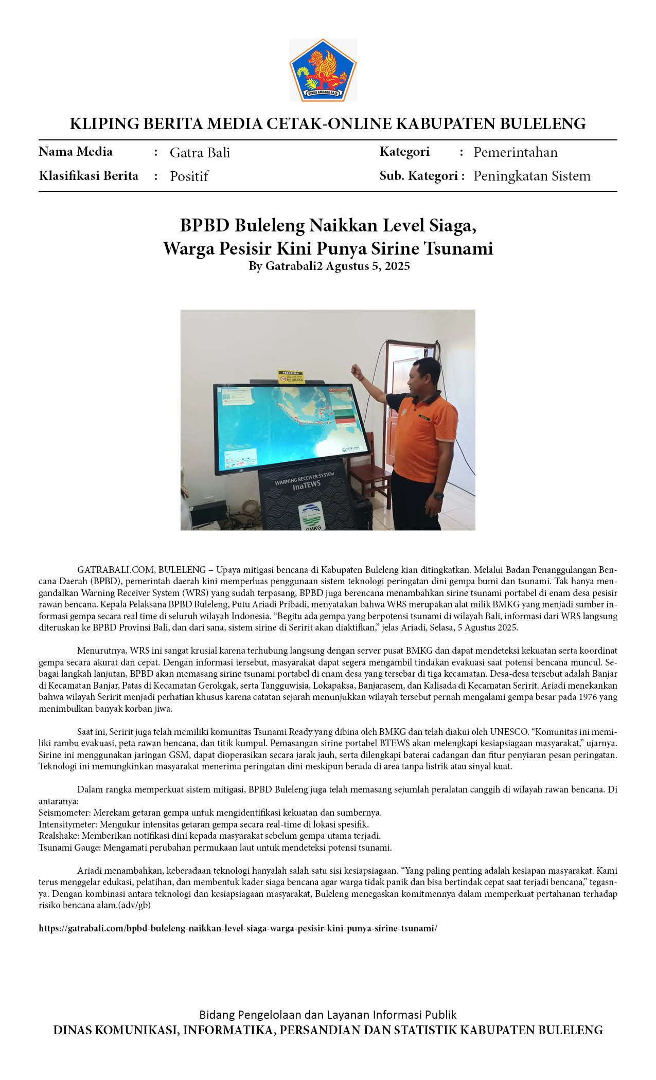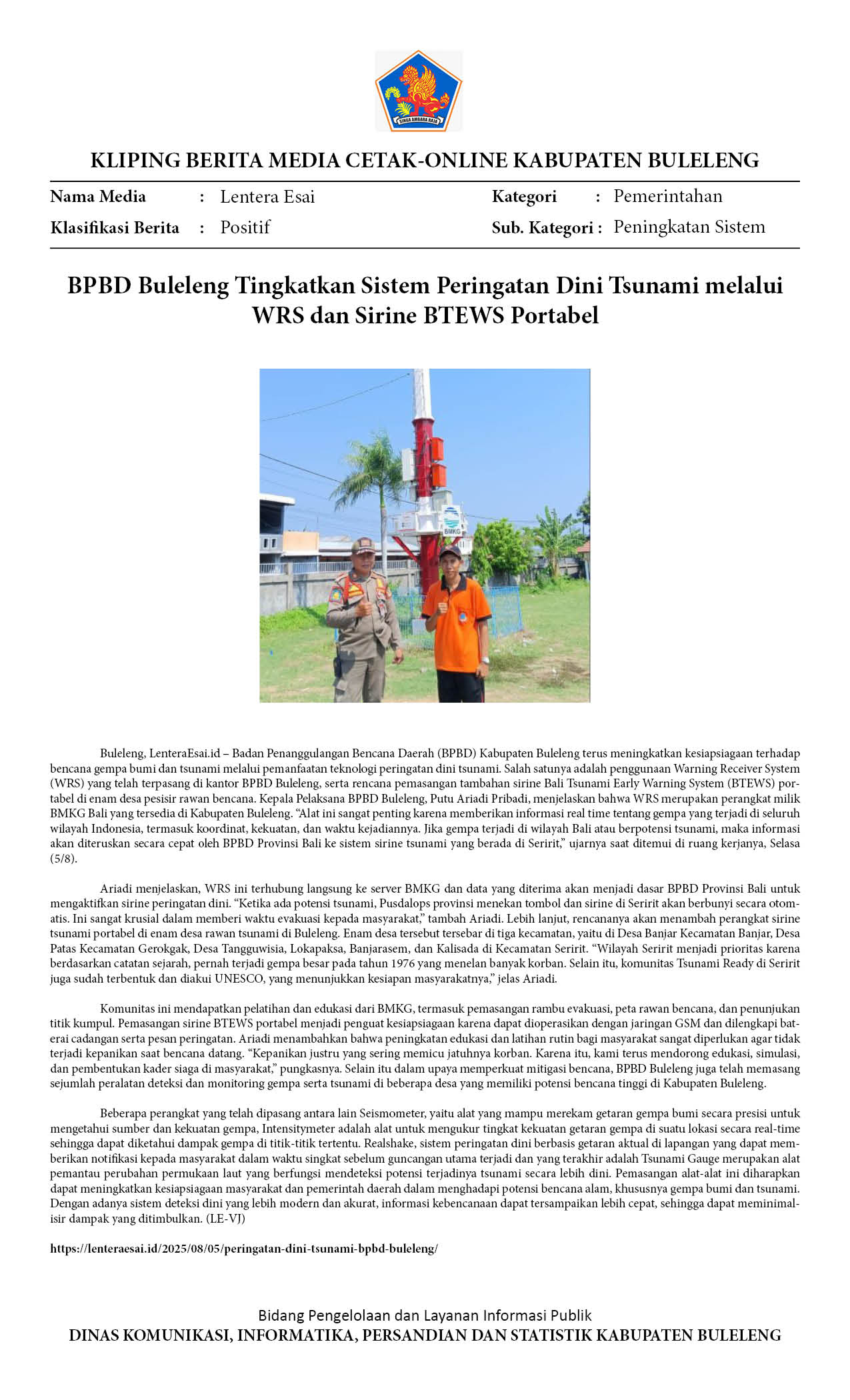 SIAGA GEMPA DAN TSUNAMI, BPBD BULELENG MAKSIMALKAN TEKNOLOGI WRS DAN EDUKASI MASYARAKAT