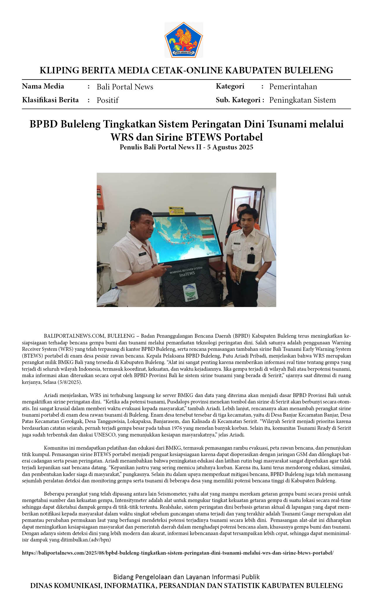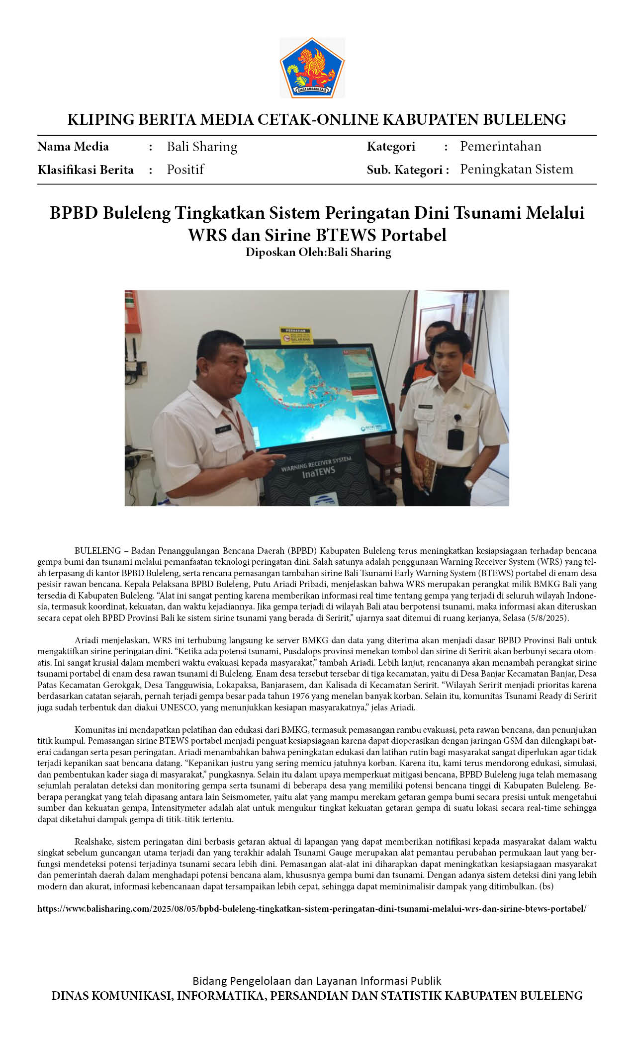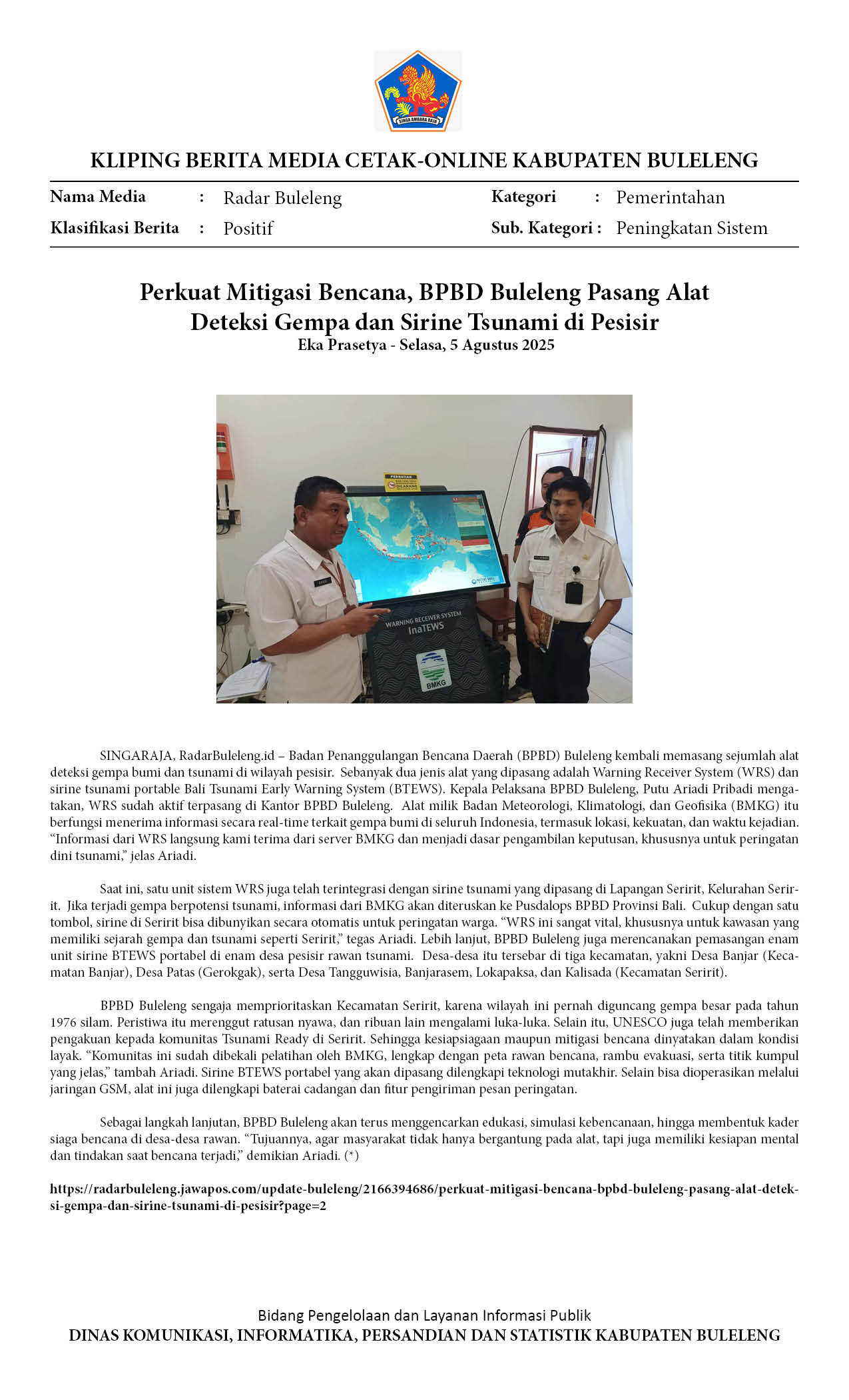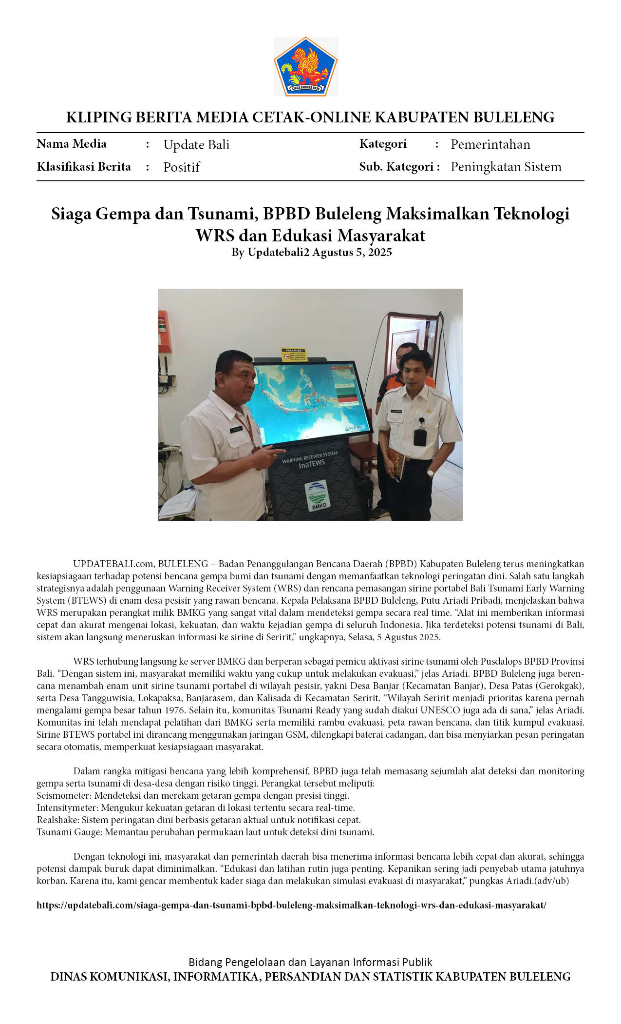 BPBD BULELENG GUNAKAN WRS DAN BTEWS PORTABEL