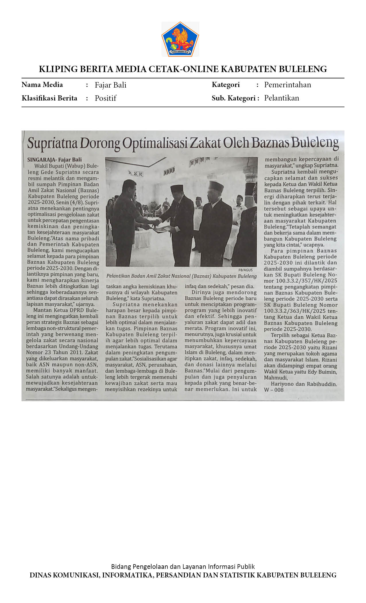 SUPRIATNA DORONG OPTIMALISASI ZAKAT OLEH BAZNAS BULELENG