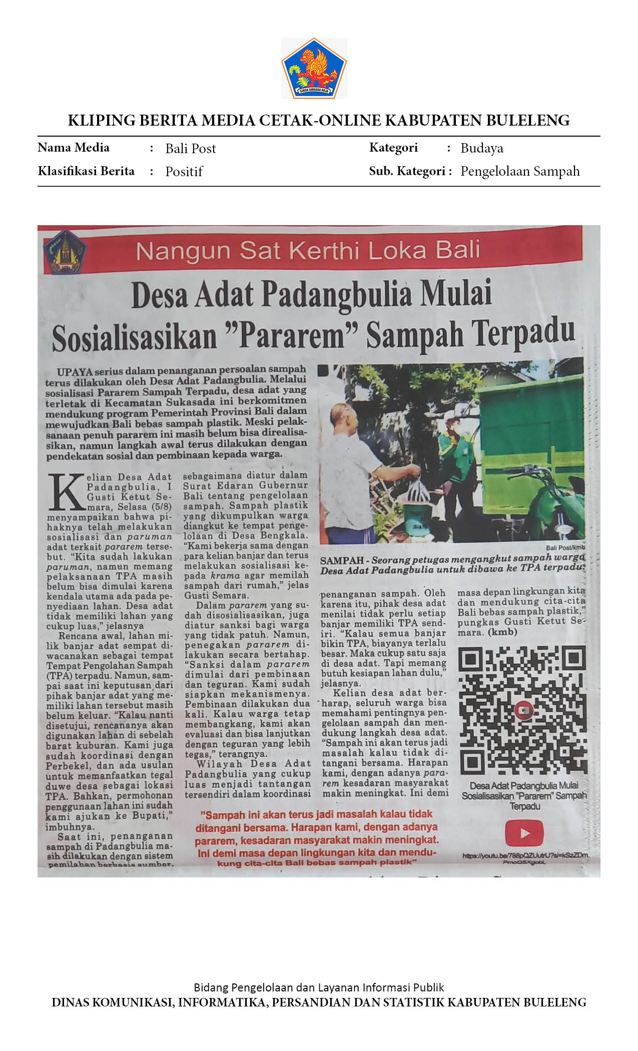 DESA ADAT PADANGBULIA MULAI SOSIALISASIKAN PARAREM SAMPAH TERPADU