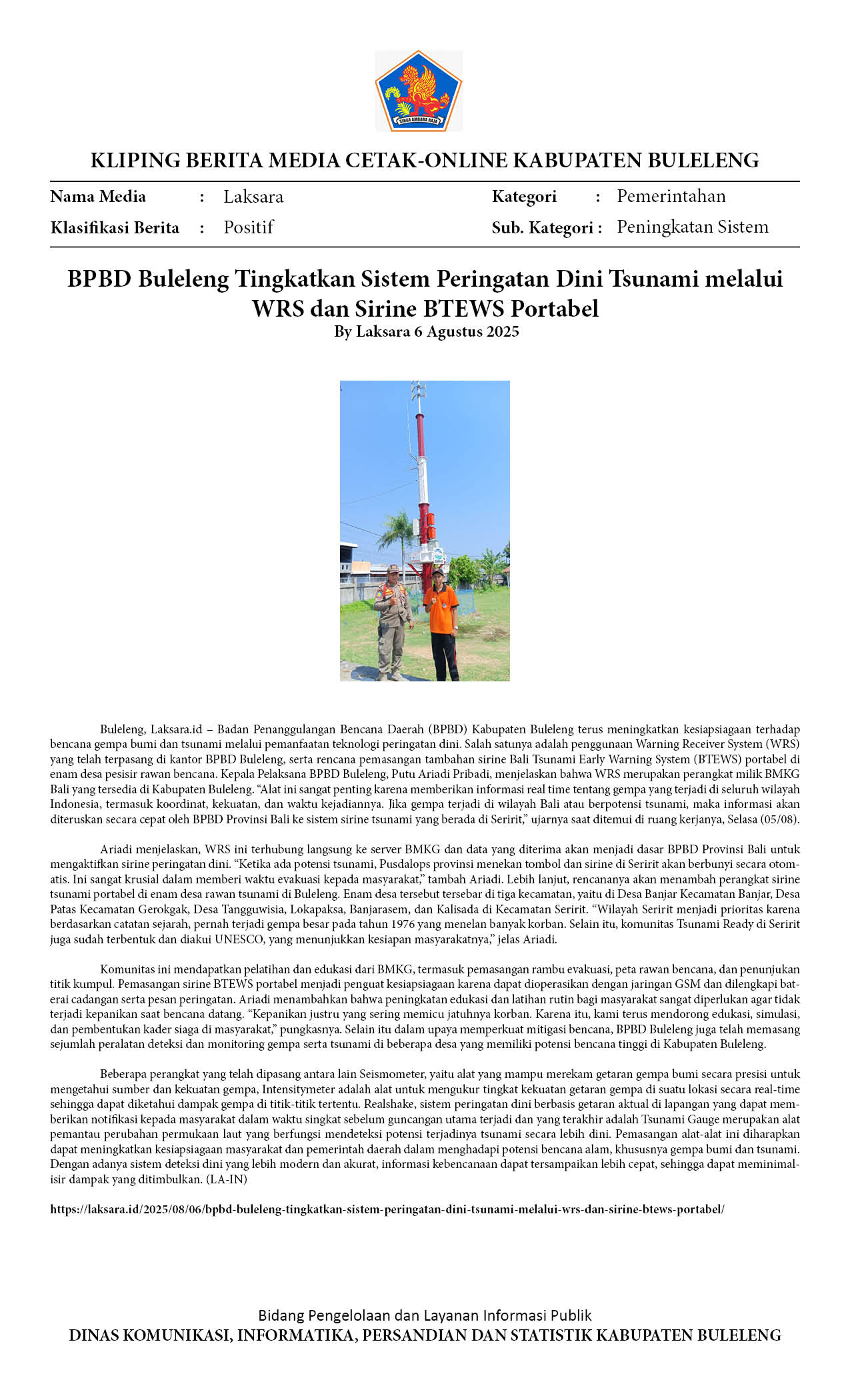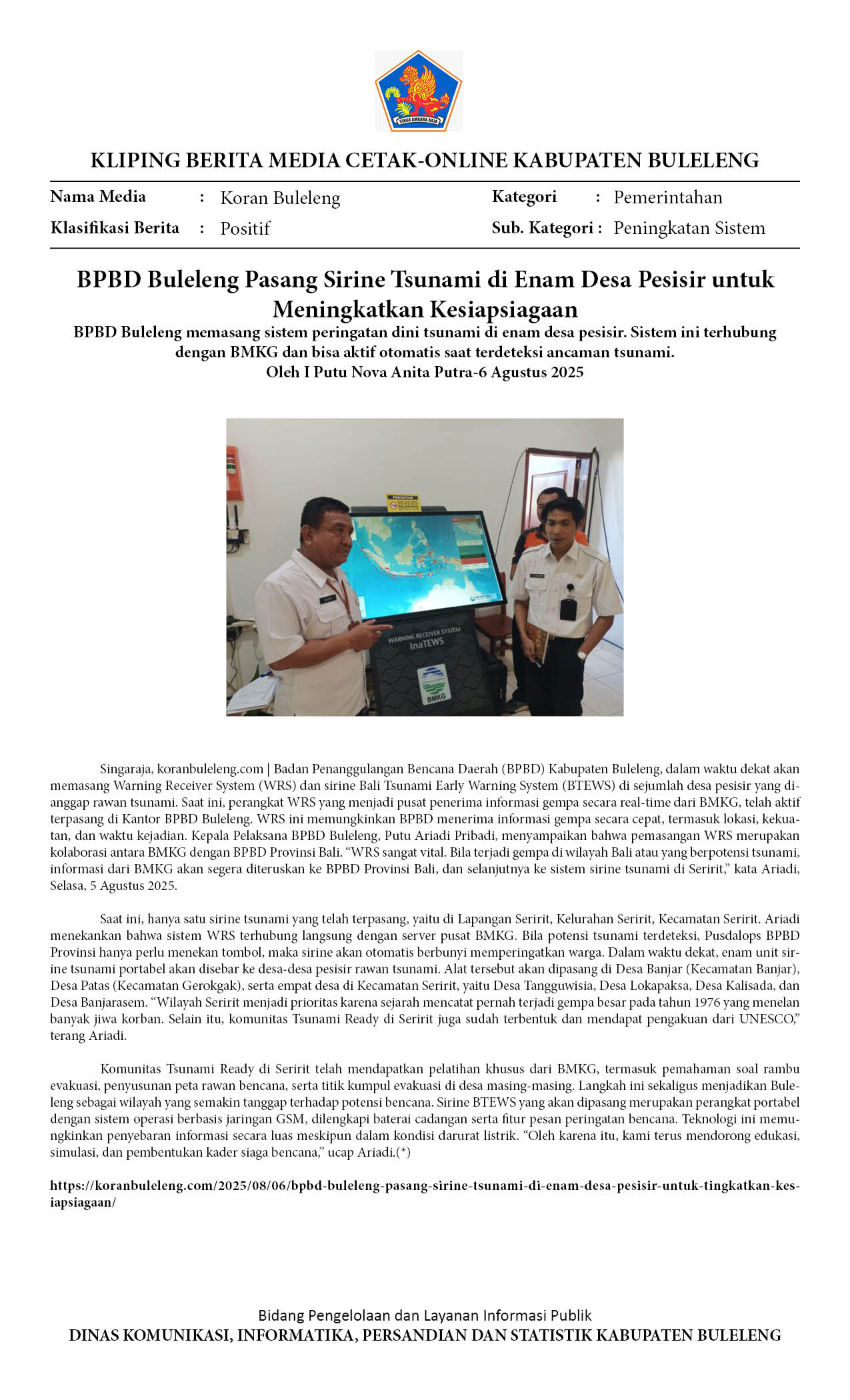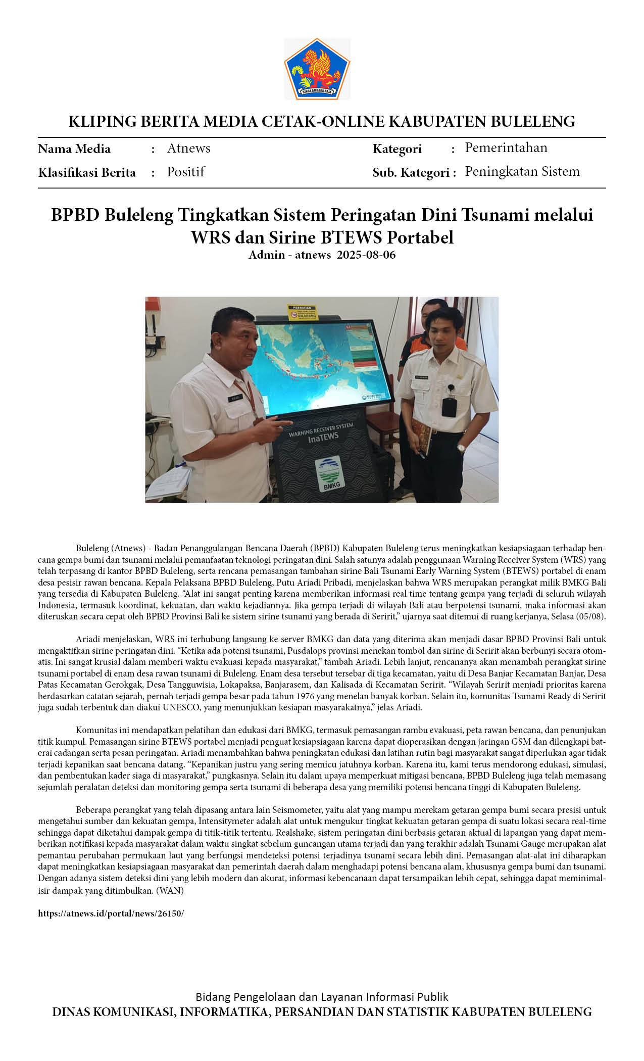 BPBD BULELENG TINGKATKAN SISTEM PERINGATAN DINI TSUNAMI MELALUI WRS DAN SIRINE BTEWS PORTABEL