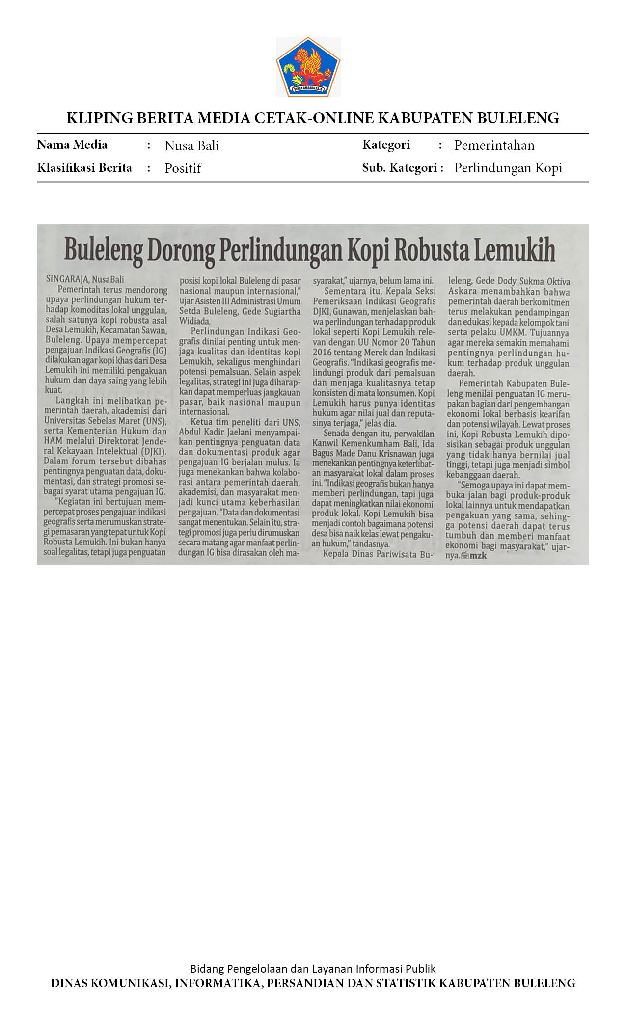 BULELENG DORONG PERLINDUNGAN KOPI ROBUSTA LEMUKIH